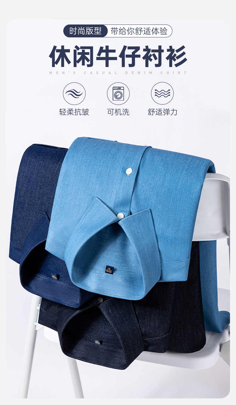 【实付满399送保温杯】【弹力牛仔休闲衬衫】可机洗户外衬衫男士长袖衬衣外套CT505