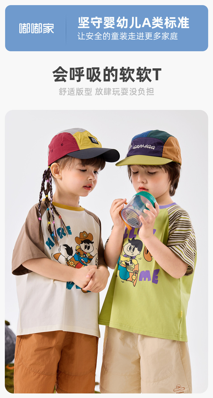 [7A抑菌]嘟嘟家儿童插肩袖T恤夏季男宝短袖上衣夏装女宝衣服童装