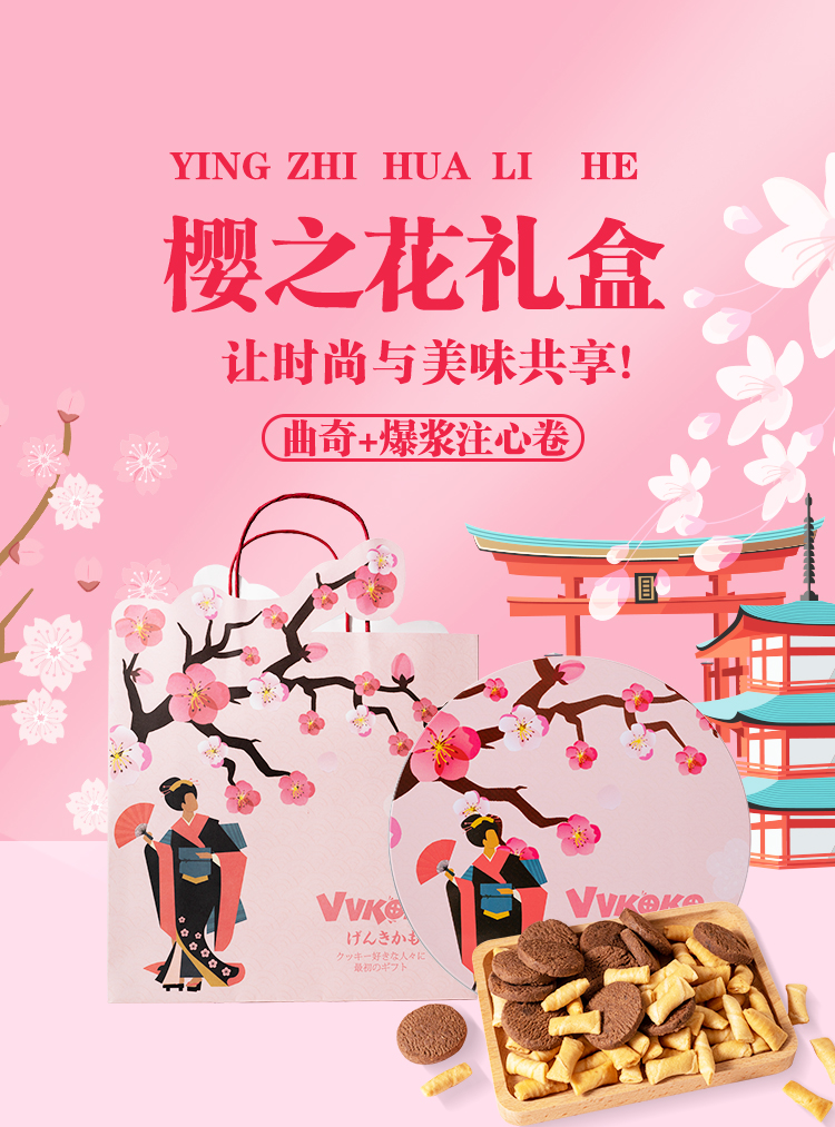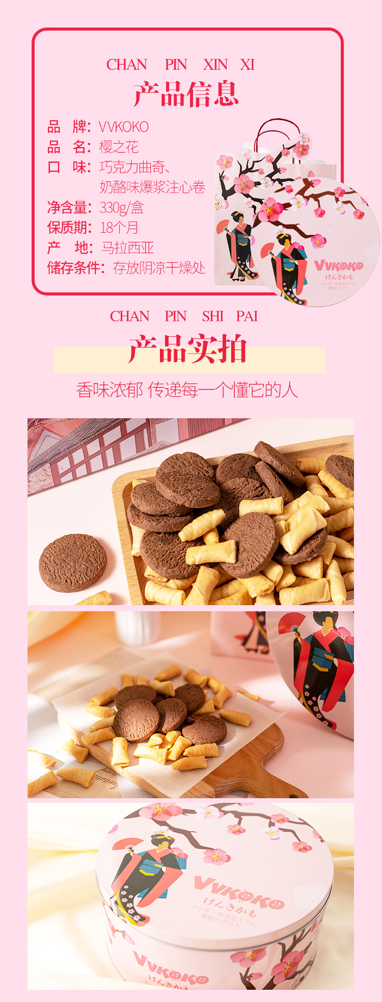 马来西亚VVKOKO樱之花礼盒装饼干330g/150659 曲奇+爆浆注心卷两种口味混搭