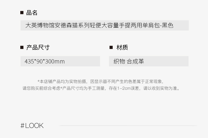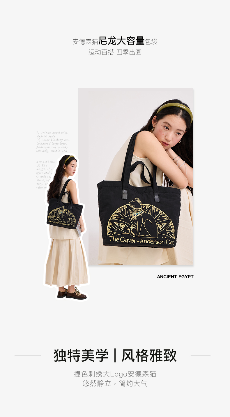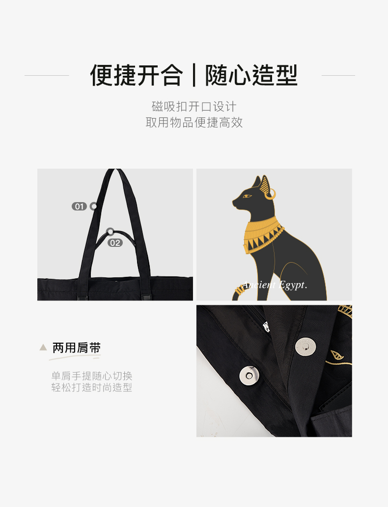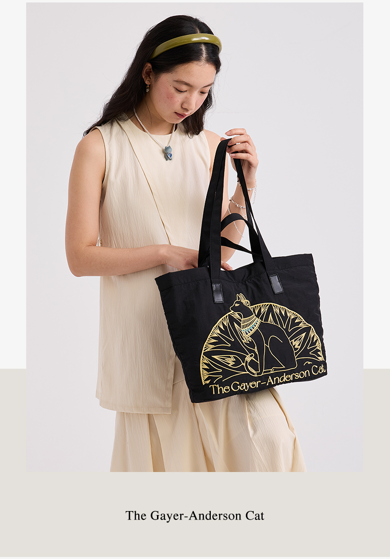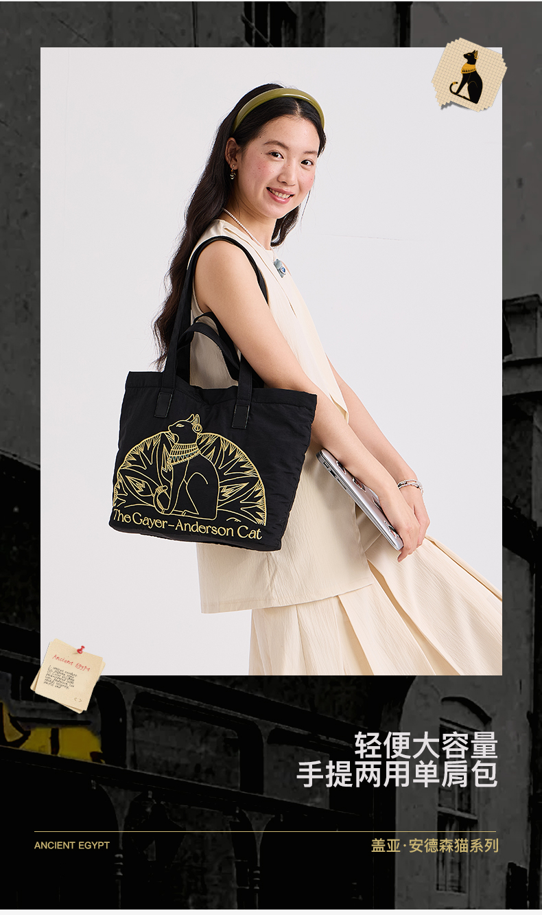 大英博物馆 盖亚·安德森猫系列 轻便大容量手提两用单肩包 黑色