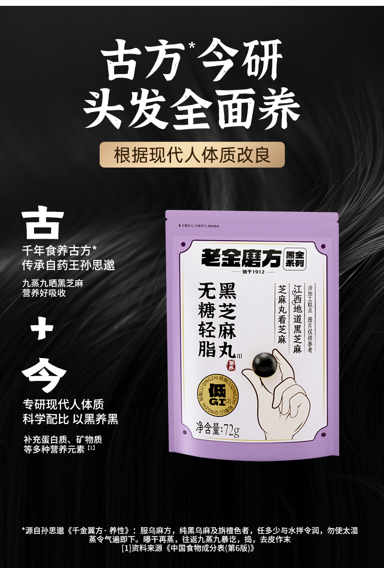 【百大严选】老金磨方黑芝麻丸九蒸九晒芝麻丸以黑养黑