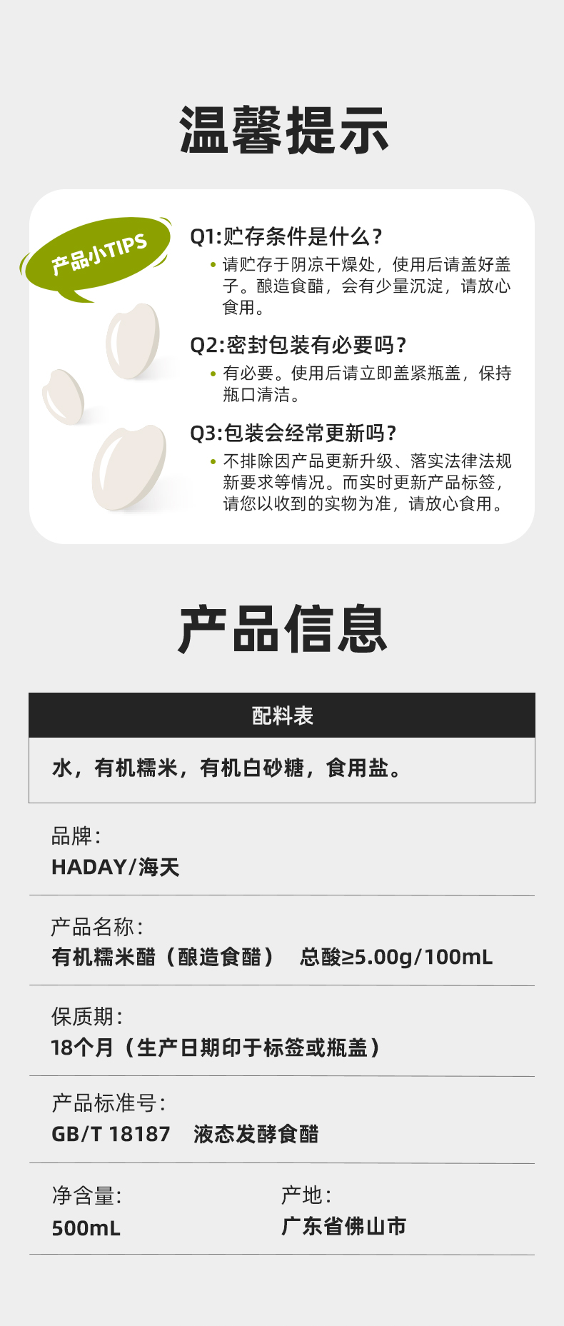 海天有机糯米醋500ml 零添加 全程有机