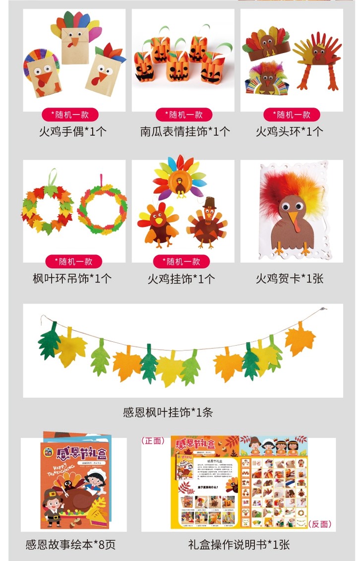 感恩节手工DIY礼盒火鸡南瓜玉米环创作品材料包节日礼盒