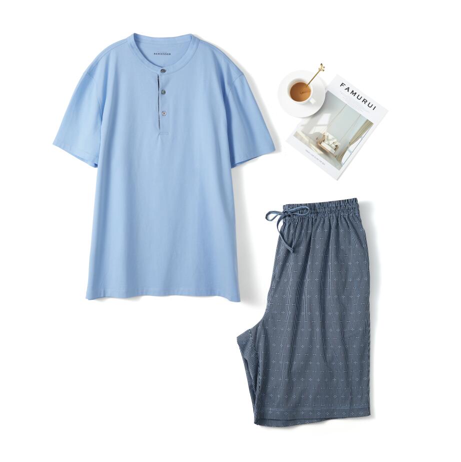 SCHIESSER铂雅男装亨利领短袖短裤套装80支 100%单丝光棉双面布 155克 99/21139H