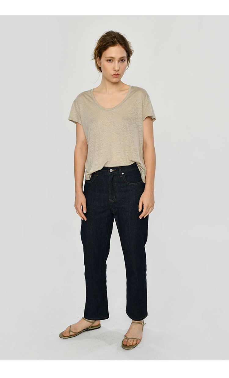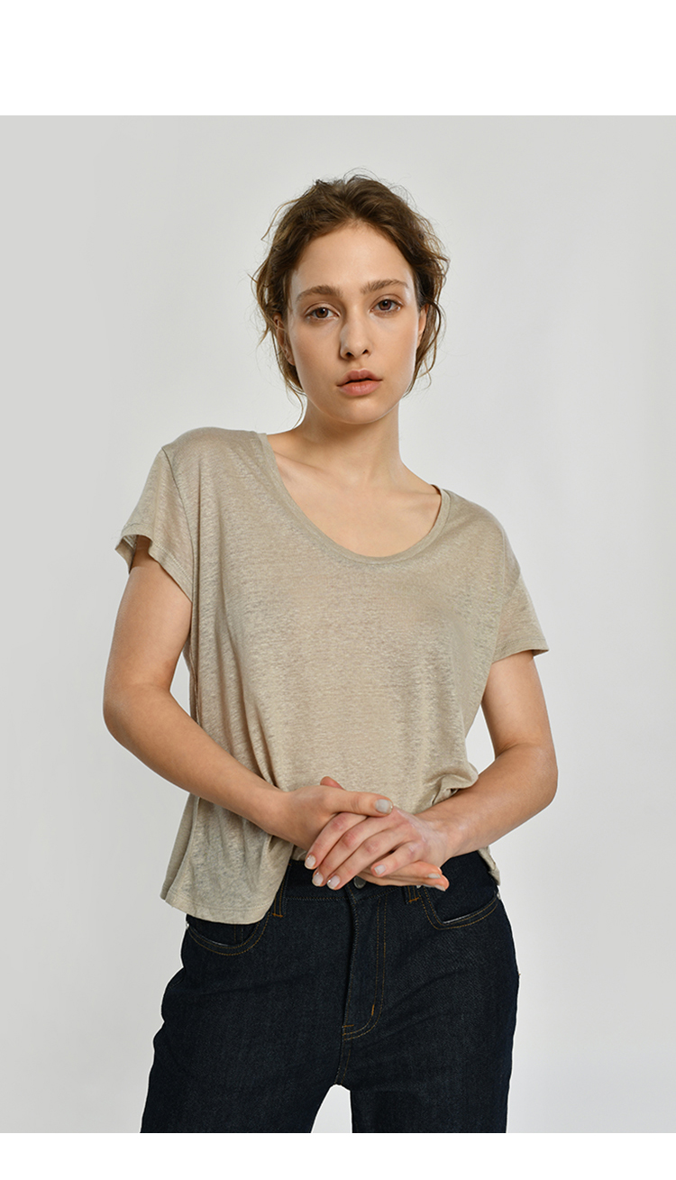 【特价清仓】女士丝光棉褶皱袖口V领T恤