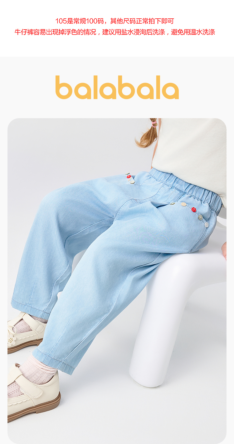 巴拉巴拉童装儿童长裤凉感防晒牛仔裤女童2025夏季新款裤子松紧腰