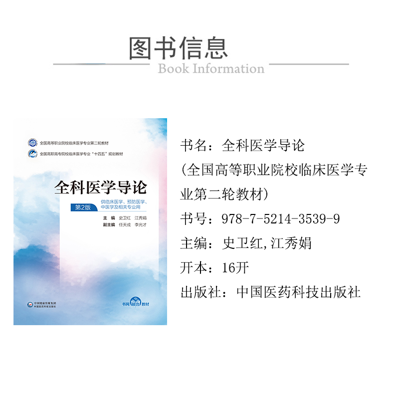 《全科医学导论(第2版 全国高等职业院校临床医学专业第二轮教材)》编写结合了全国高等职业院校临床医学专业的培养目标和课程的教学目标与要求,突出了全科医学独特的理论和知识体系。全书前八章重点突出全科医学的基本理论、基本知识和基本技能。内容包括全科医学的基本概念、基本理论和全科医疗服务的基本原则,以人为中心的健康照顾,以家庭为单位的健康照顾,以社区为范围的健康照顾,以预防为先导的健康照顾,全科医学中的医患沟通与法律问题,健康档案的建立和管理,社区慢性病管理。为强化学生的全科医学实践活动,结合国家基本公共卫生服务规范,本教材编写了第九章实训指导,本教材每章都配有数字化教学资源,包括PPT、微课、视频、题库及数字化教学服务(在线教学、在线作业、在线考试),使教材内容更加生动化、立体化,使师生便教易学。