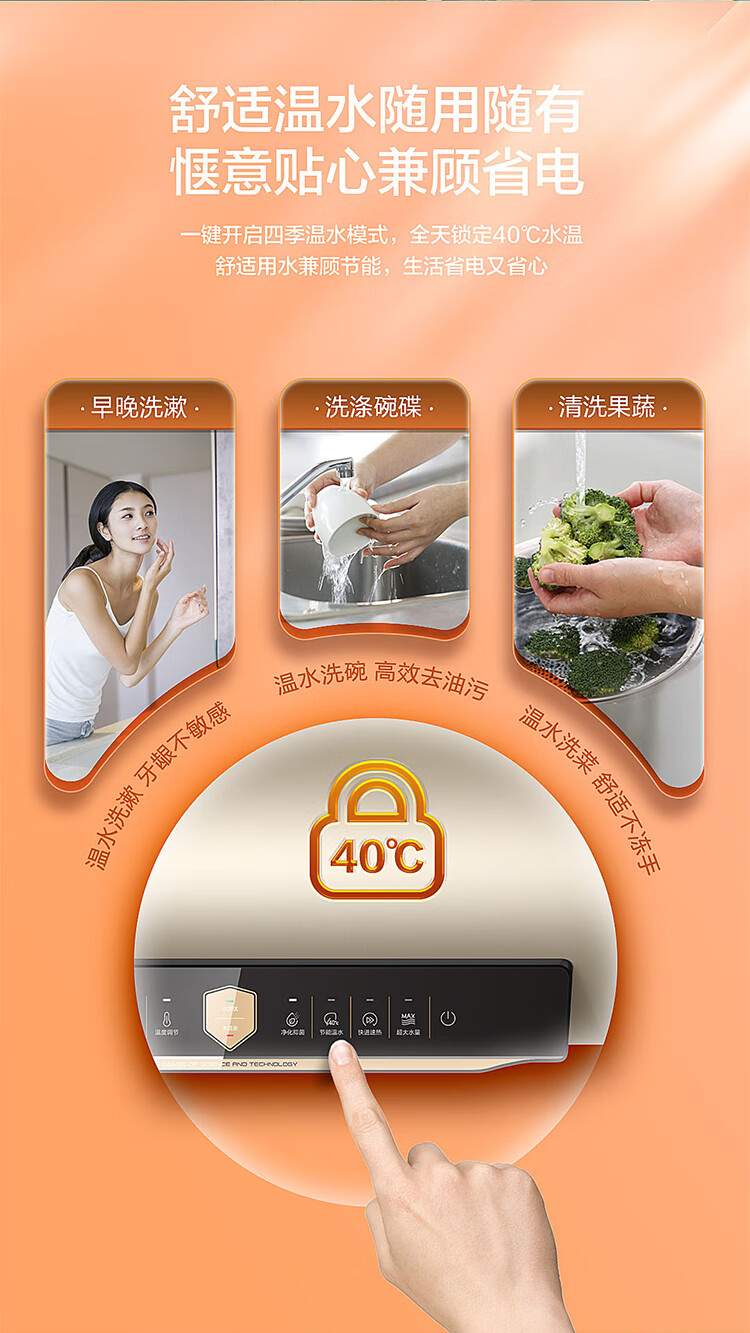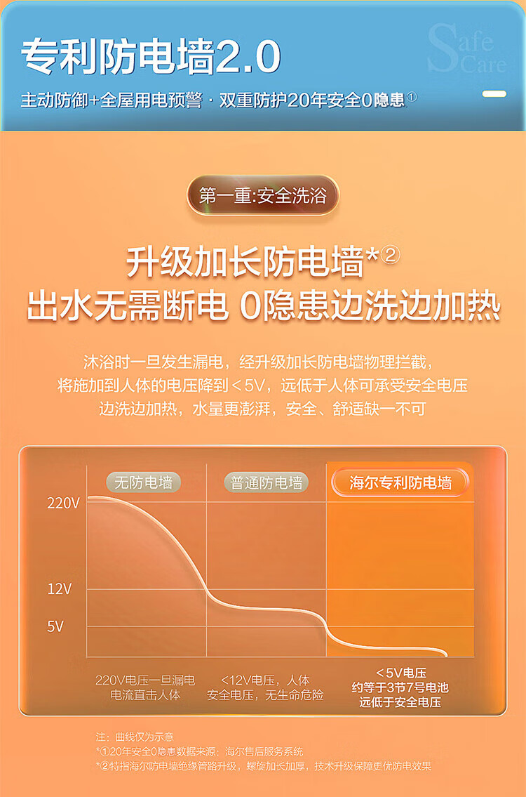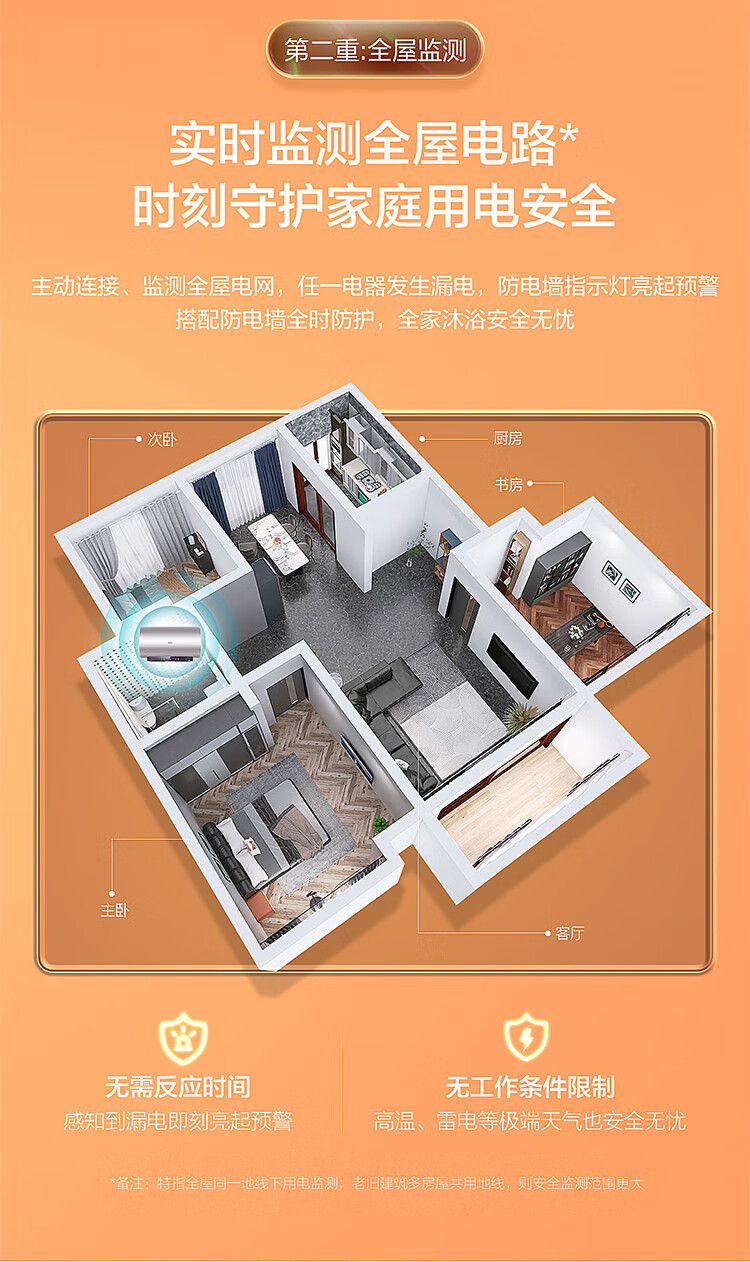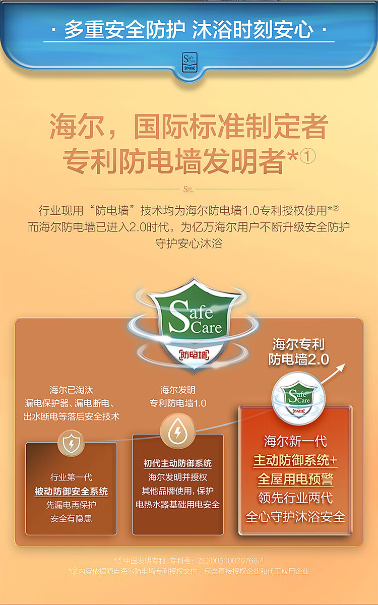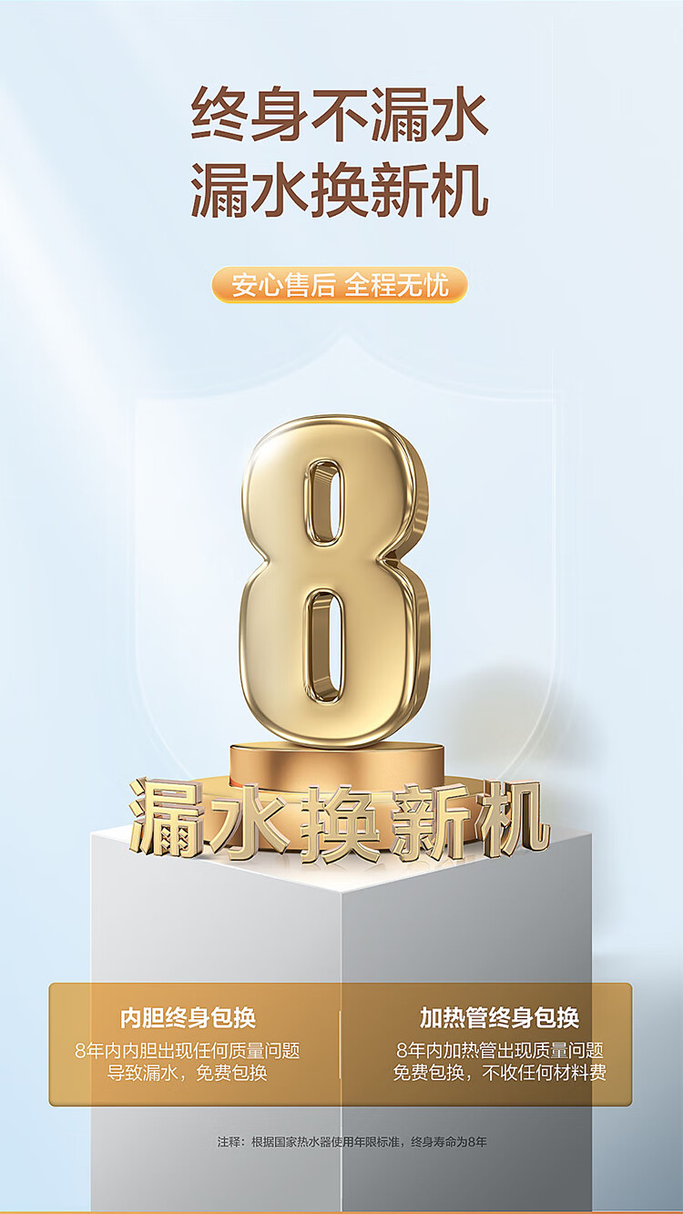 海尔(Haier)100升家用电热水器 3300W抑垢净水洗水质监测宽屏大户型沐浴 ES100H-GA3(2AU1)