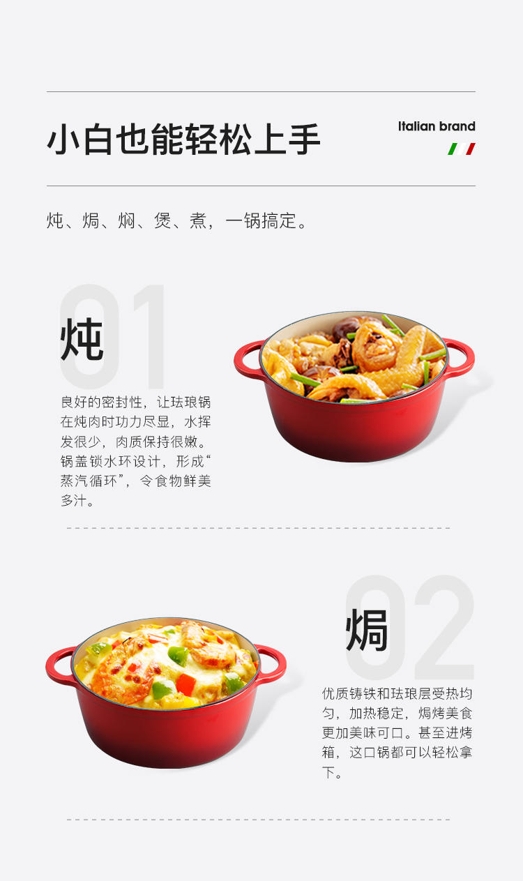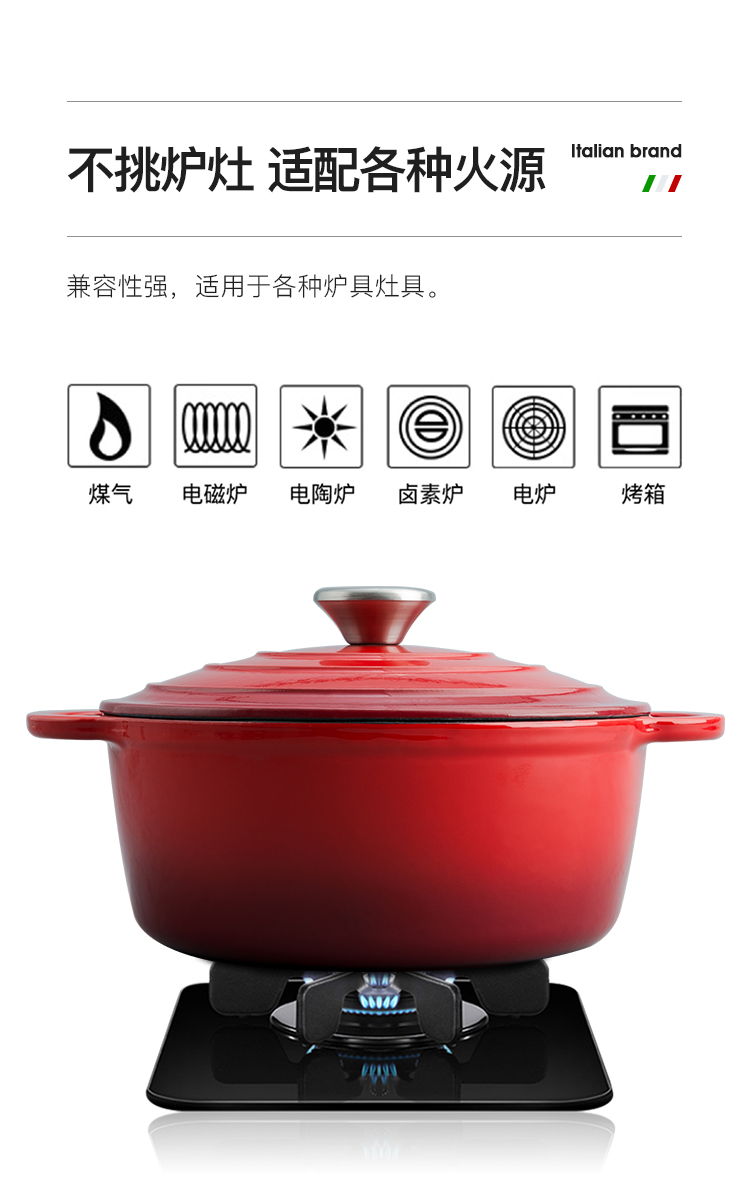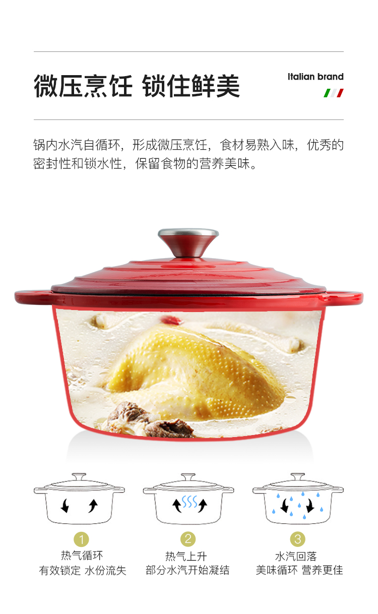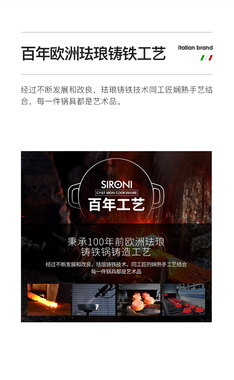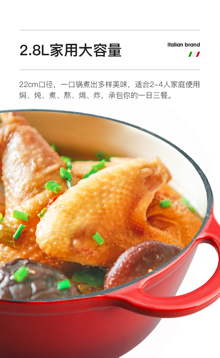 【传承百年工艺】SIRONI斯罗尼意大利铸铁珐琅锅22cm 微压锁水 一锅多用 焖/煮/炖/熬焗/炸 2.8L大容量 不挑炉具