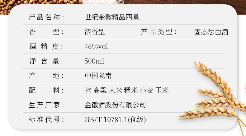 金徽酒 46度世纪金徽精品四星 浓香型白酒