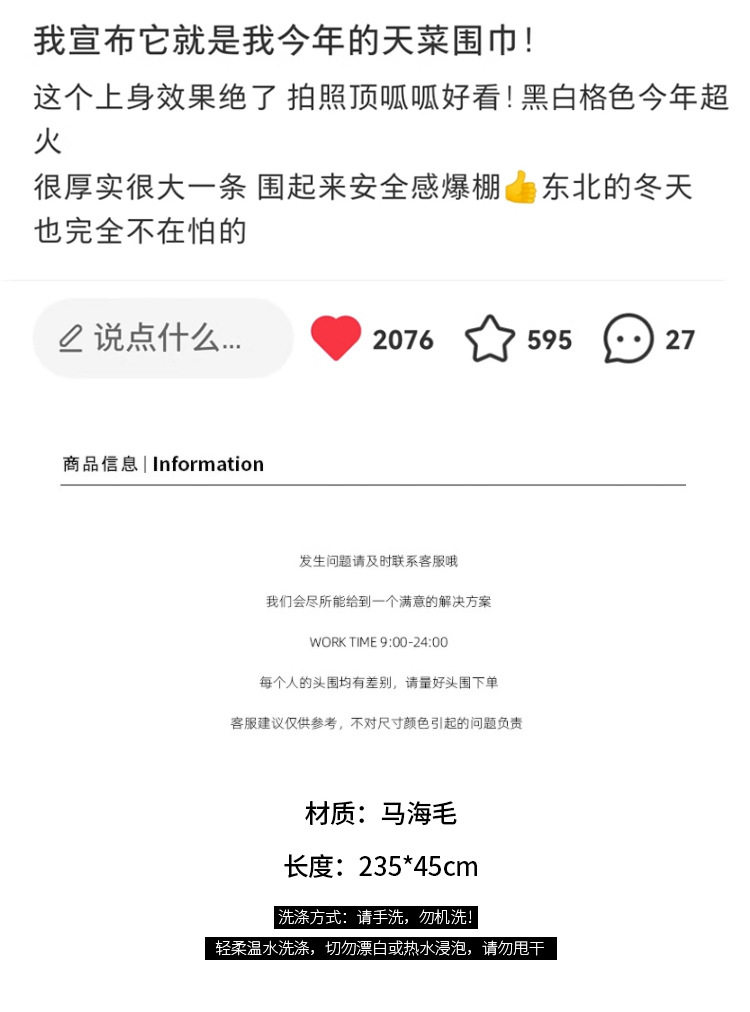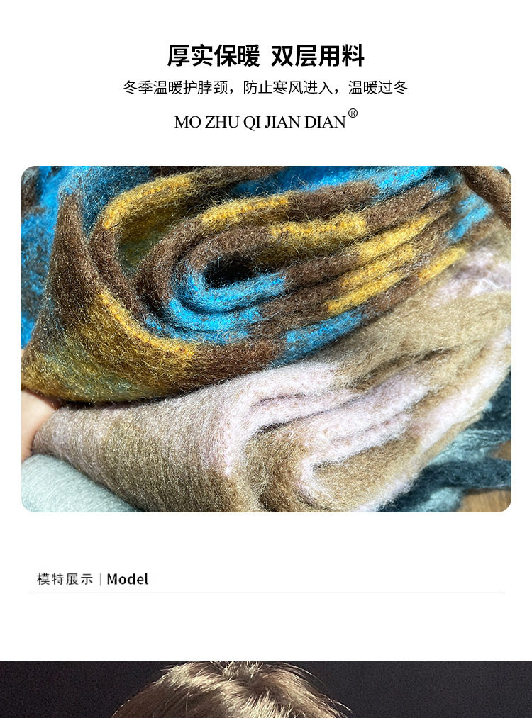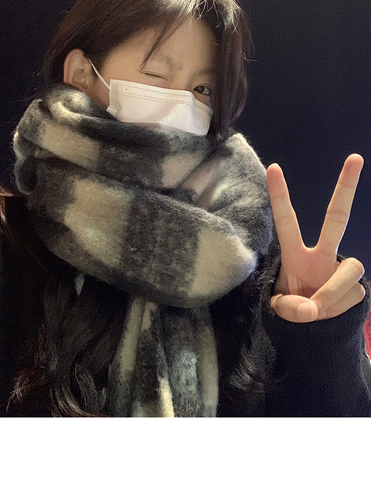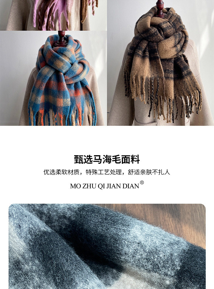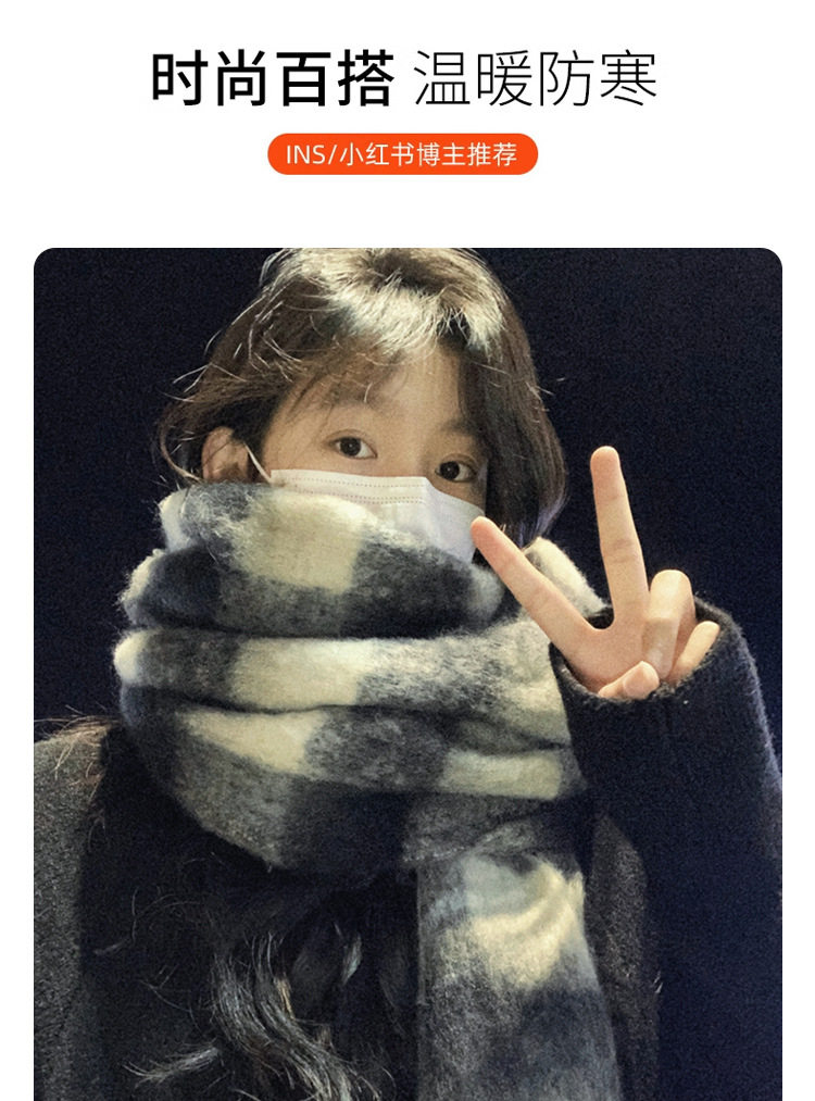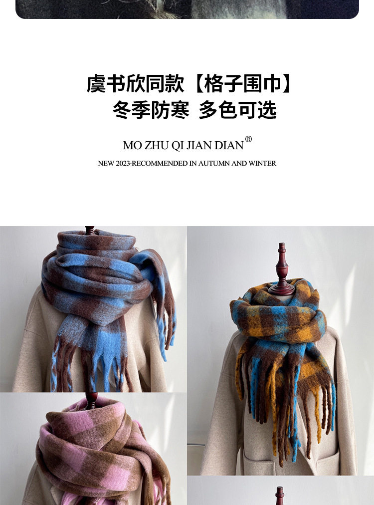 围脖男百搭加厚保暖格子围巾女马海毛2023新款秋冬季学生高级感