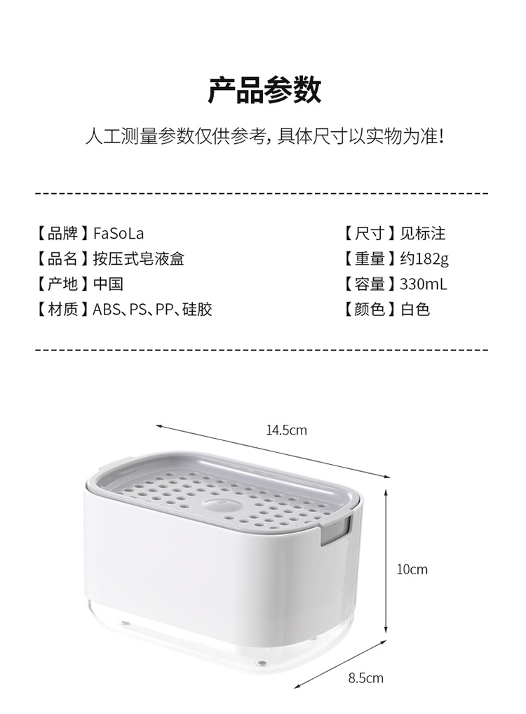 FaSoLa洗洁精压取器按压瓶按压盒厨房水槽洗碗液皂液器分装瓶神器