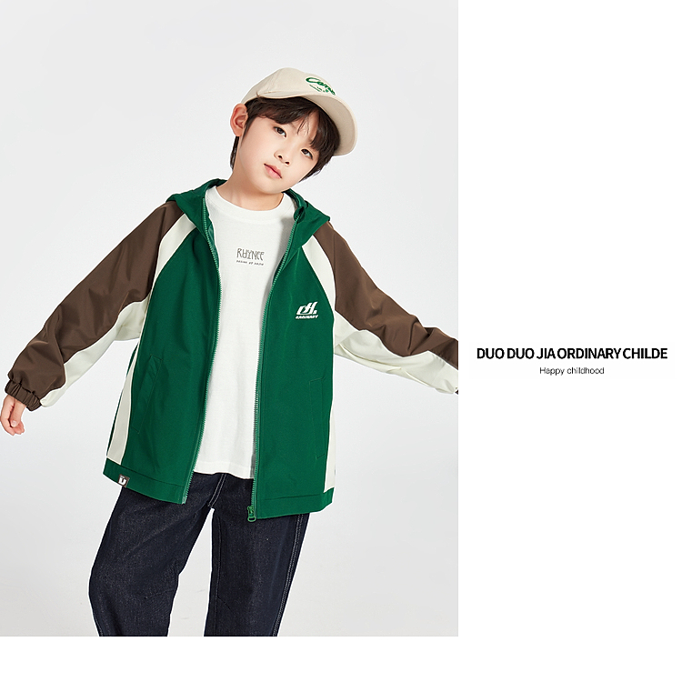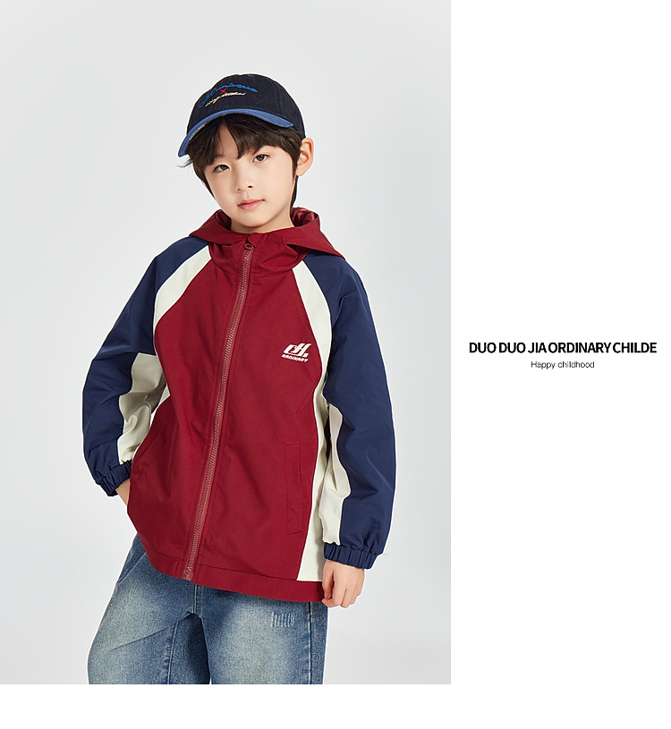 【团购价99.9】多多家男童外套冲锋衣2025新款春秋季儿童中大童拼接撞色夹克上衣10207