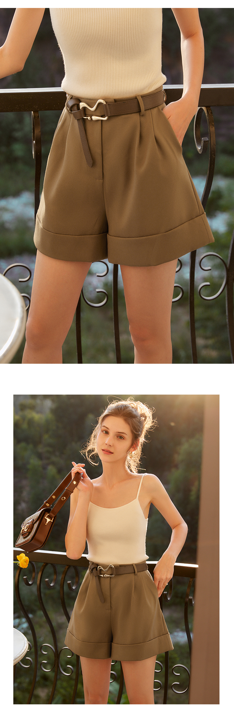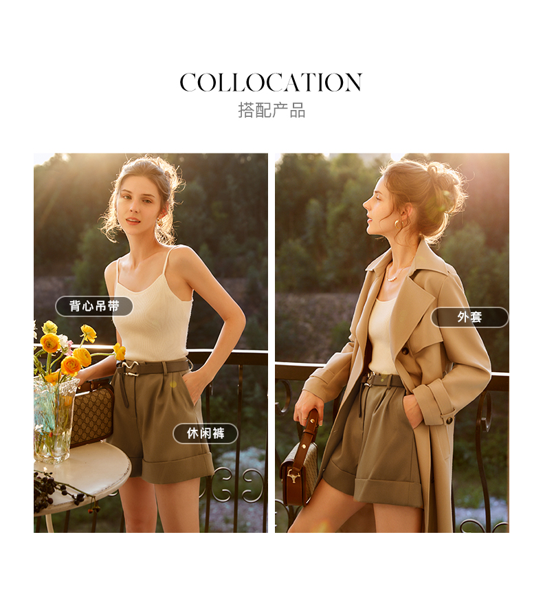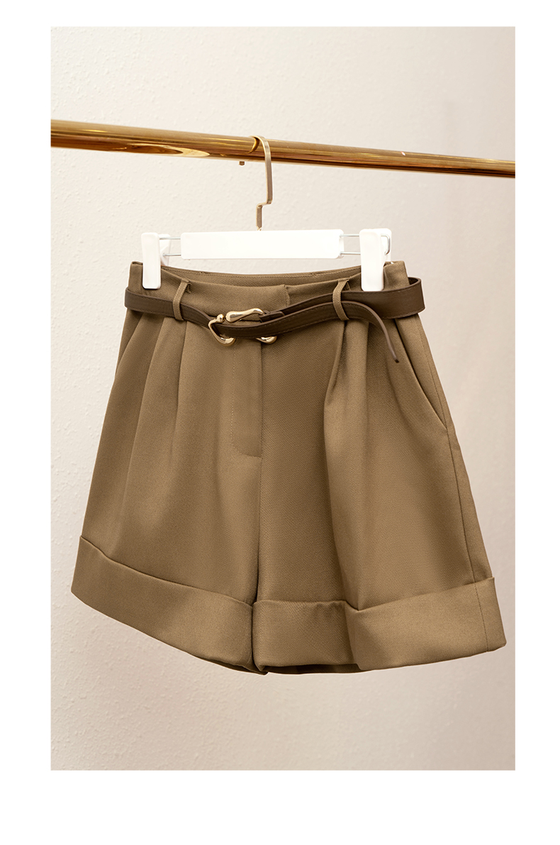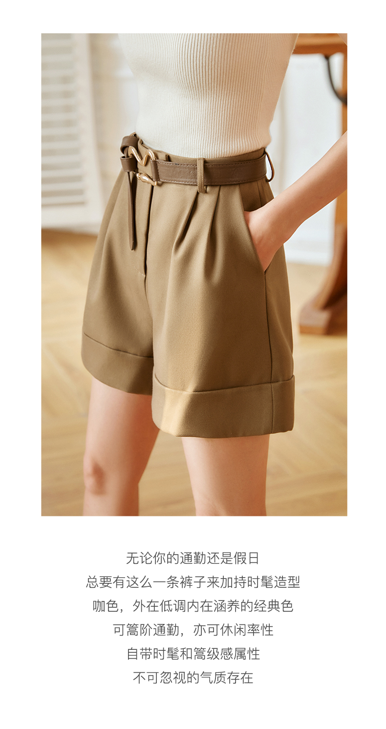 欧芮儿咖色休闲裤女秋季2022年新款高腰时尚气质直筒阔腿西装短裤