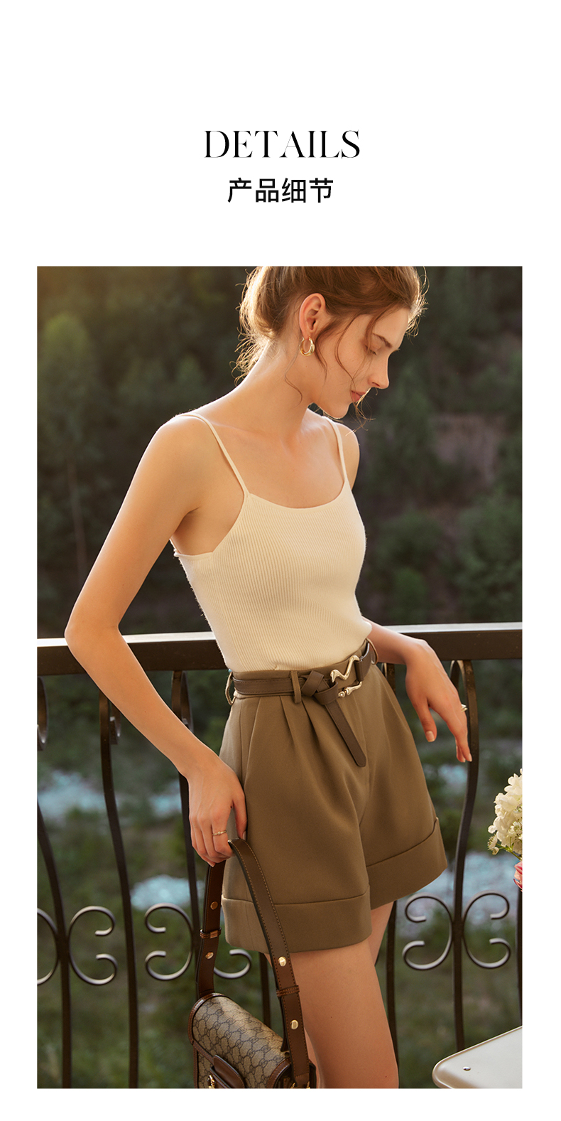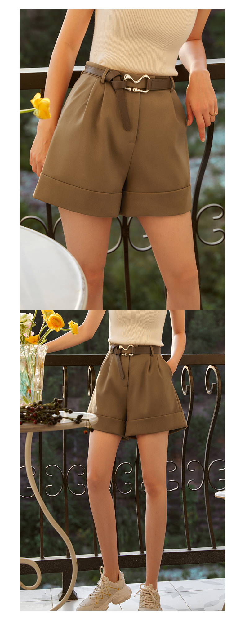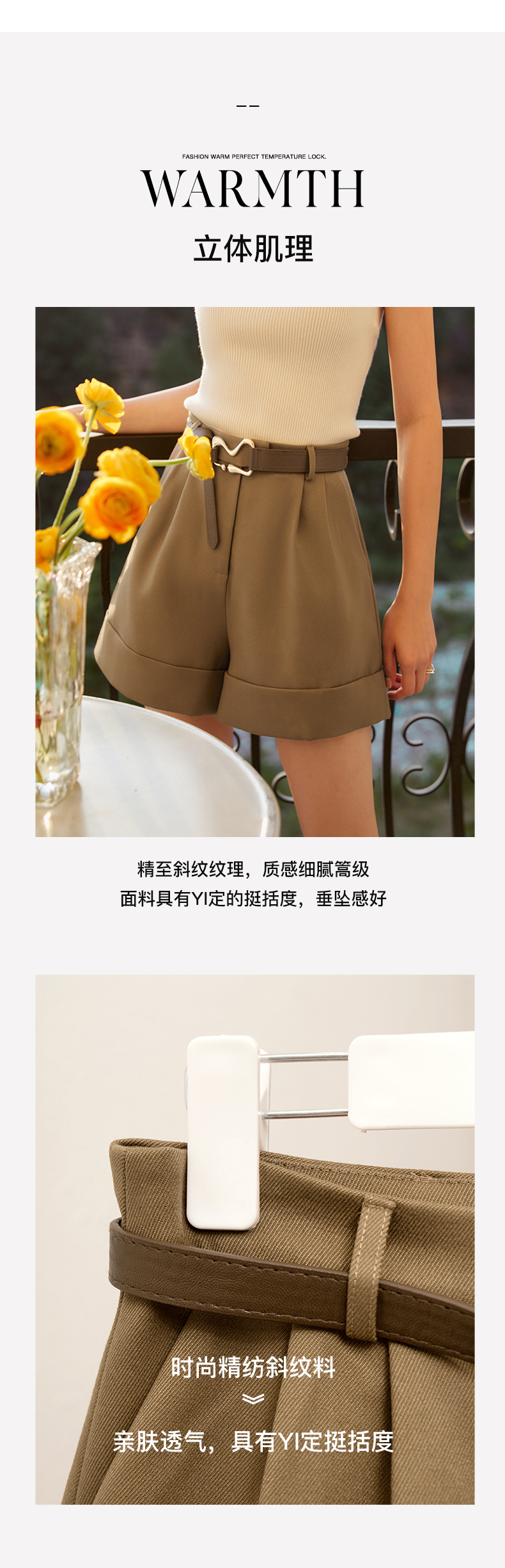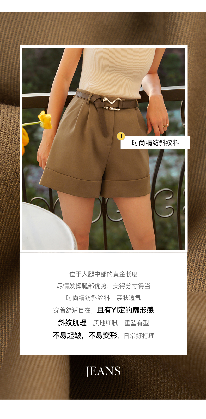 欧芮儿咖色休闲裤女秋季2022年新款高腰时尚气质直筒阔腿西装短裤