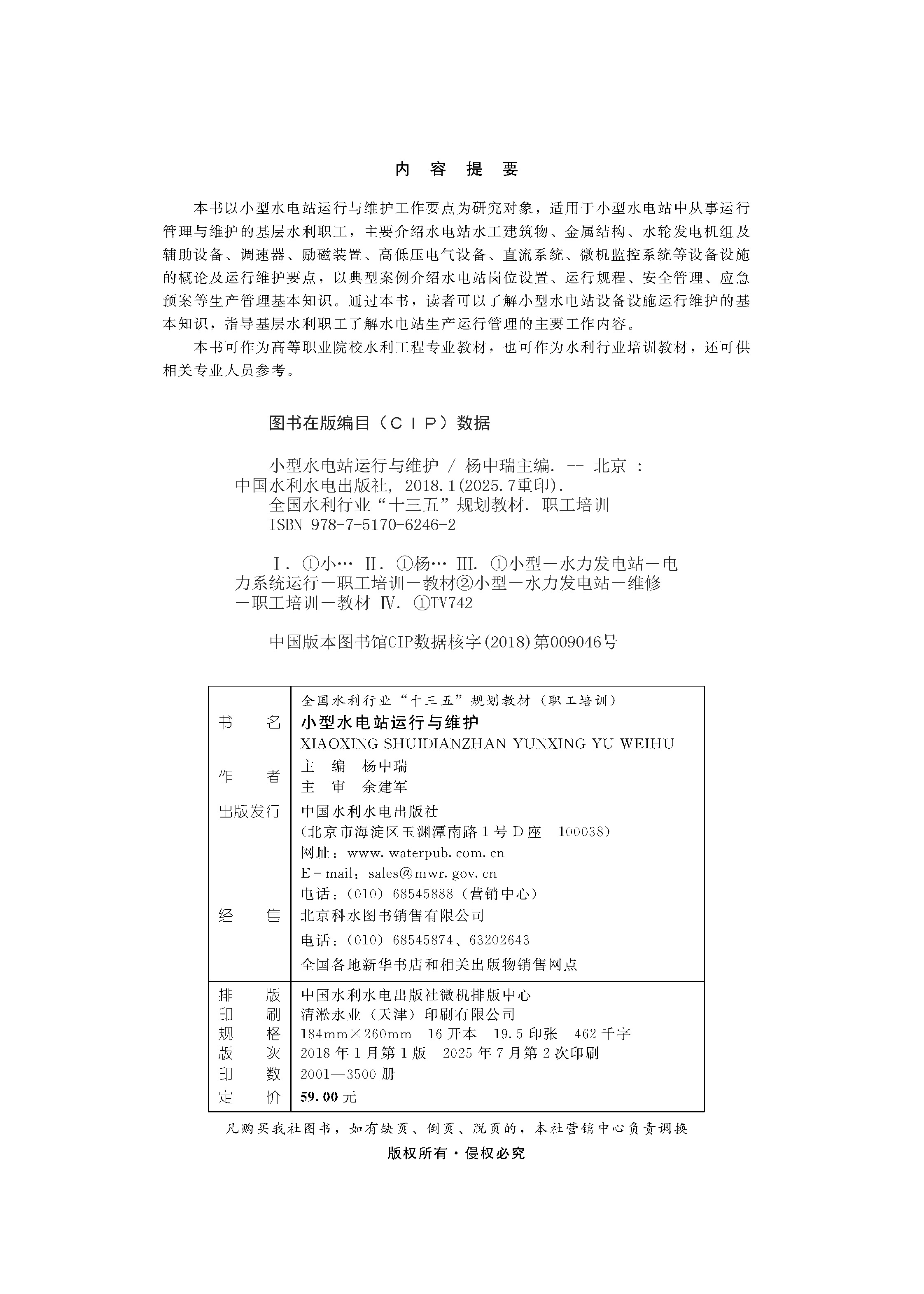 小型水电站运行与维护(全国水利行业“十三五”规划教材(职工培训))