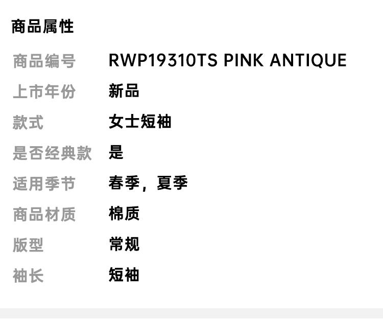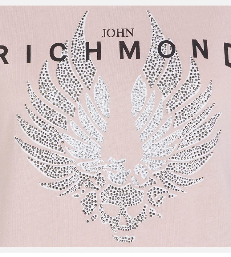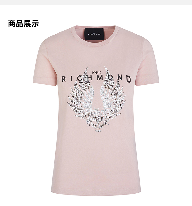 RICHMOND 女士棉质镶钻骷髅翅膀圆领短袖T恤 粉色 RWP19310TS PINK ANTIQUE