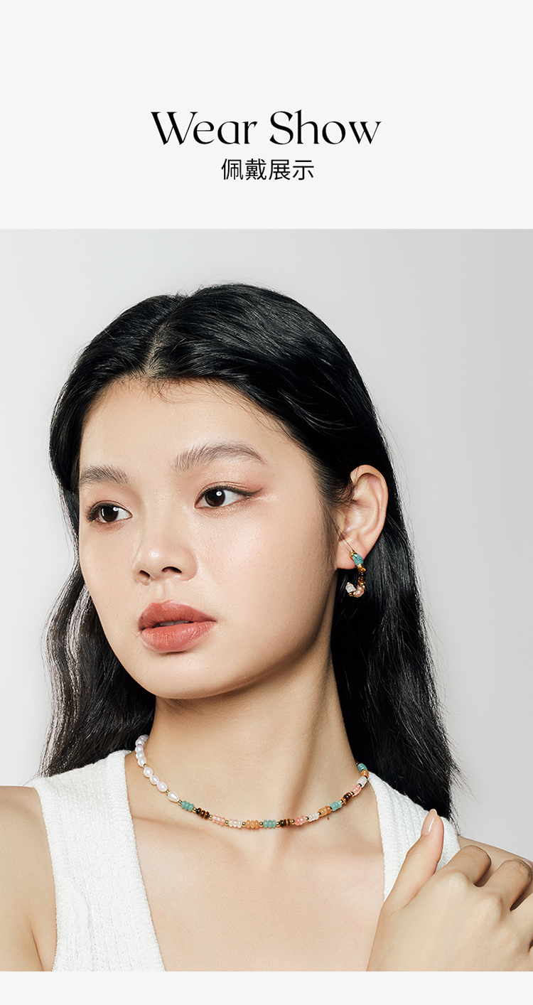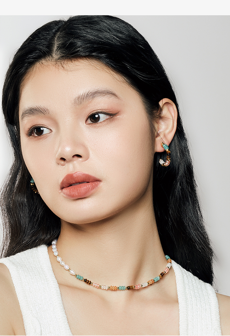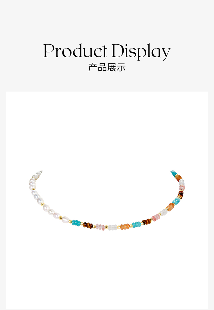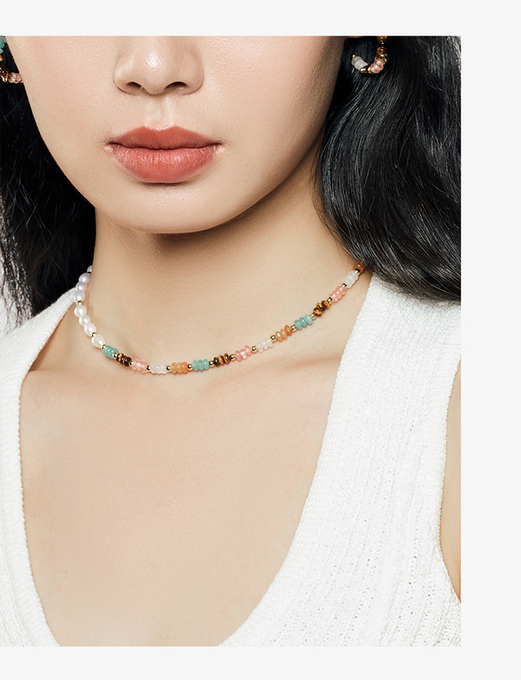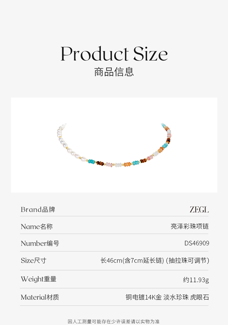 ZEGL淡水珍珠串珠项链女轻奢小众高级感彩色珠子虎眼石水晶锁骨链