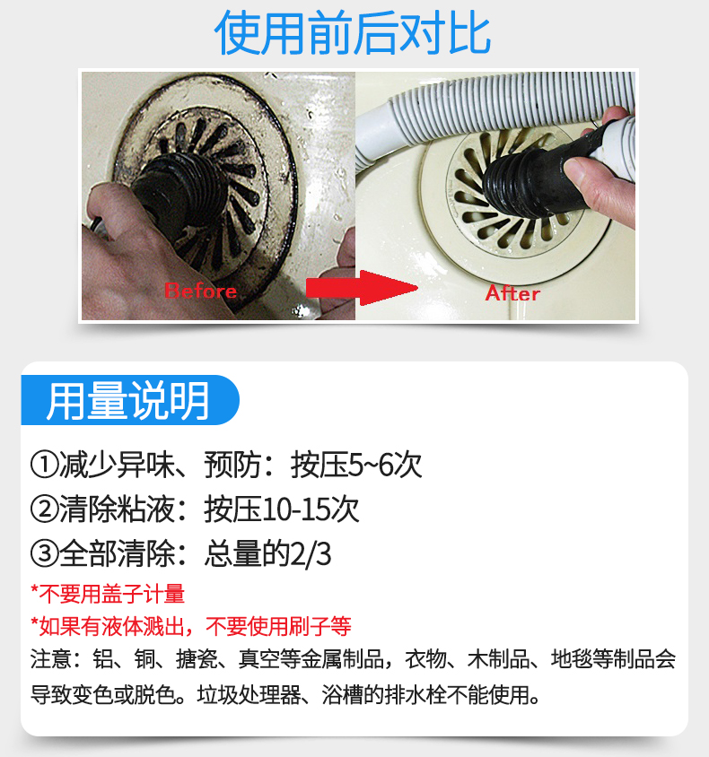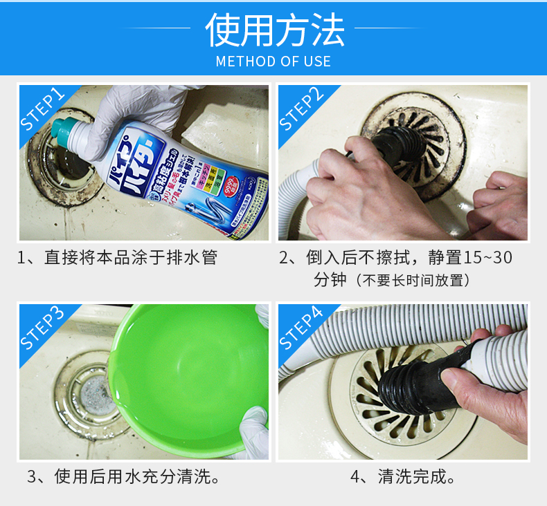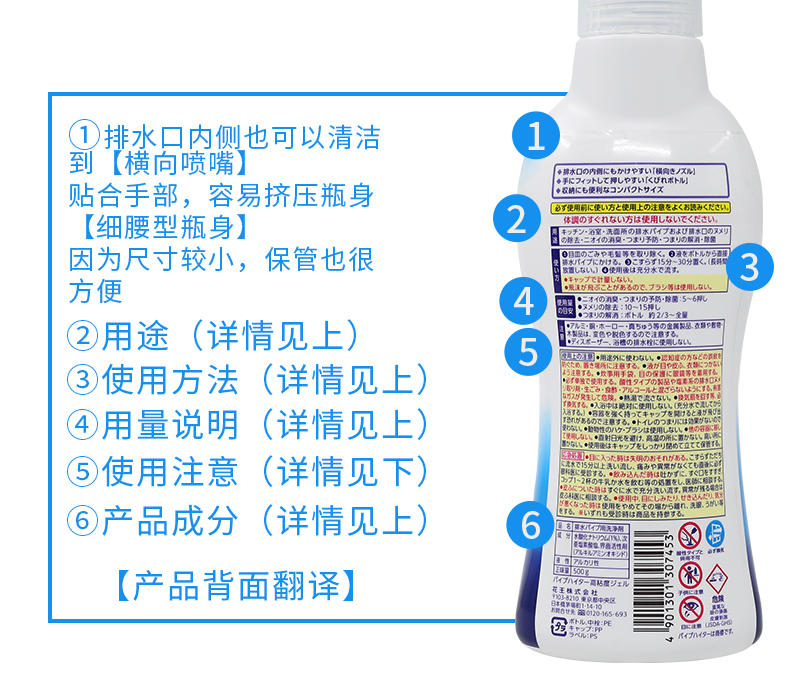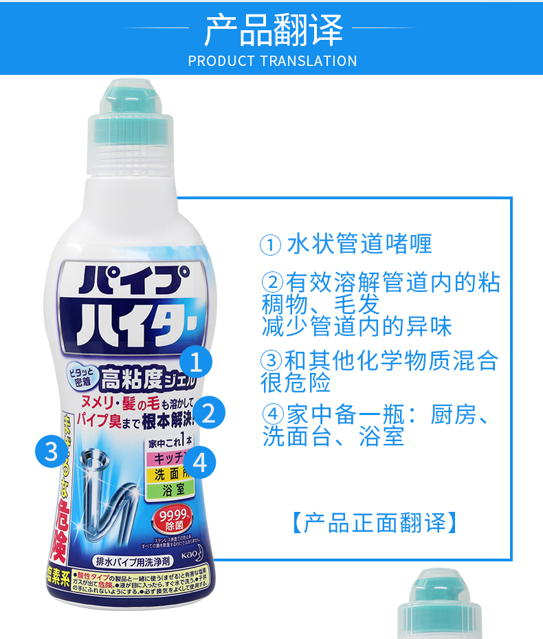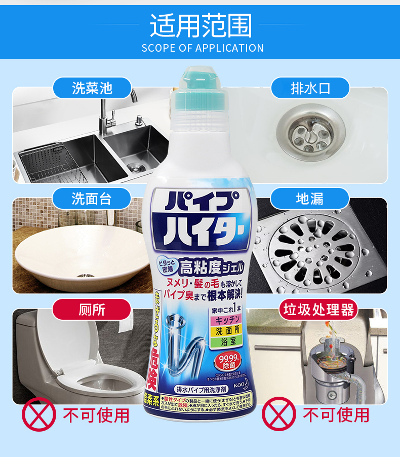 日本花王(KAO)管道疏通剂 下水道疏通剂 厨房油污排水道堵塞强力疏通剂500g