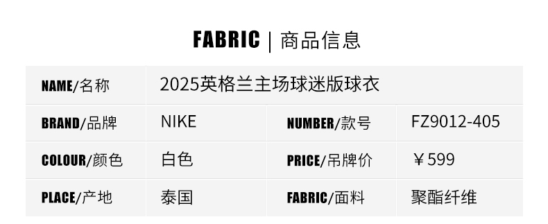 SFS耐克Nike 2025英格兰主场球迷版球衣 FZ9012-405