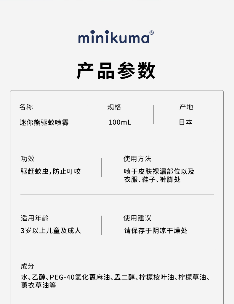 Minikuma日本进口驱蚊喷雾100ml 蚊虫叮咬止痒液