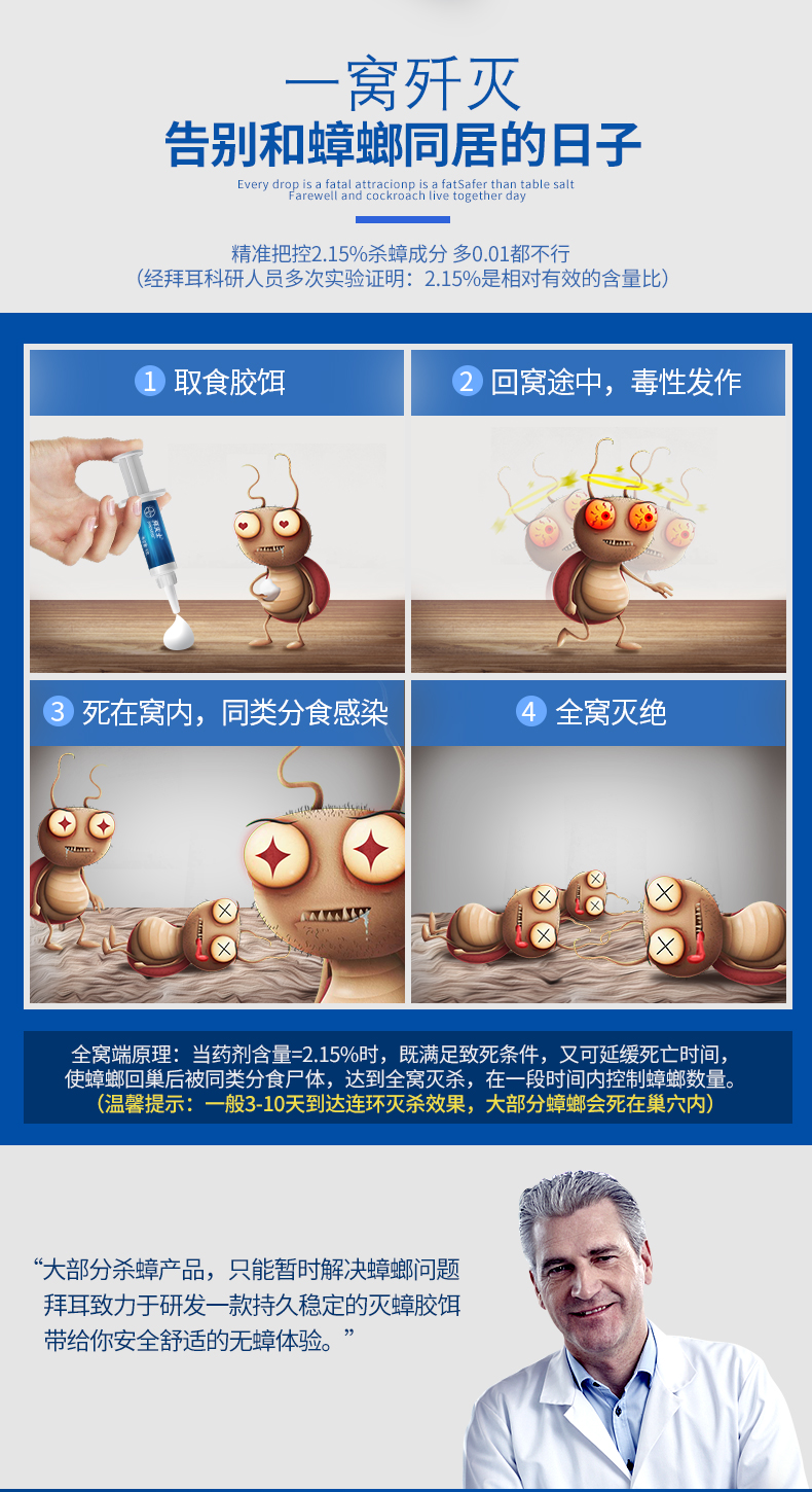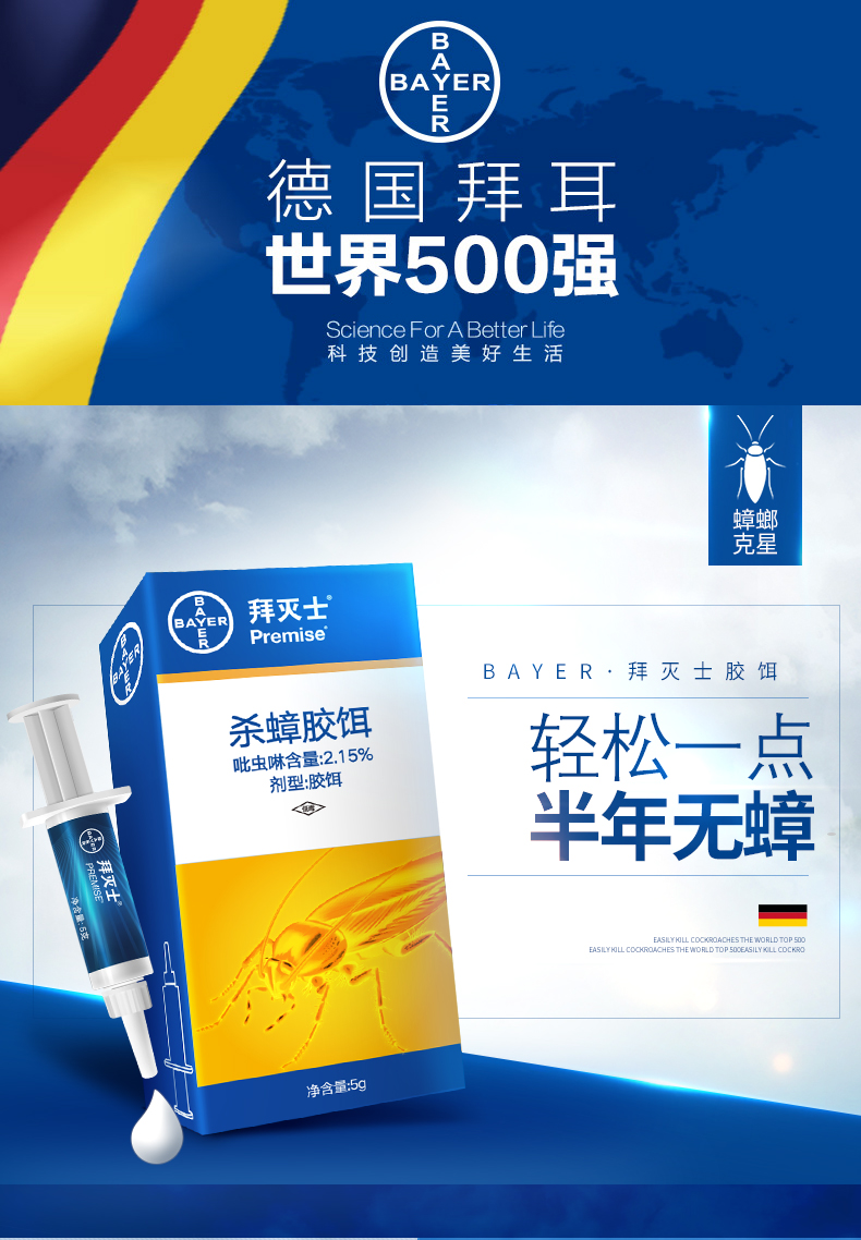 拜耳拜灭士蟑螂药 灭杀除胶饵 非无毒 全窝室内强力杀蟑