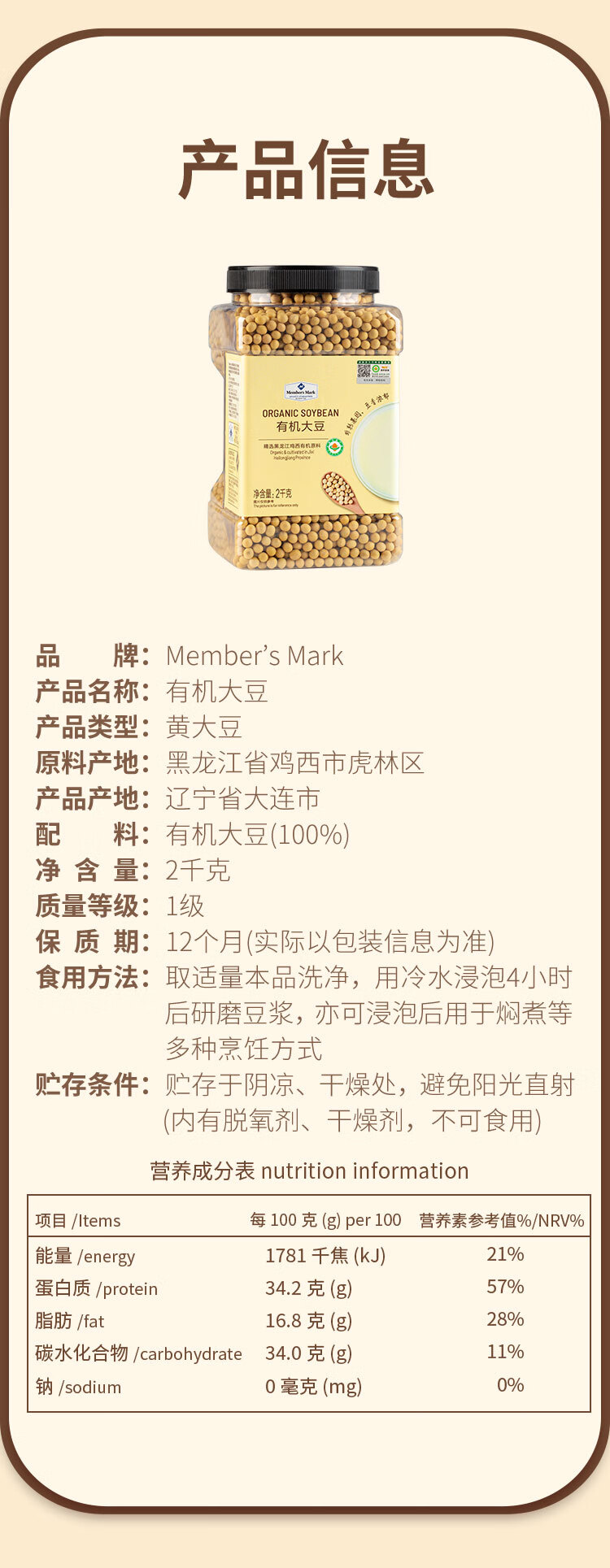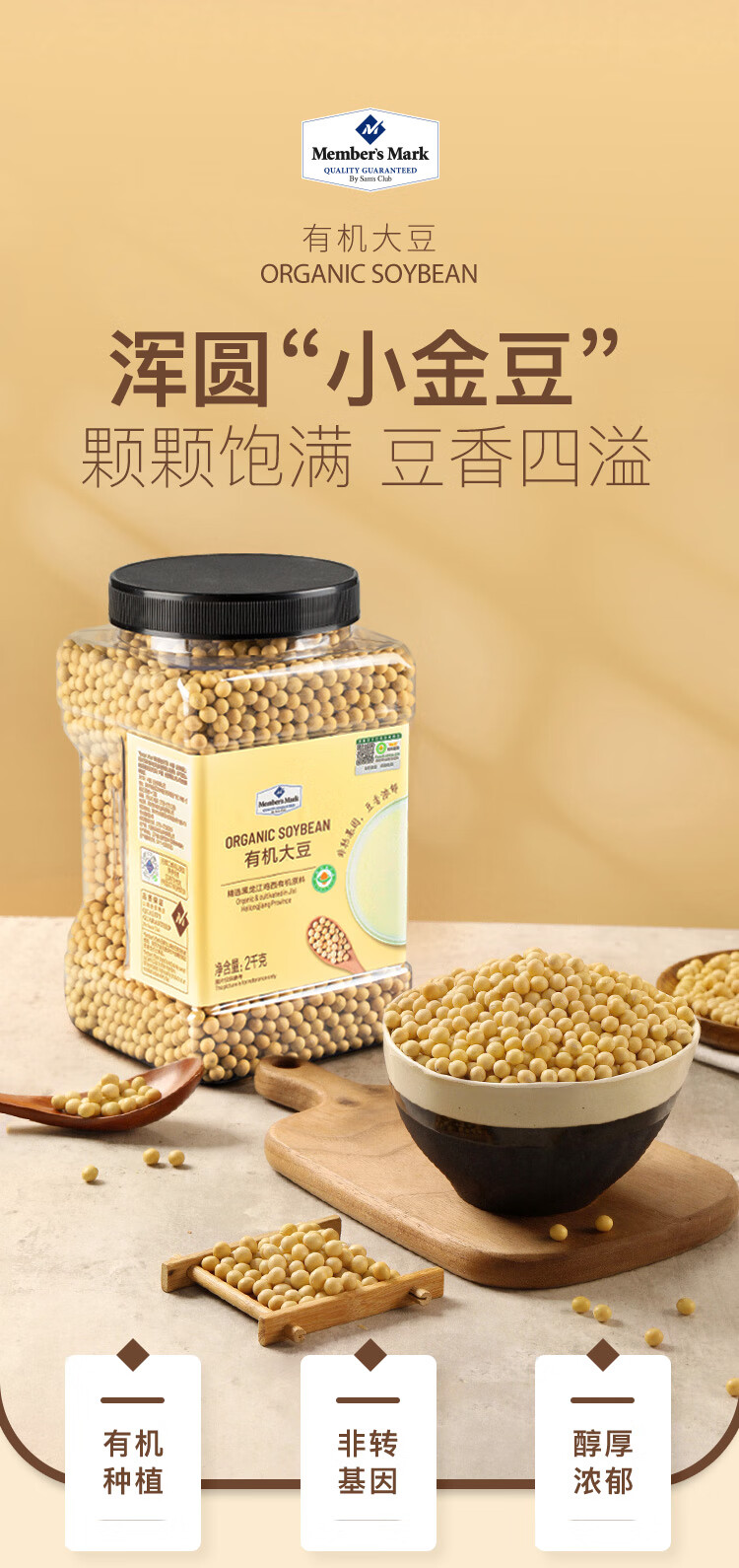 【山姆】Member's Mark 有机大豆 2kg 非转基因 有机黄豆 发豆芽 豆浆豆 五谷杂粮