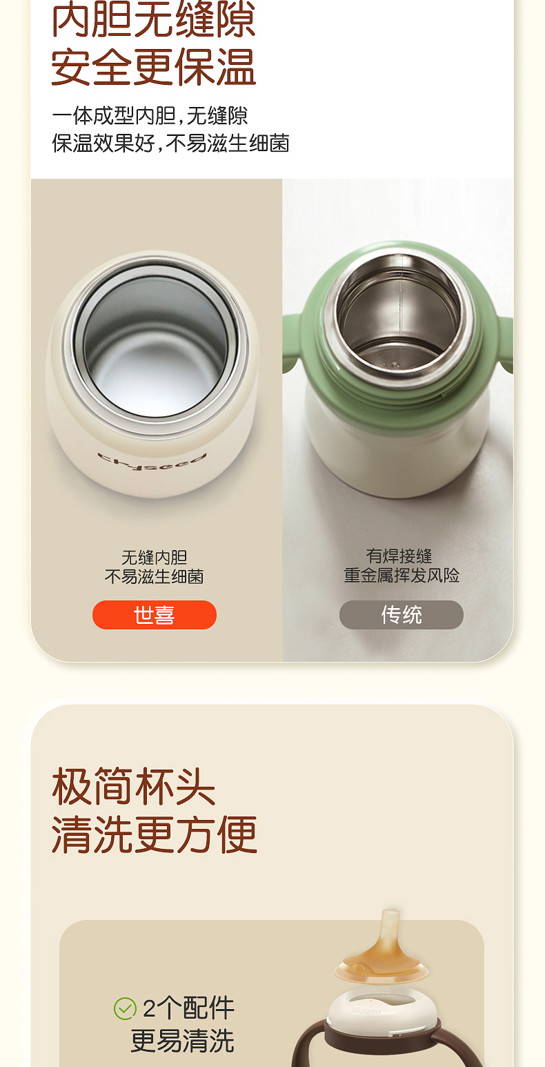 260ML世喜婴儿保温杯外出带吸管杯幼儿童宝宝学饮杯现货