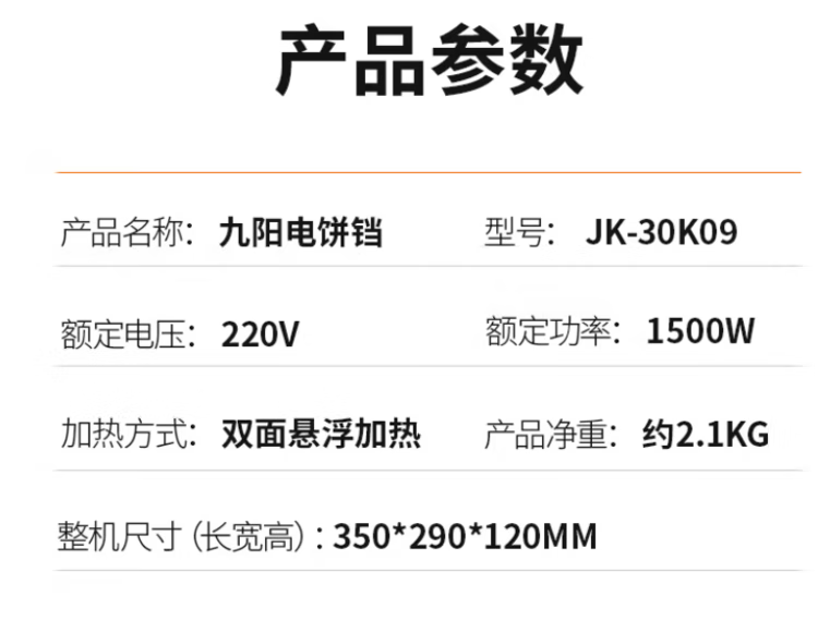 九阳电饼铛 家用智能双面加热加深加大 烤盘 春饼煎烙饼机JK-30K09