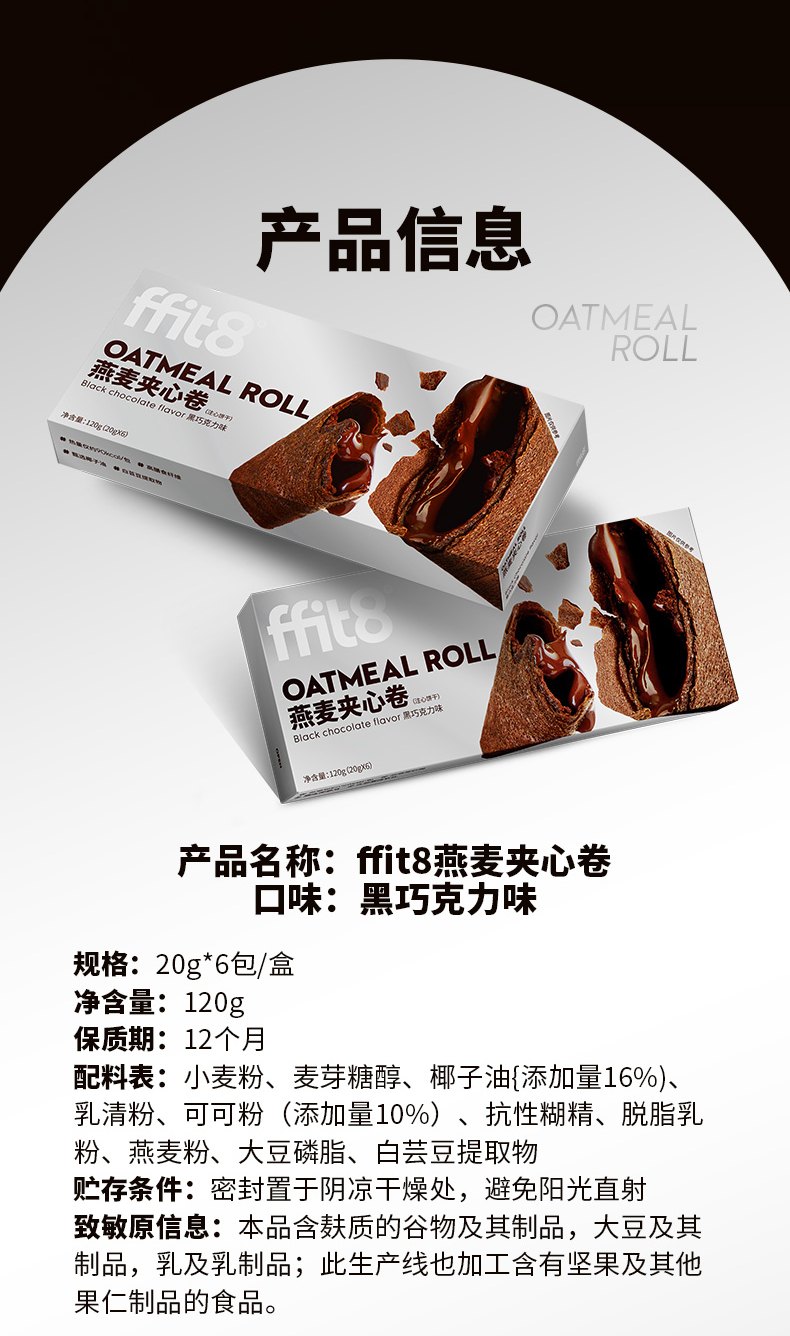 ffit8燕麦夹心卷 黑巧克力味夹心棒 低热量 咔擦一口脆