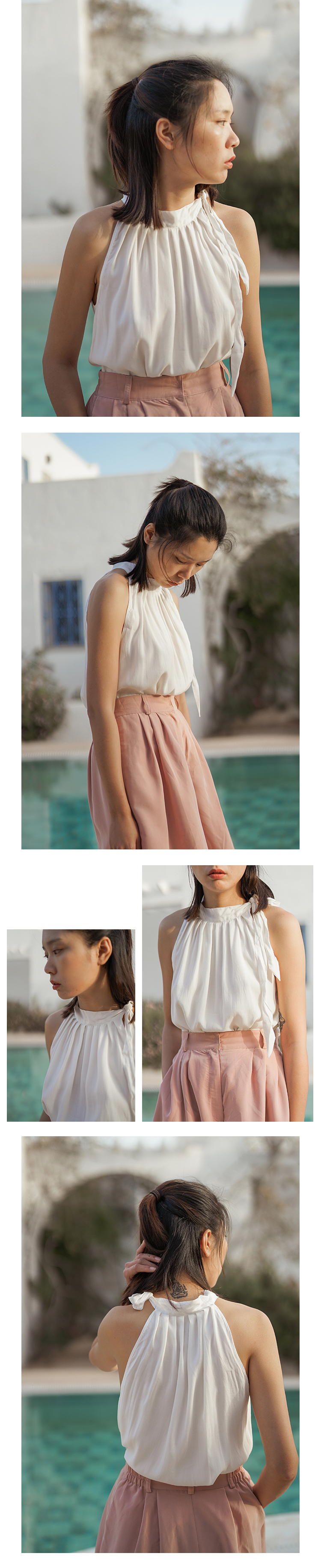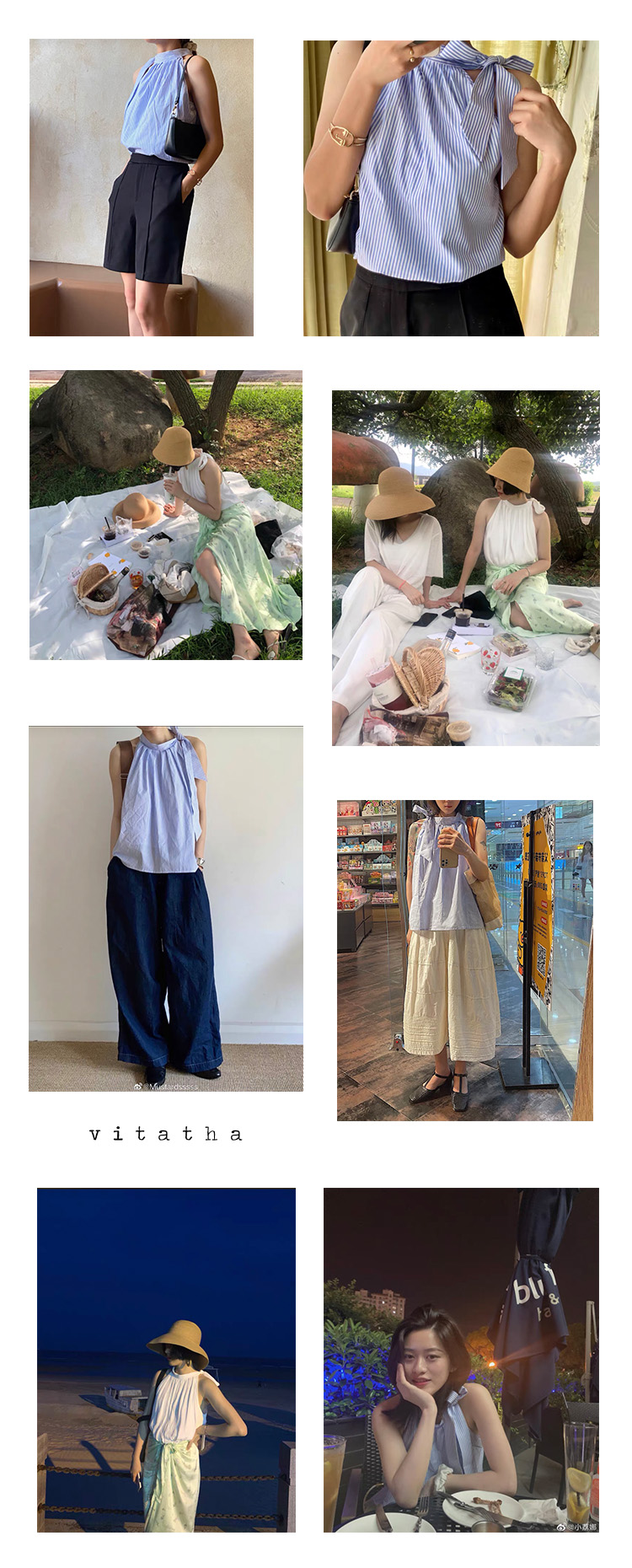 Vitatha番塔塔/21SS-TX10/露肩系带挂脖打结上衣无袖上衣背心
