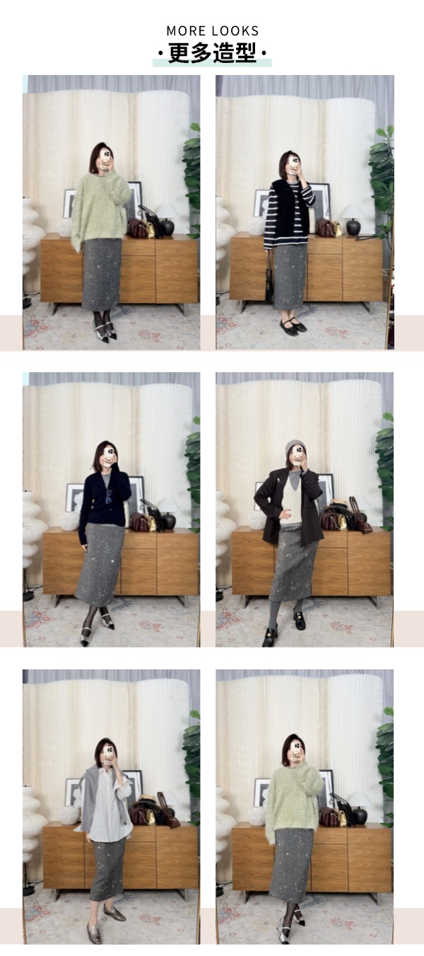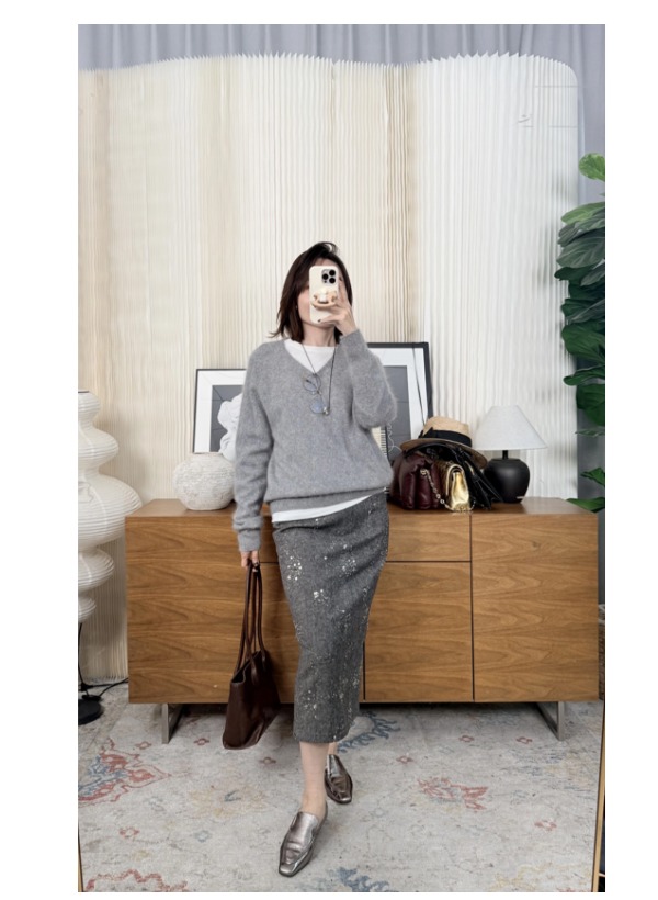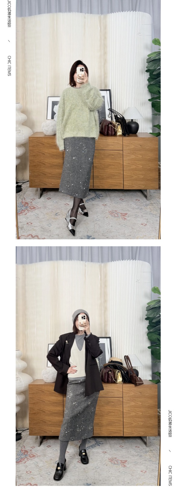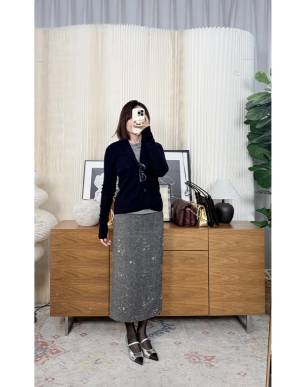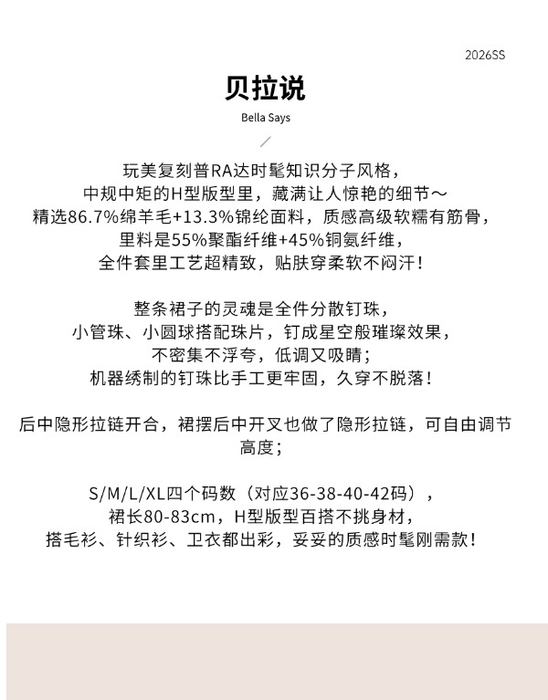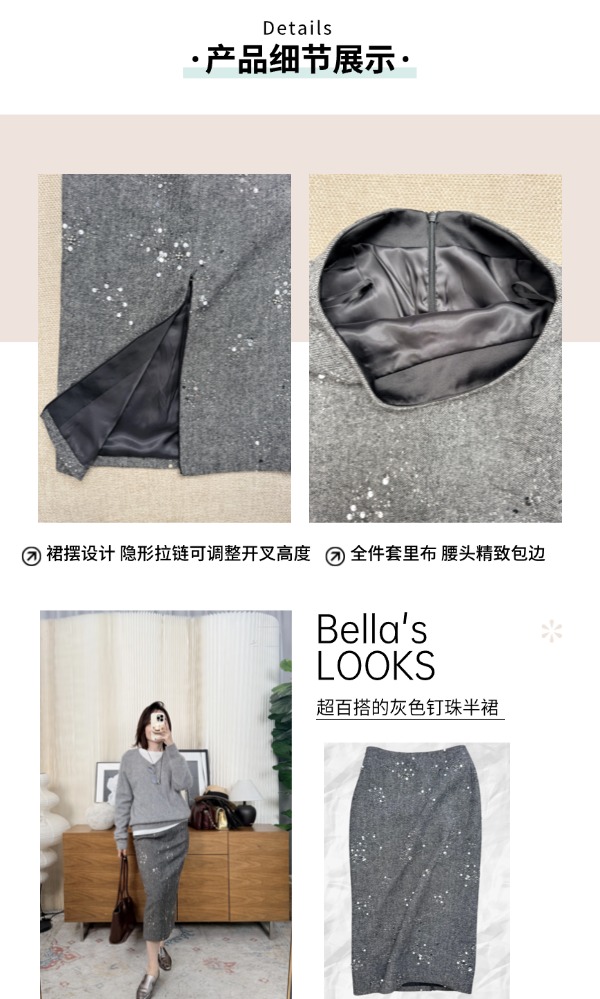 【贝拉推荐】高阶智性美 H型灰色羊毛钉珠半裙 普ra达克制的性感 时髦知识分子羊毛半裙