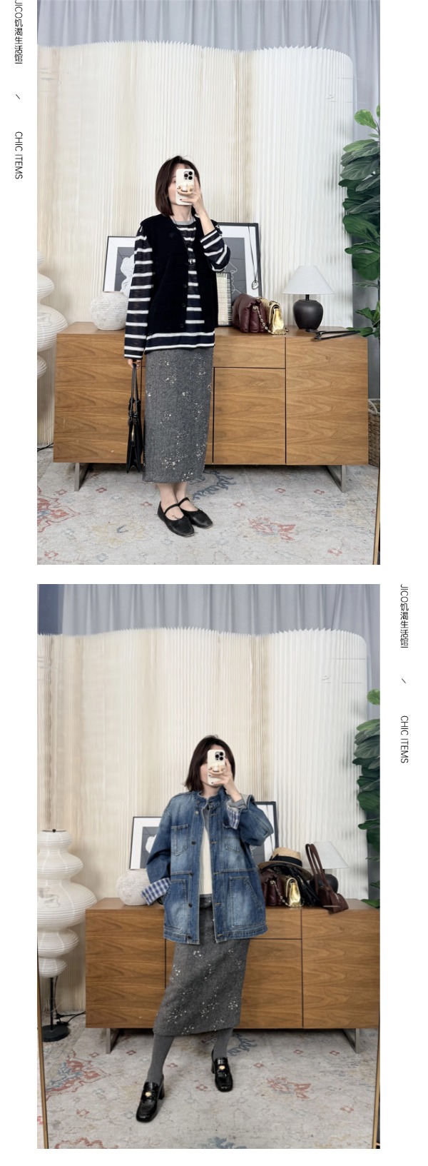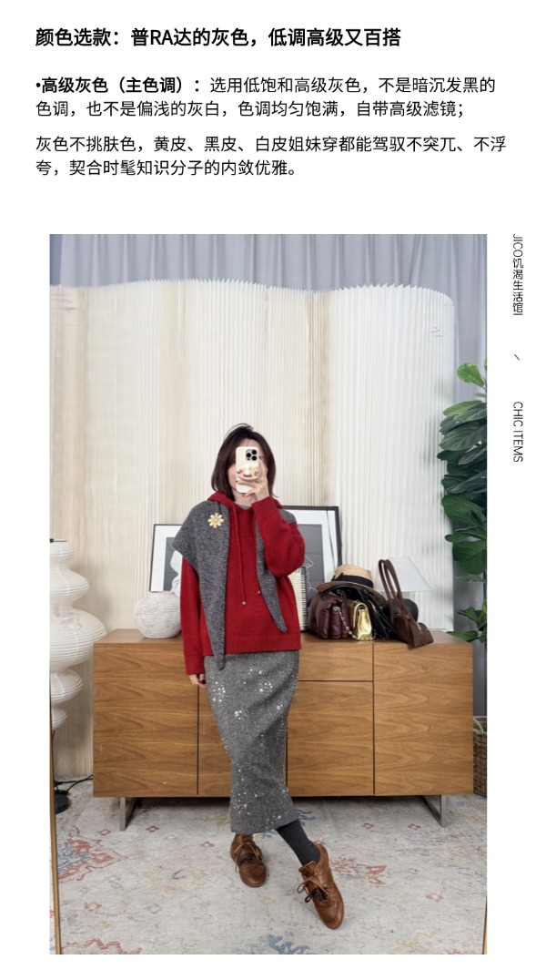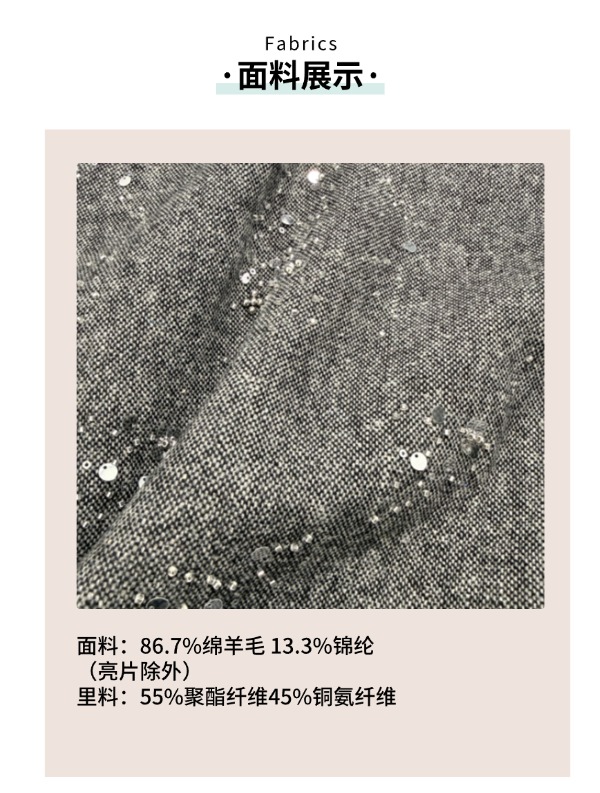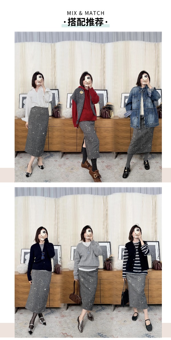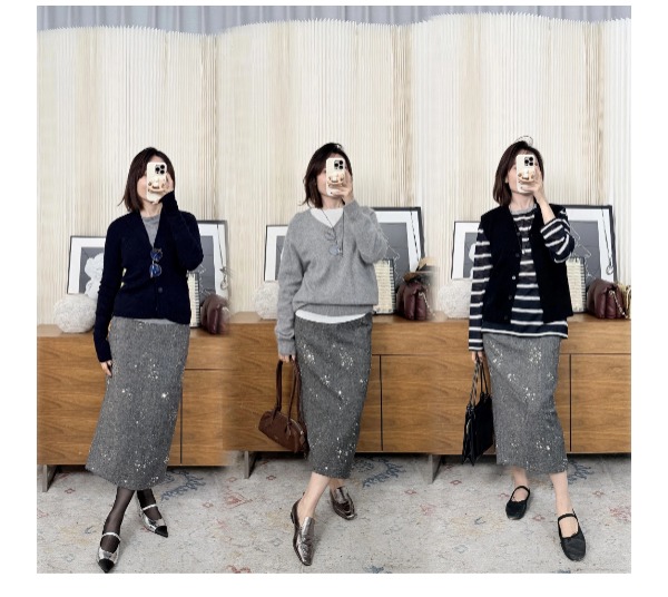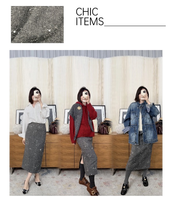 【贝拉推荐】高阶智性美 H型灰色羊毛钉珠半裙 普ra达克制的性感 时髦知识分子羊毛半裙