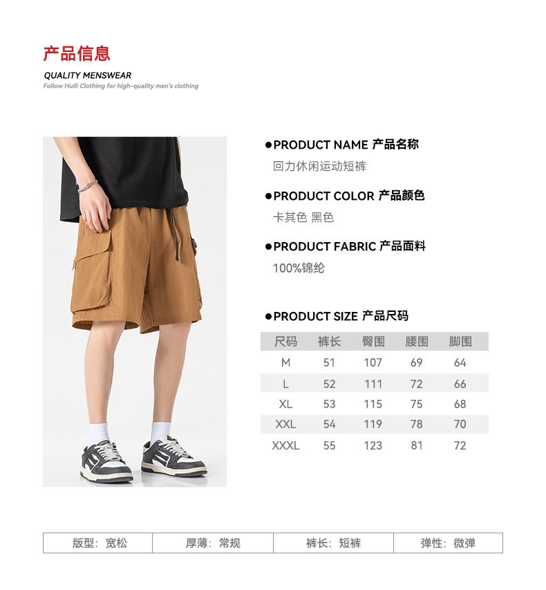 回力冰丝薄款短裤男士夏季新款美式宽松休闲五分裤潮牌工装裤