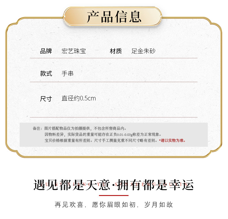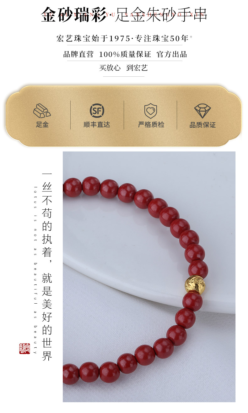 【宏艺珠宝】金砂瑞彩·足金朱砂手串