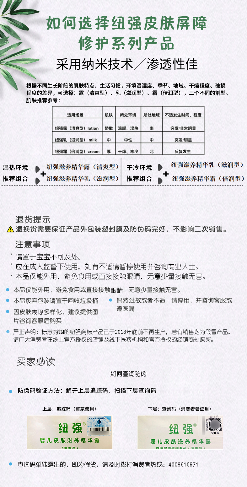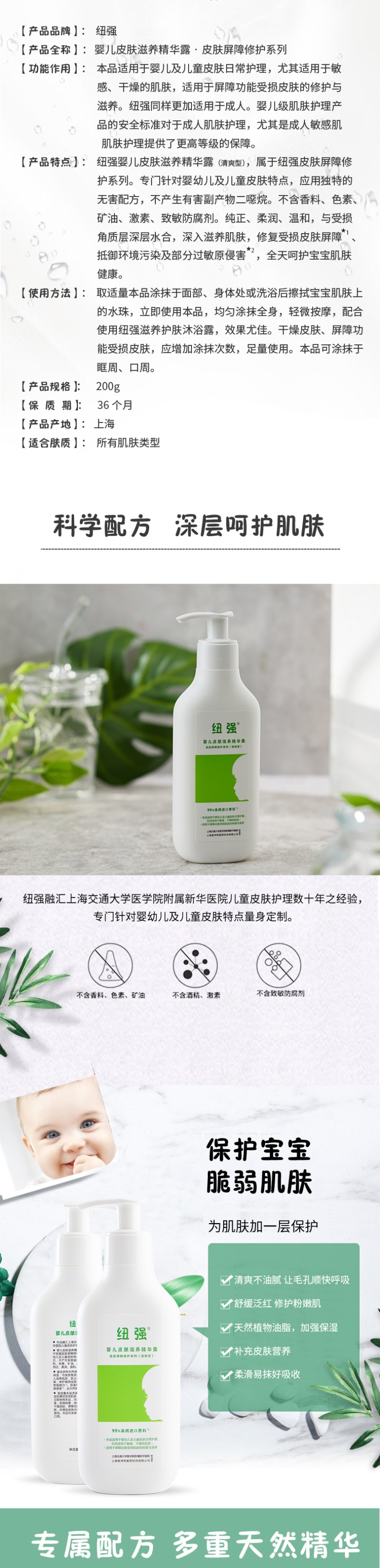 纽强精华露婴儿润肤清爽保湿儿童新生宝无激素身体乳新华官方正品