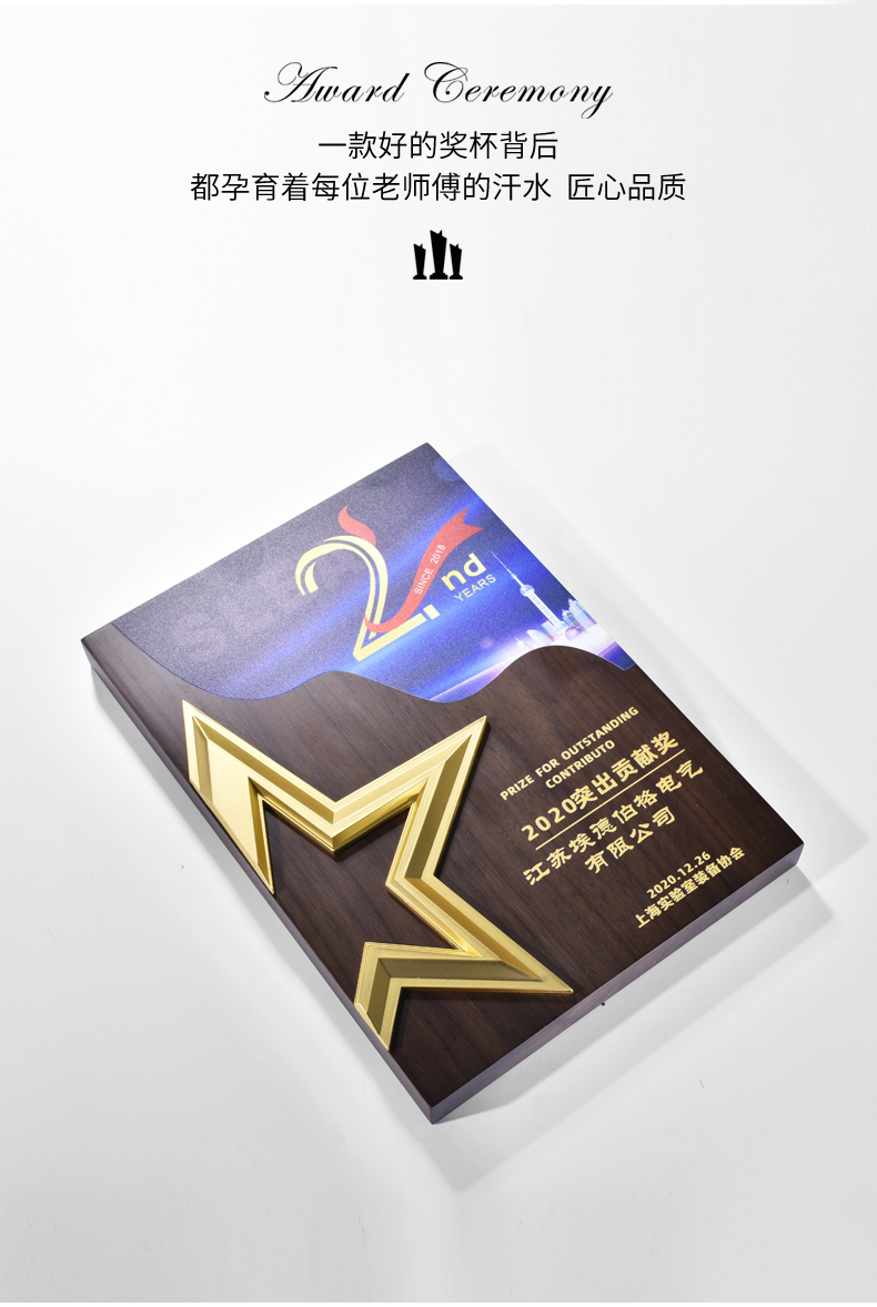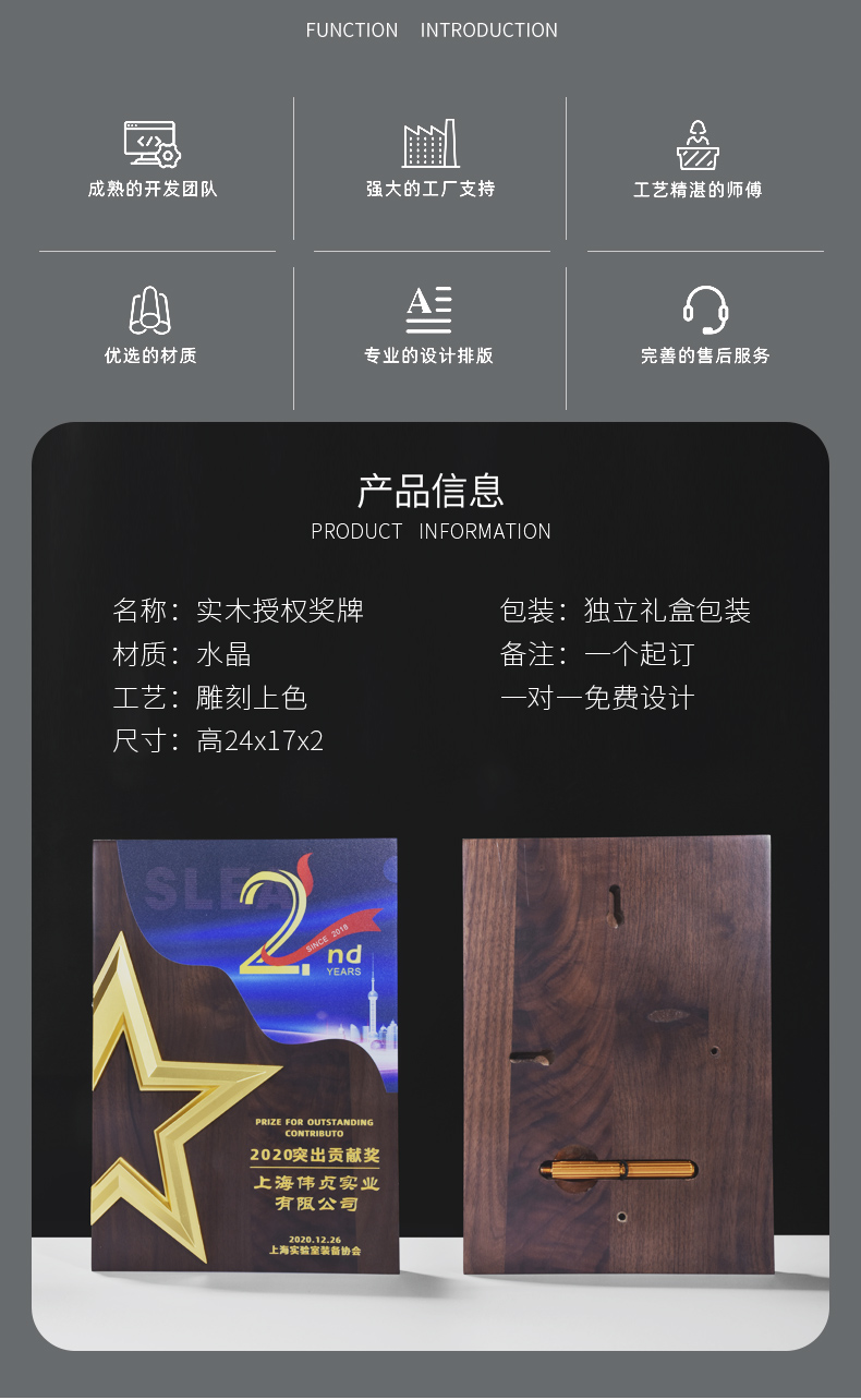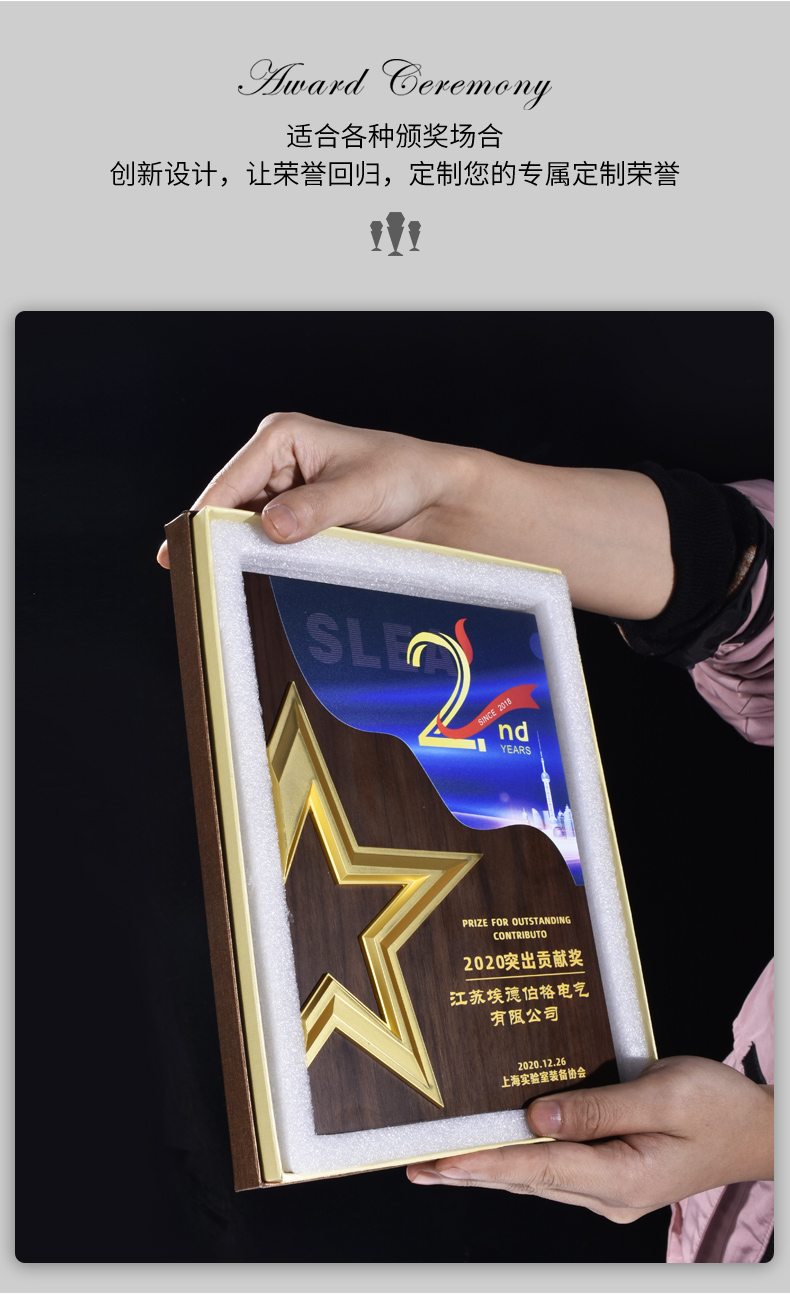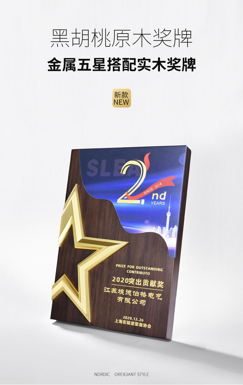 创意金属五角星木质高档实木奖牌定制定做授权牌证书聘书制作奖品