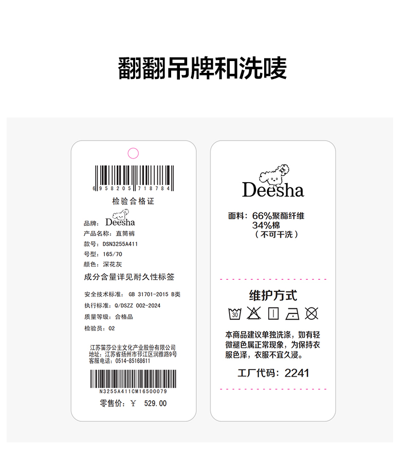 笛莎Deesha 童装女童裤子2026春新款甜美粉标束脚裤