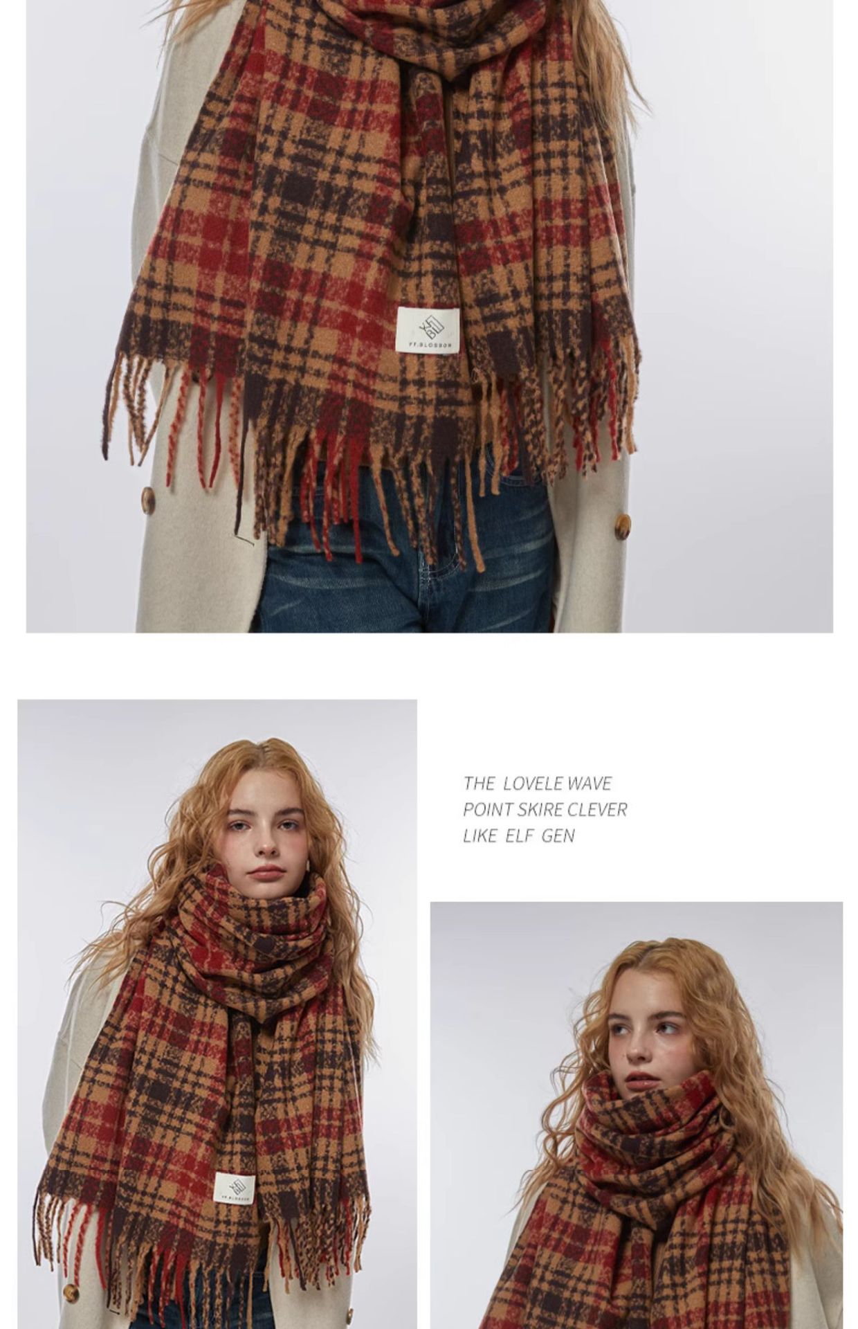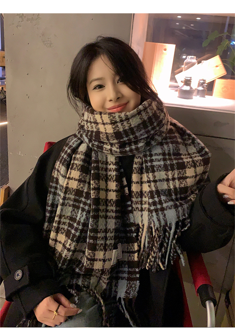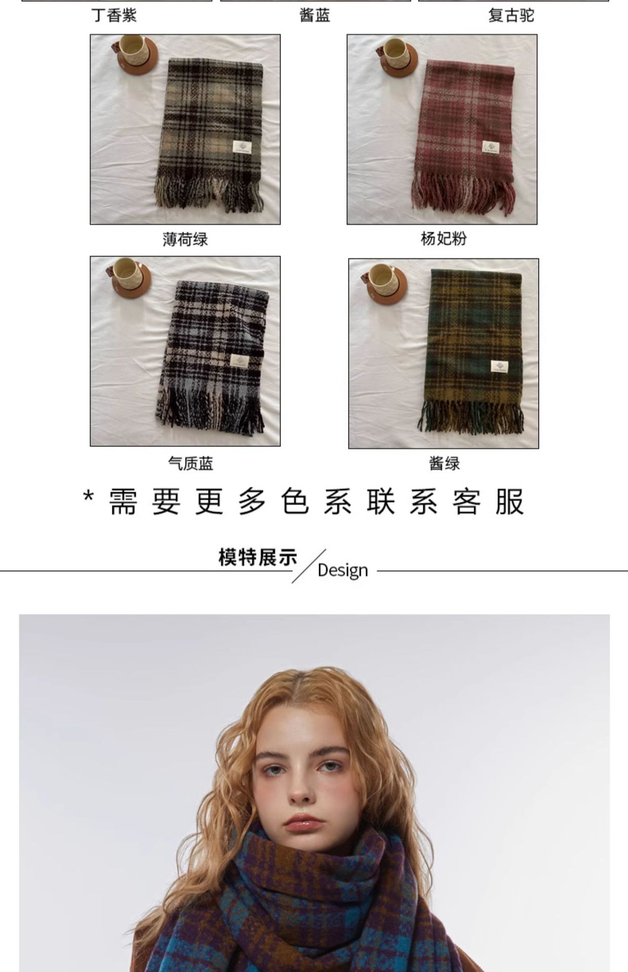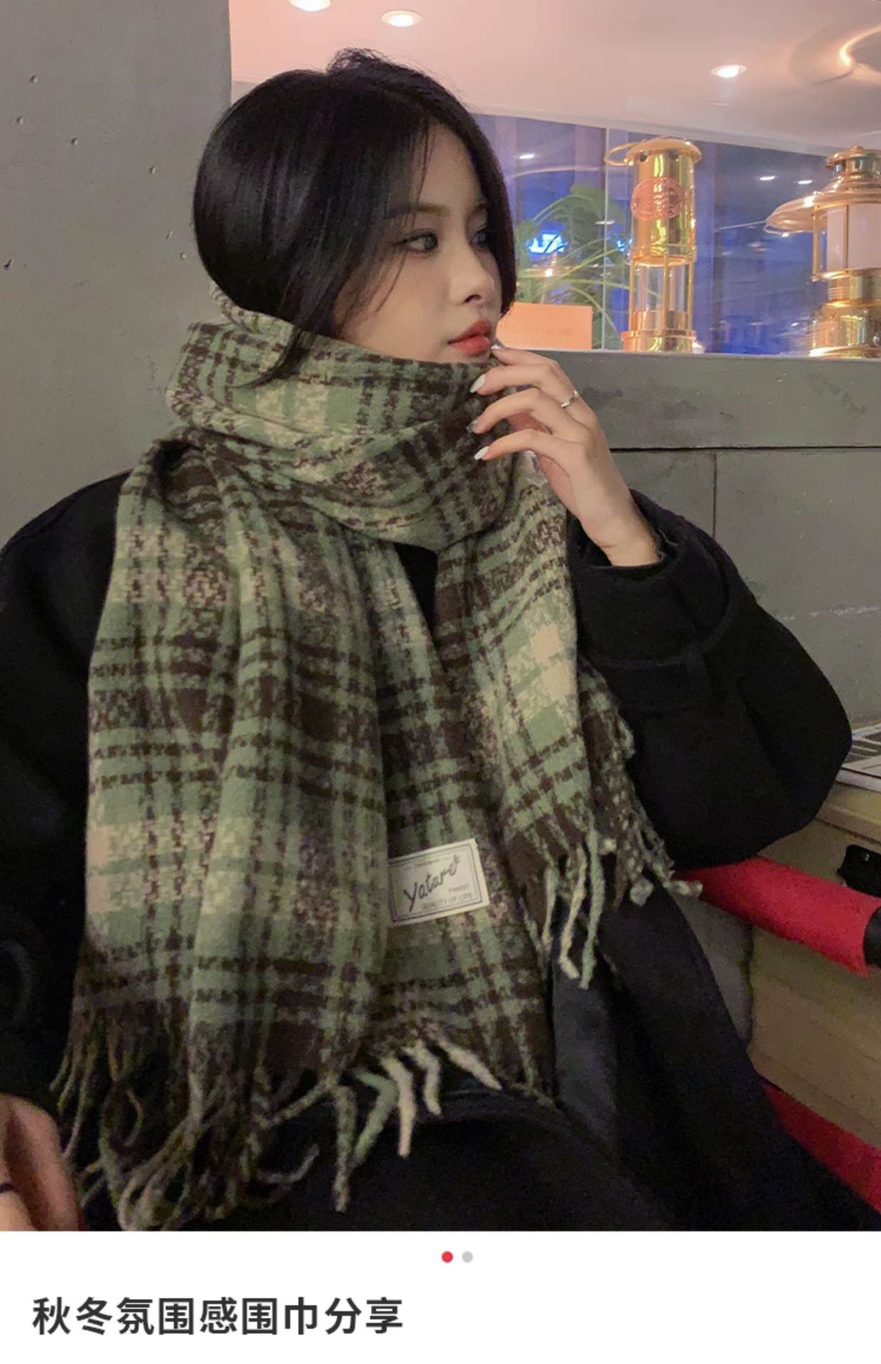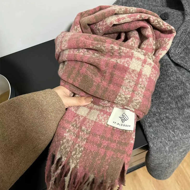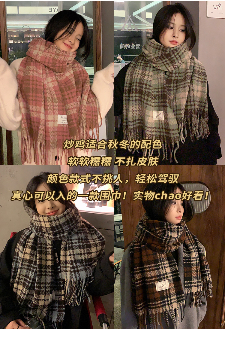 【软软糯糯】韩版格子女韩系甜美保暖提花粉秋冬柔软流苏粉色格子围巾围脖。ry
