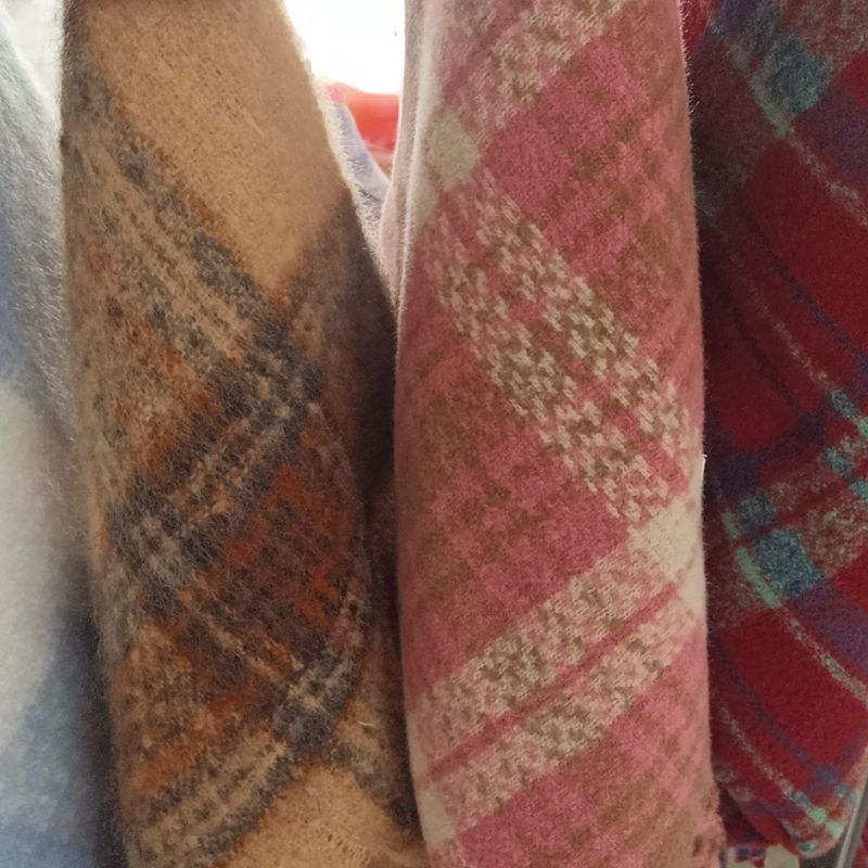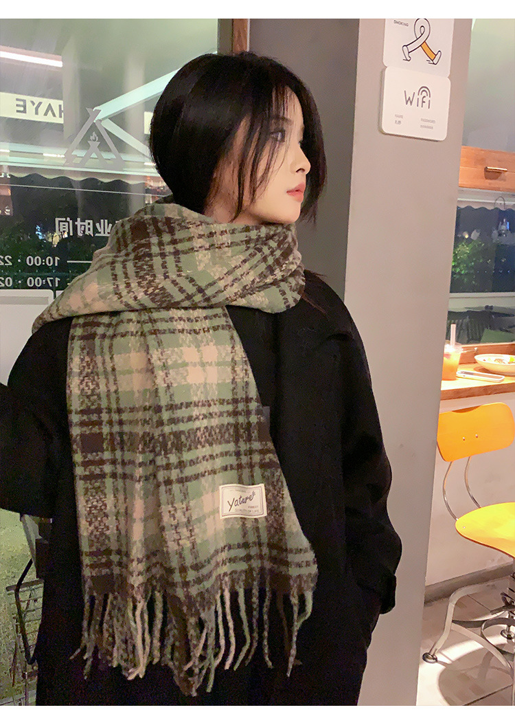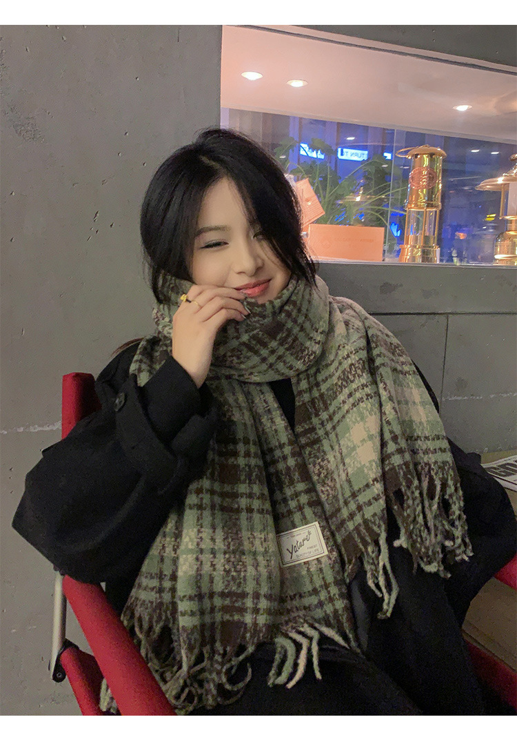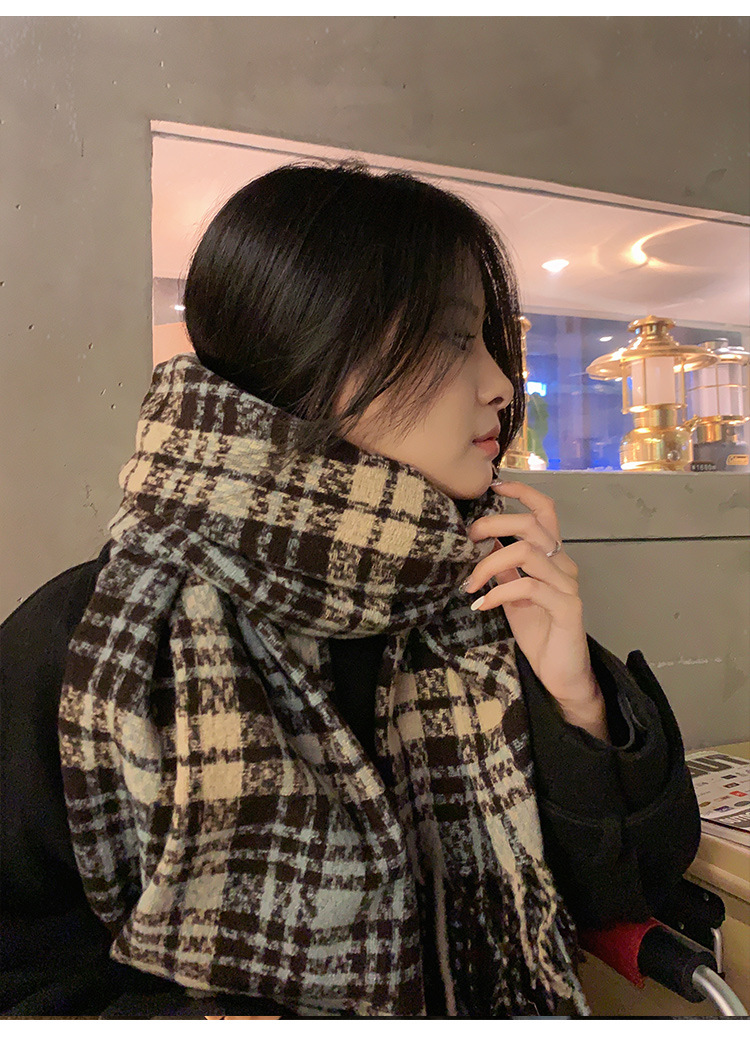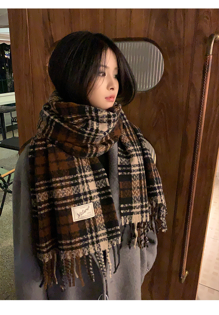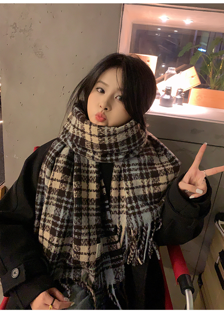 【软软糯糯】韩版格子女韩系甜美保暖提花粉秋冬柔软流苏粉色格子围巾围脖。ry