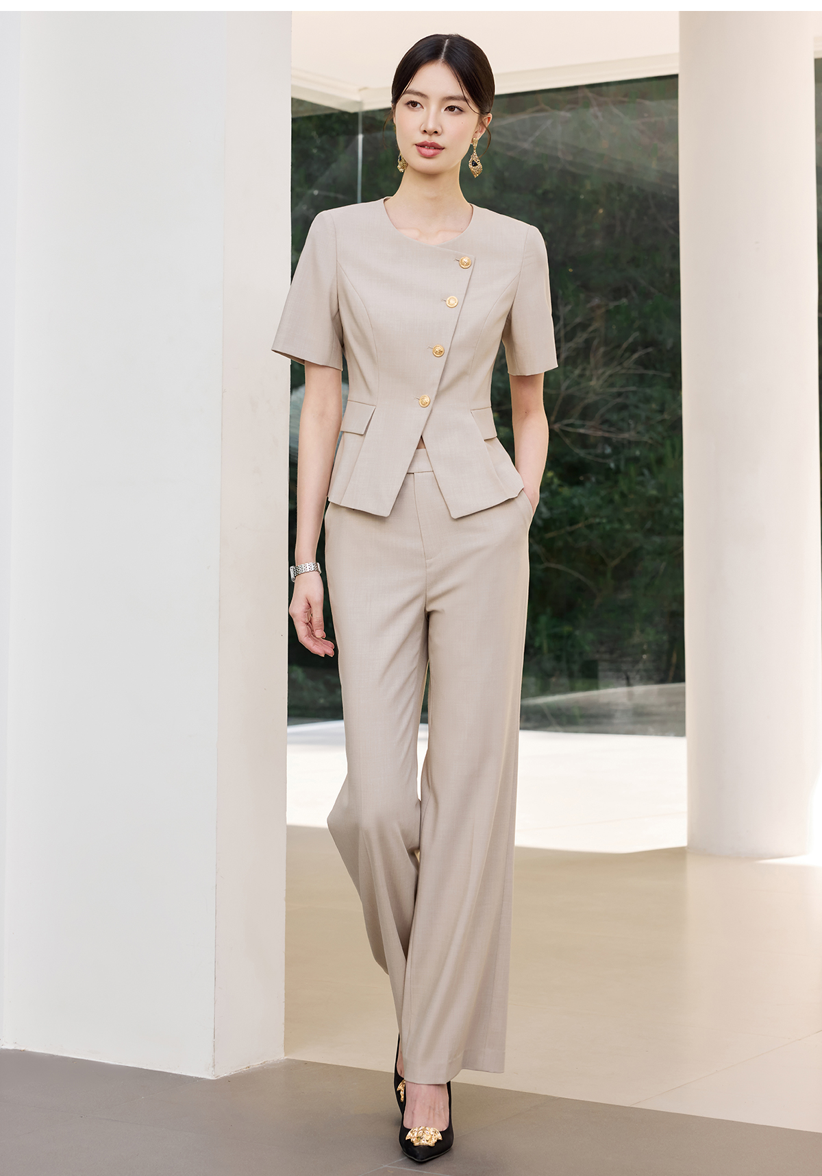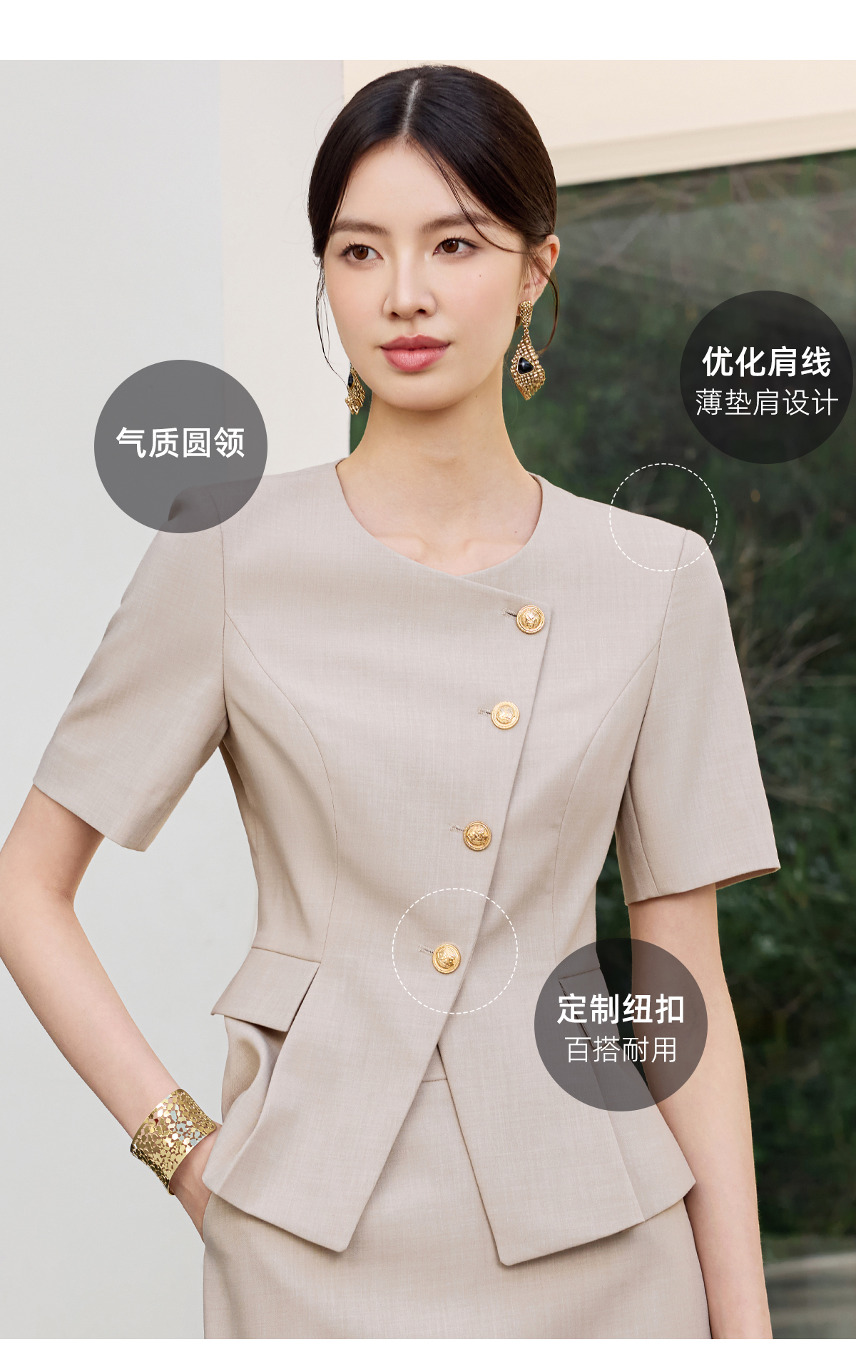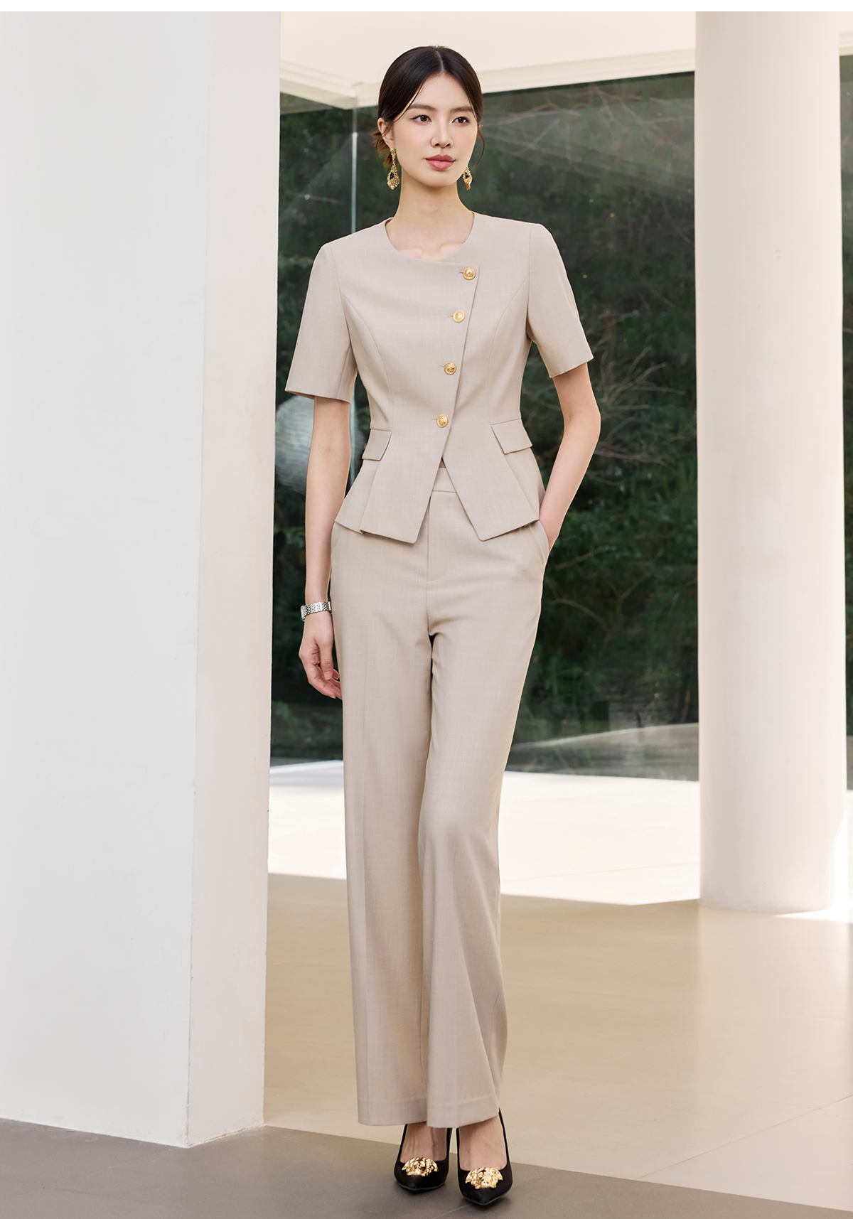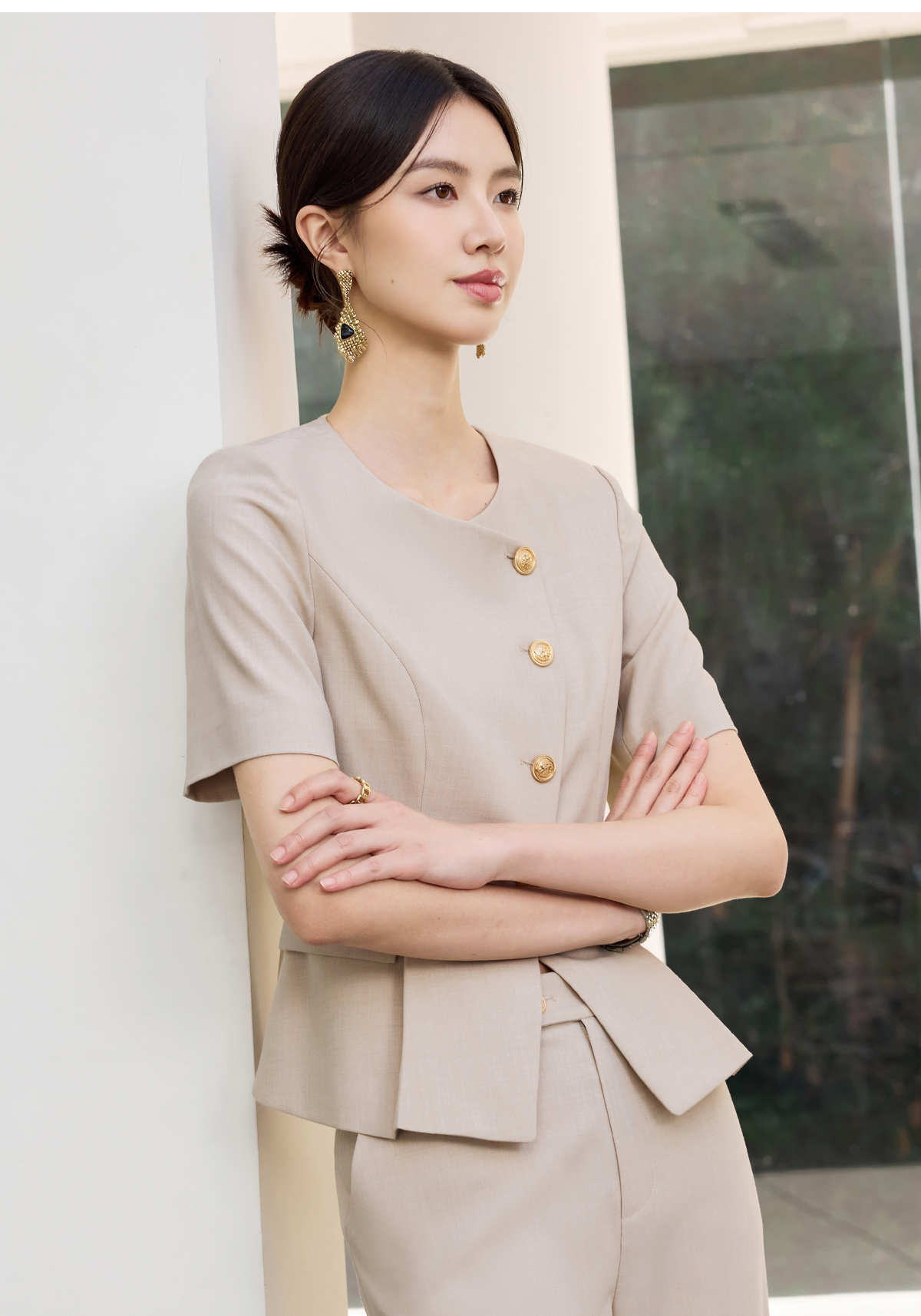 IWY/燕麦色短袖西装套装女夏季高级感正式场合接待职业装工作服25CP801