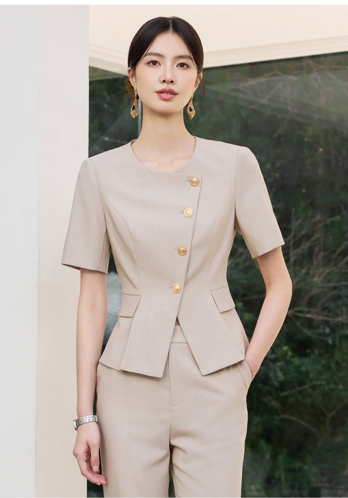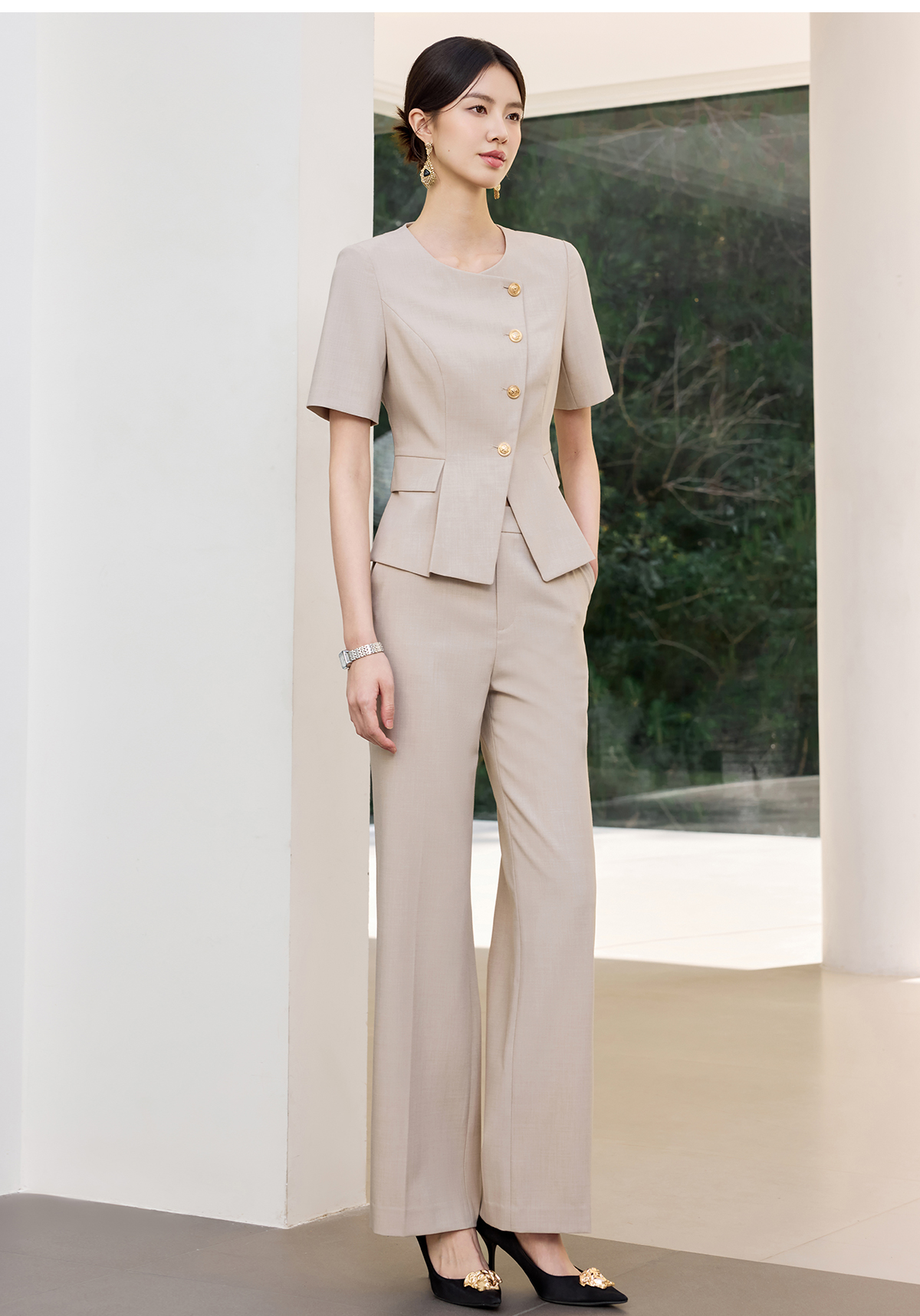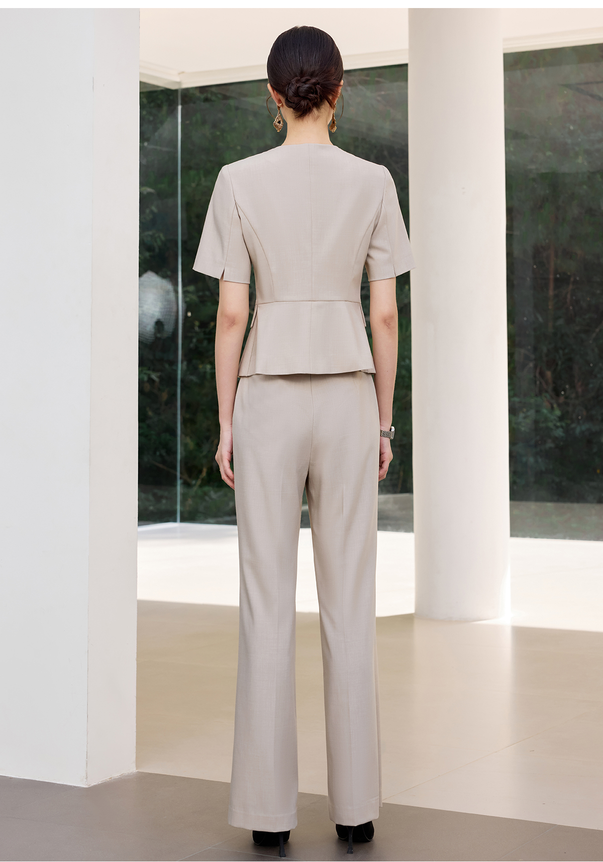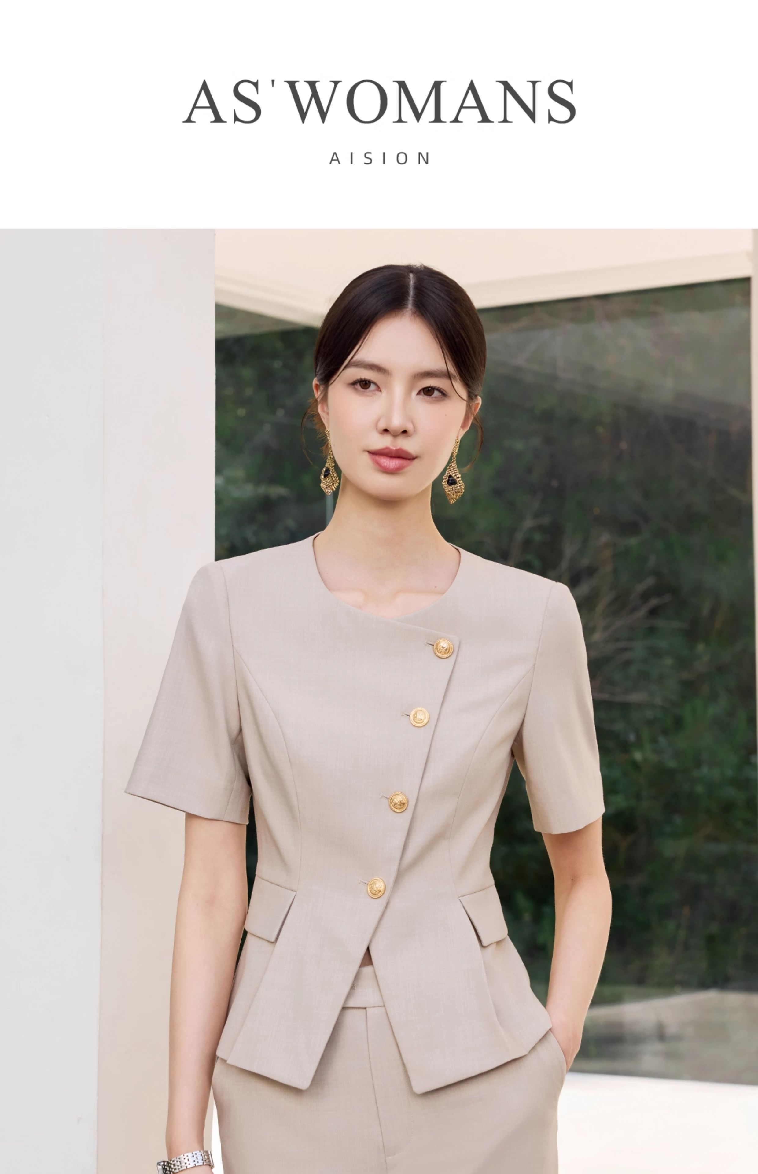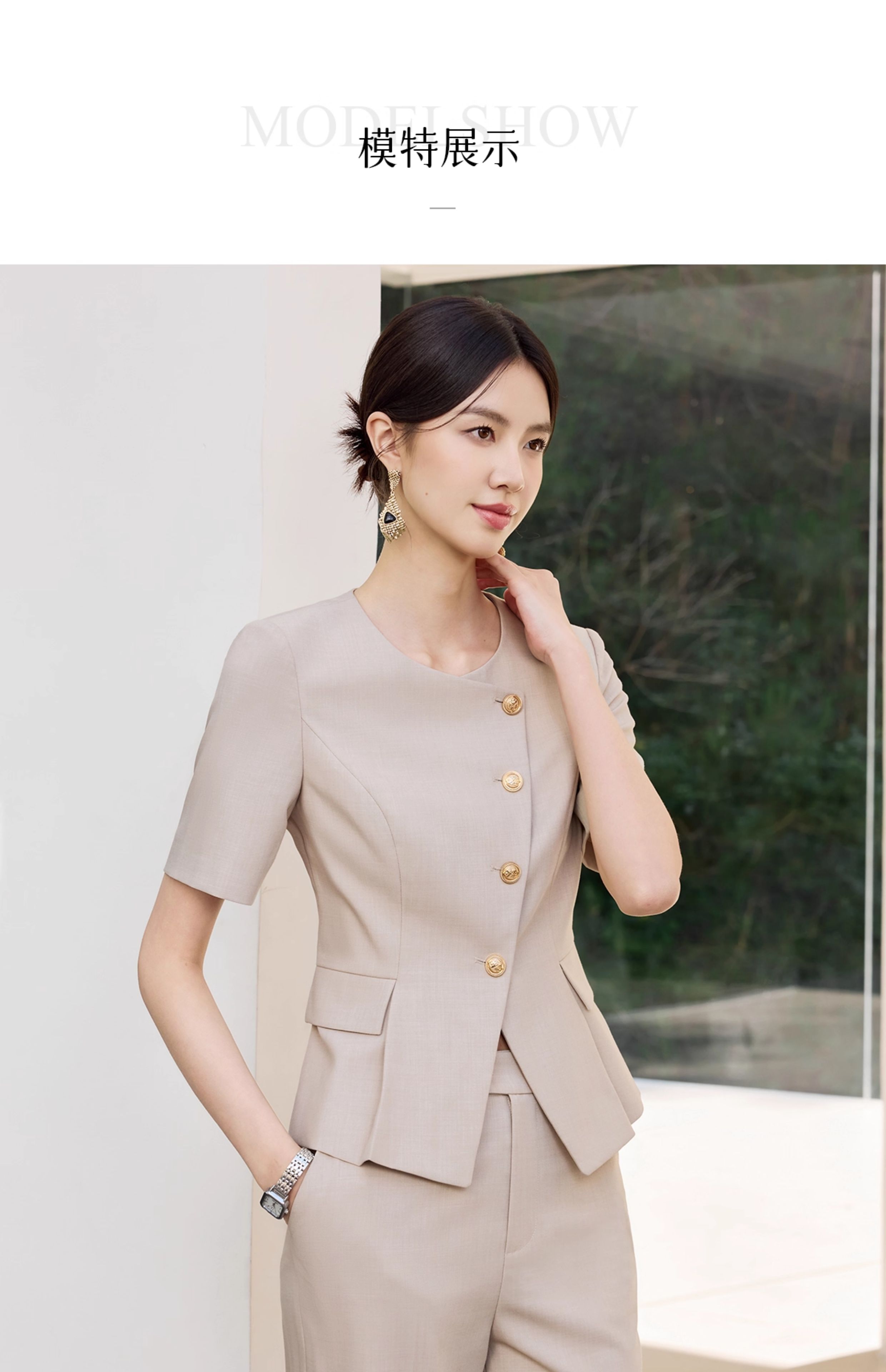 IWY/燕麦色短袖西装套装女夏季高级感正式场合接待职业装工作服25CP801