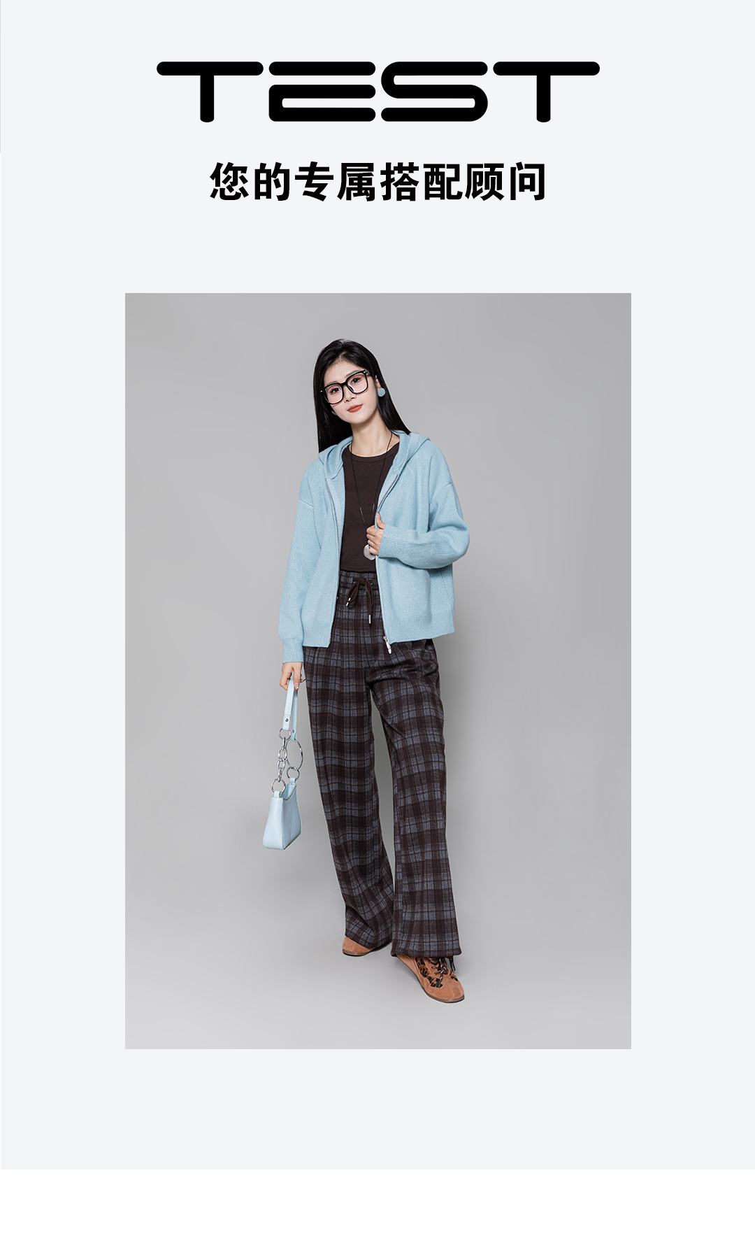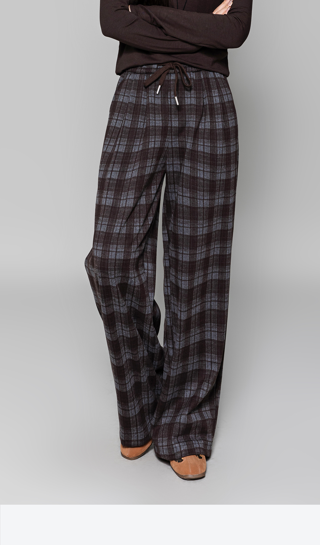 冬上新轻松打造慵懒高级感格纹毛呢阔腿休闲裤3254029
