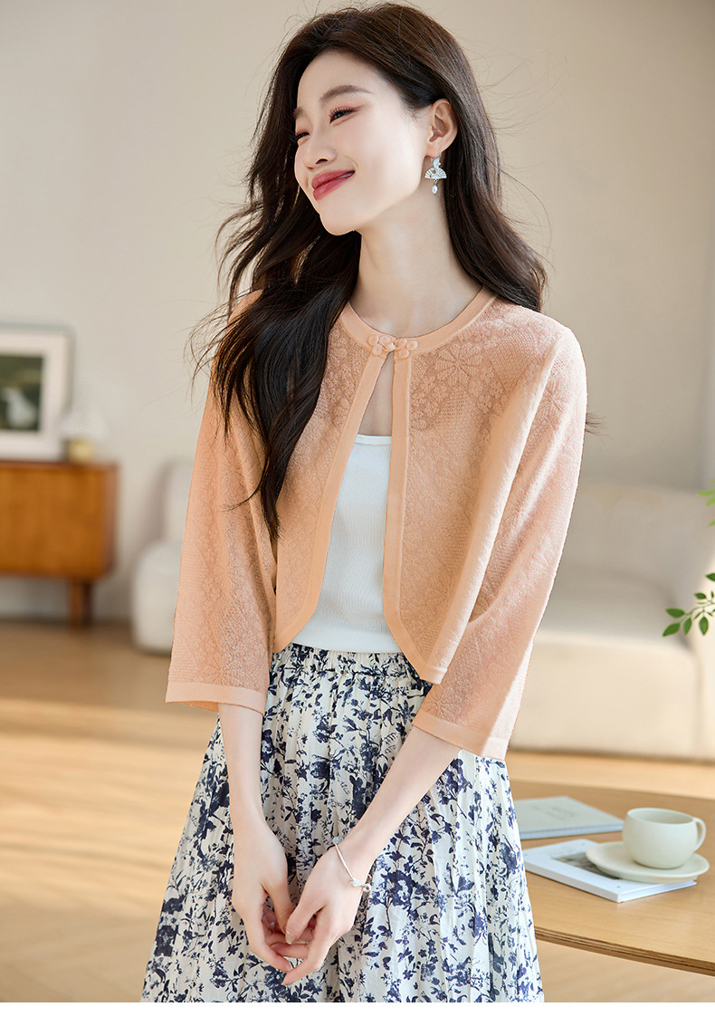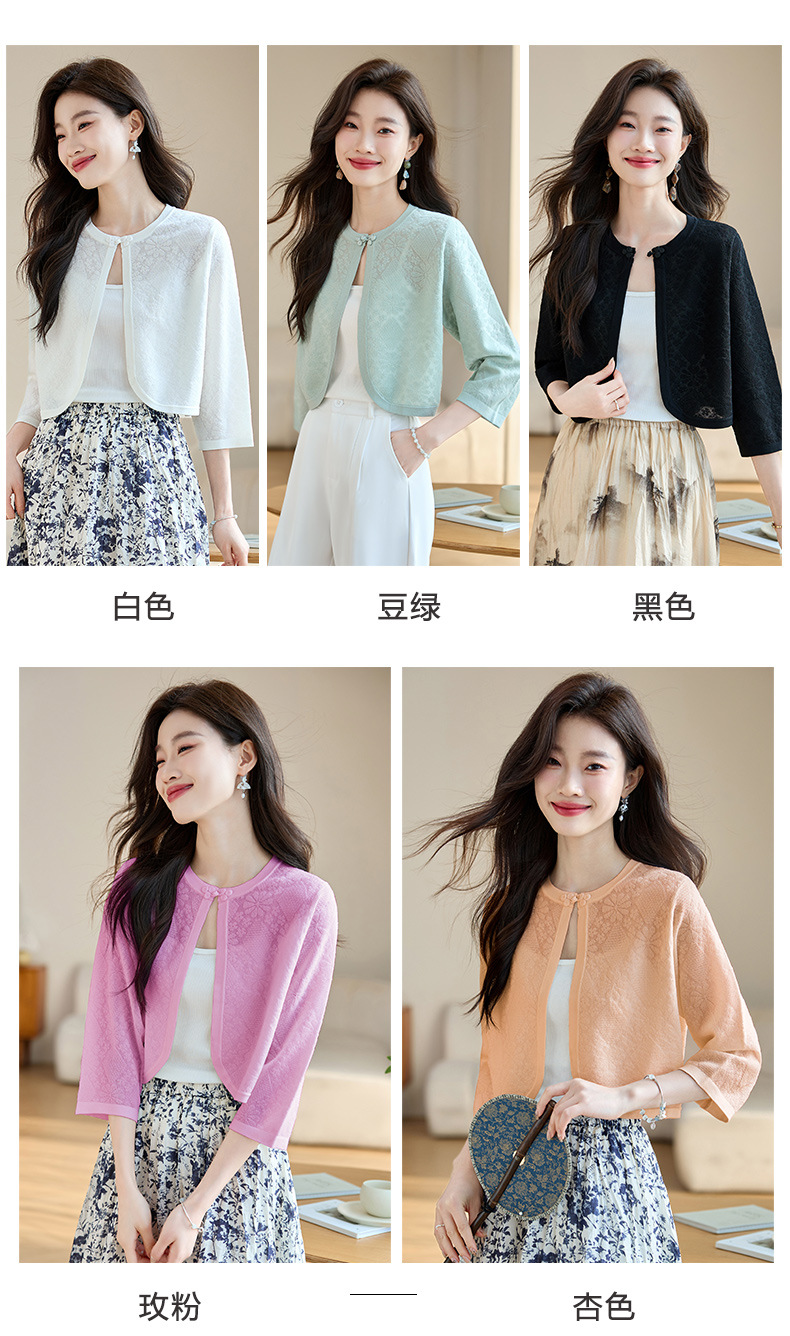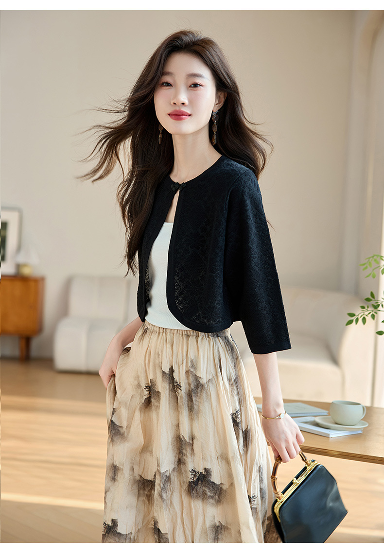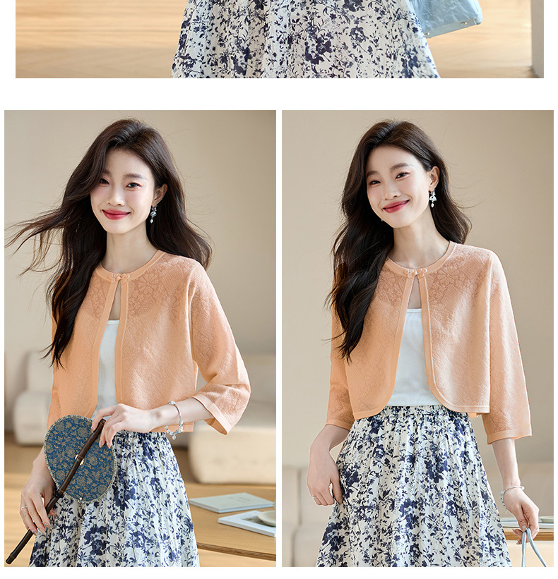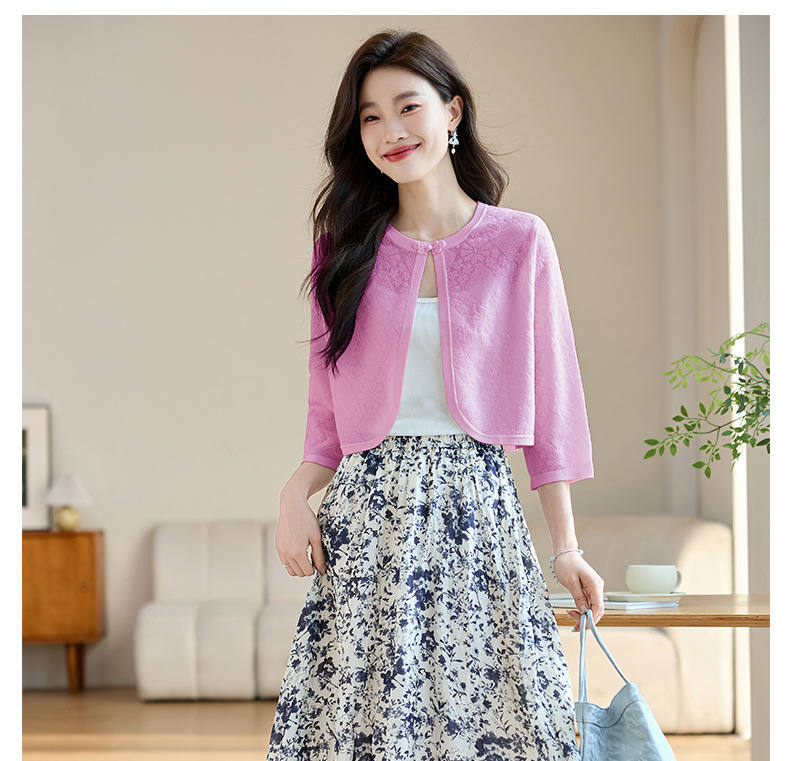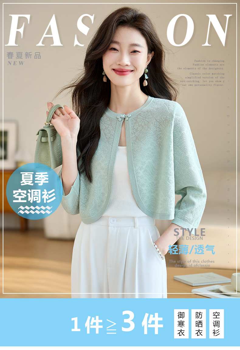 薄款防晒披肩夏季配裙子,七分袖空调衫吊带长裙外搭罩衫CC- AB1510