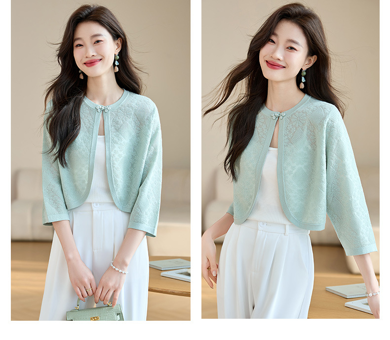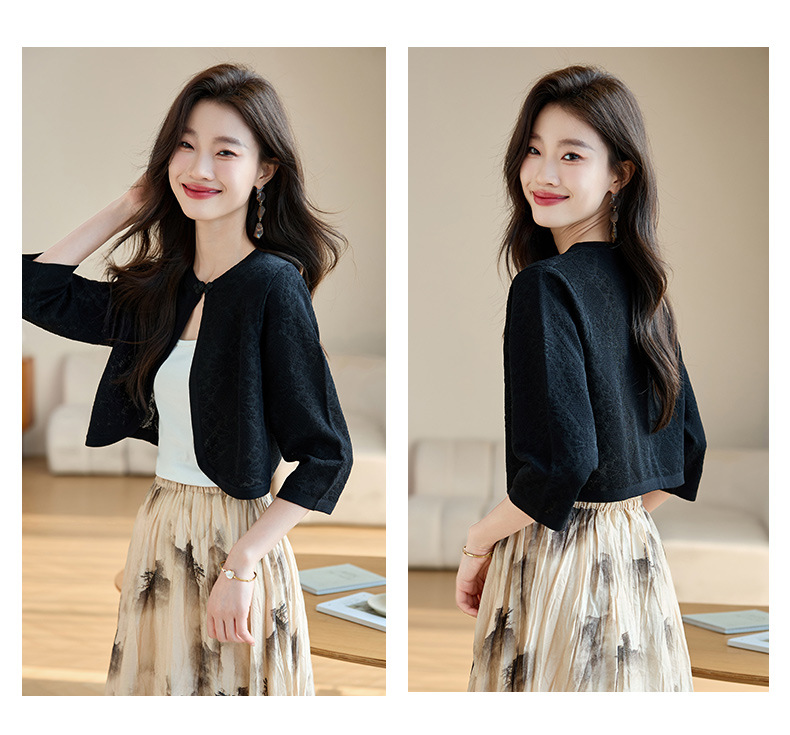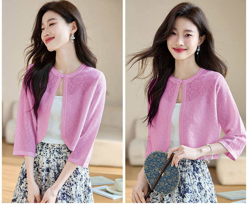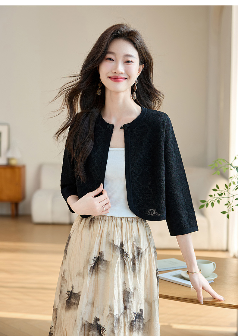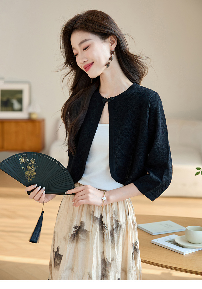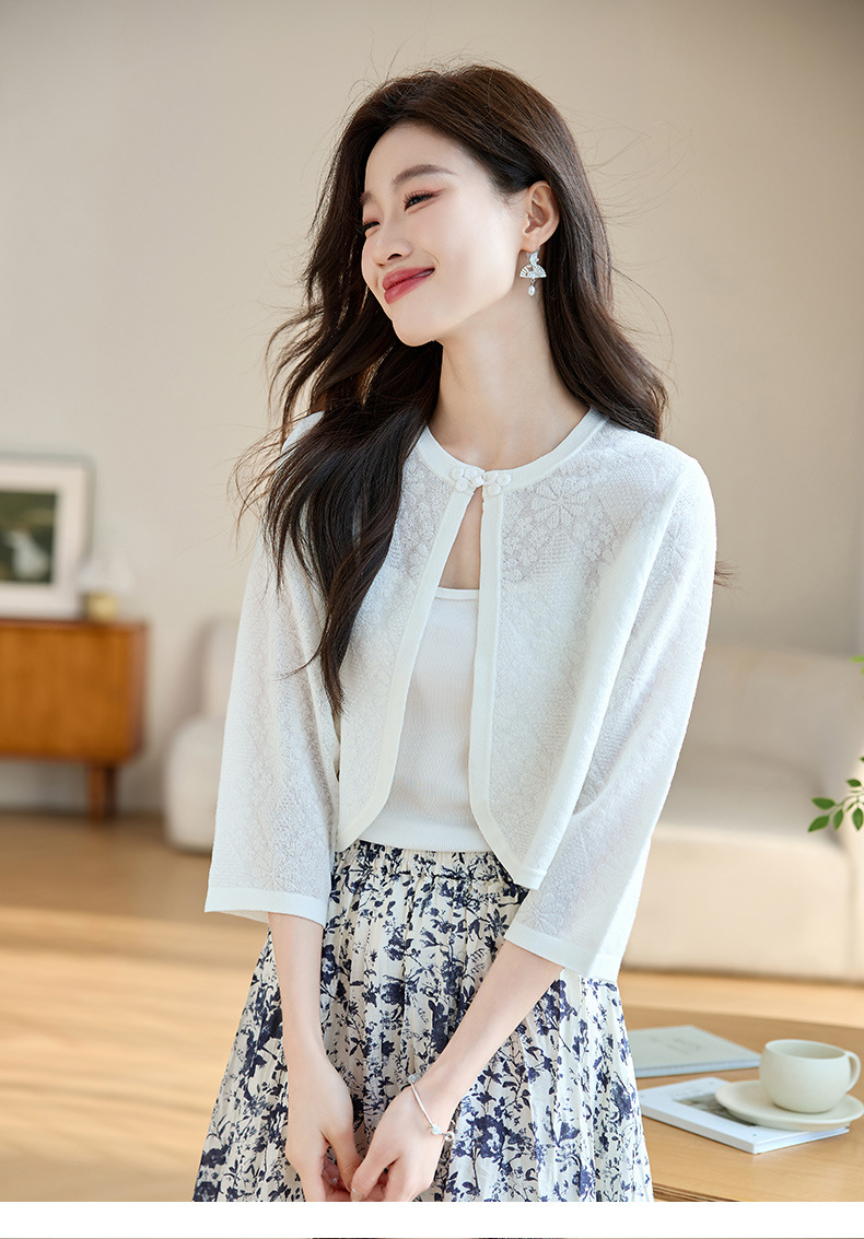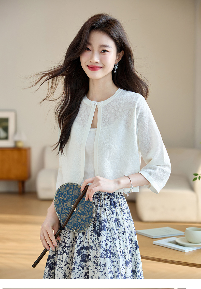 薄款防晒披肩夏季配裙子,七分袖空调衫吊带长裙外搭罩衫CC- AB1510