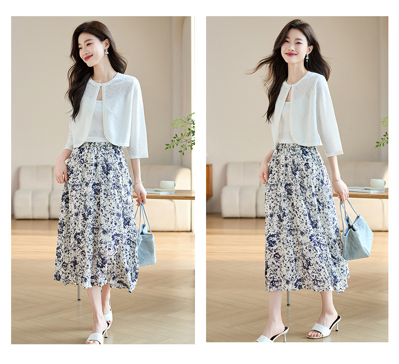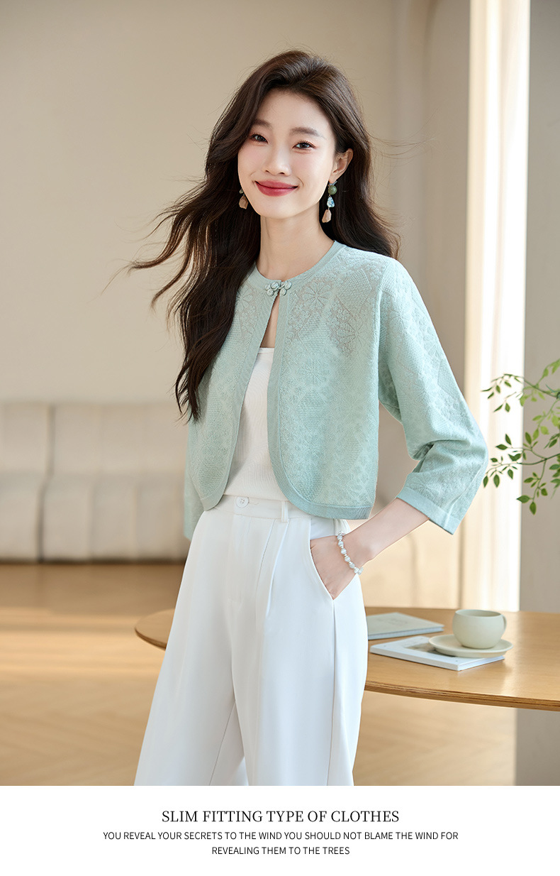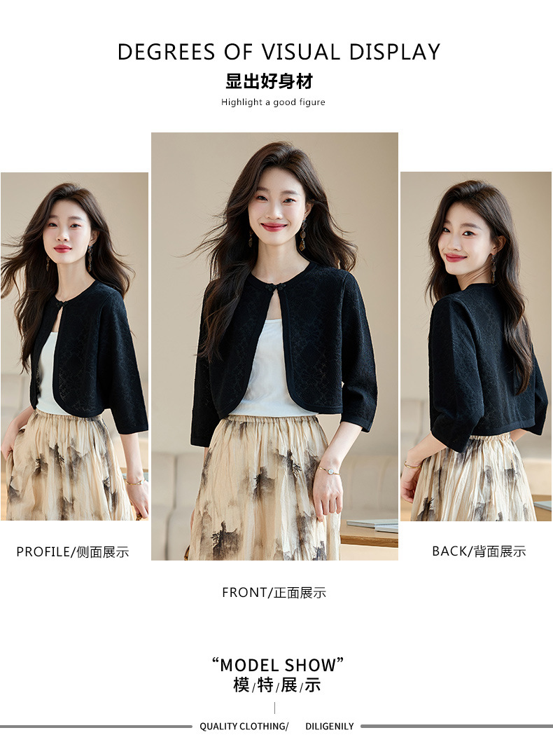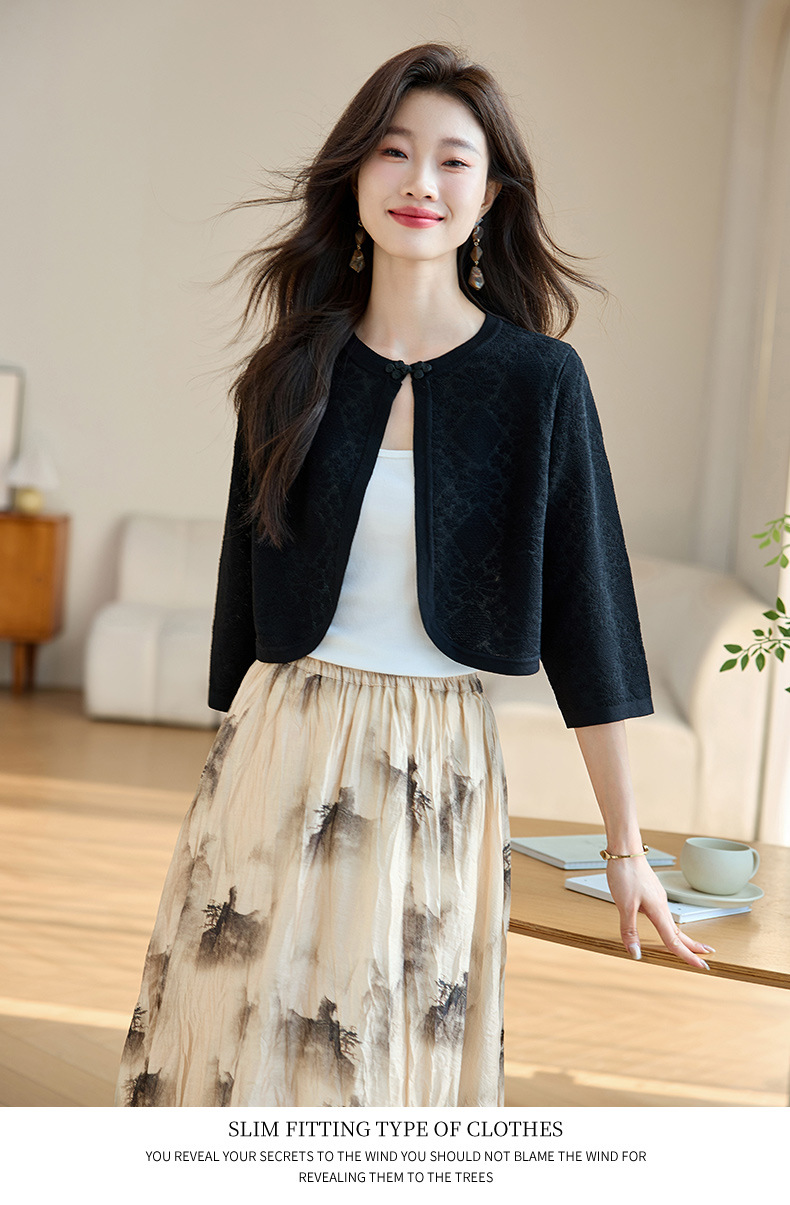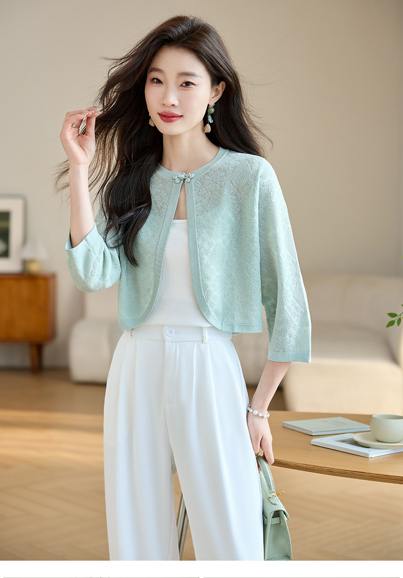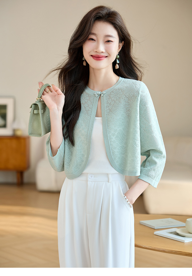 薄款防晒披肩夏季配裙子,七分袖空调衫吊带长裙外搭罩衫CC- AB1510