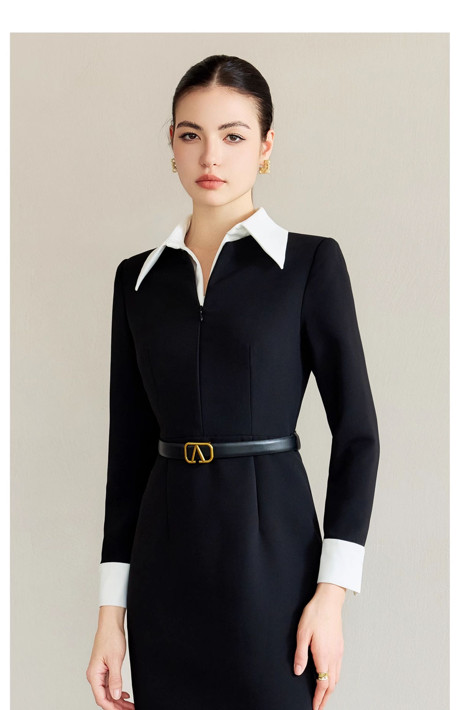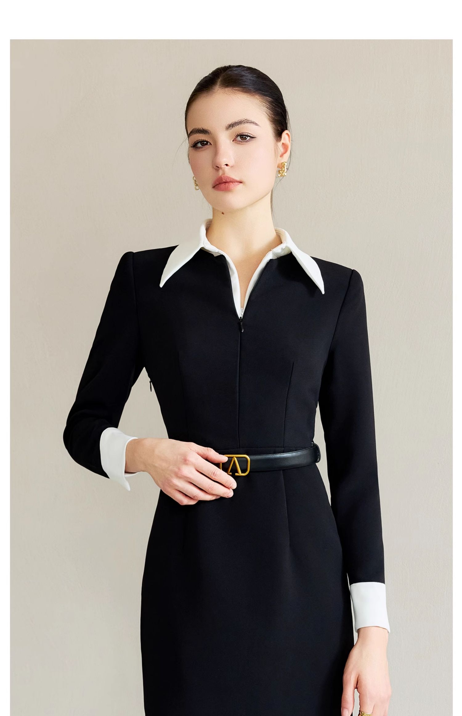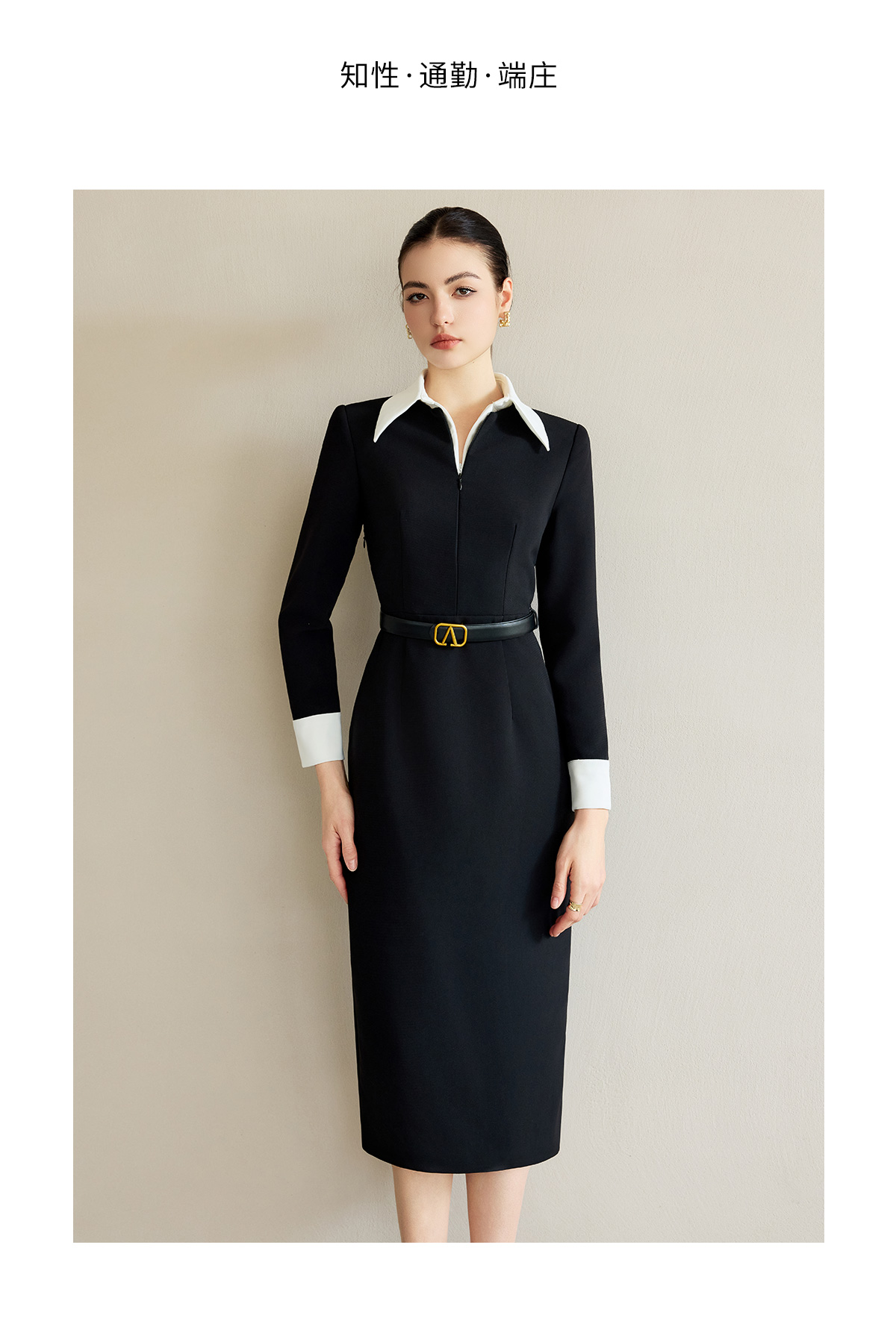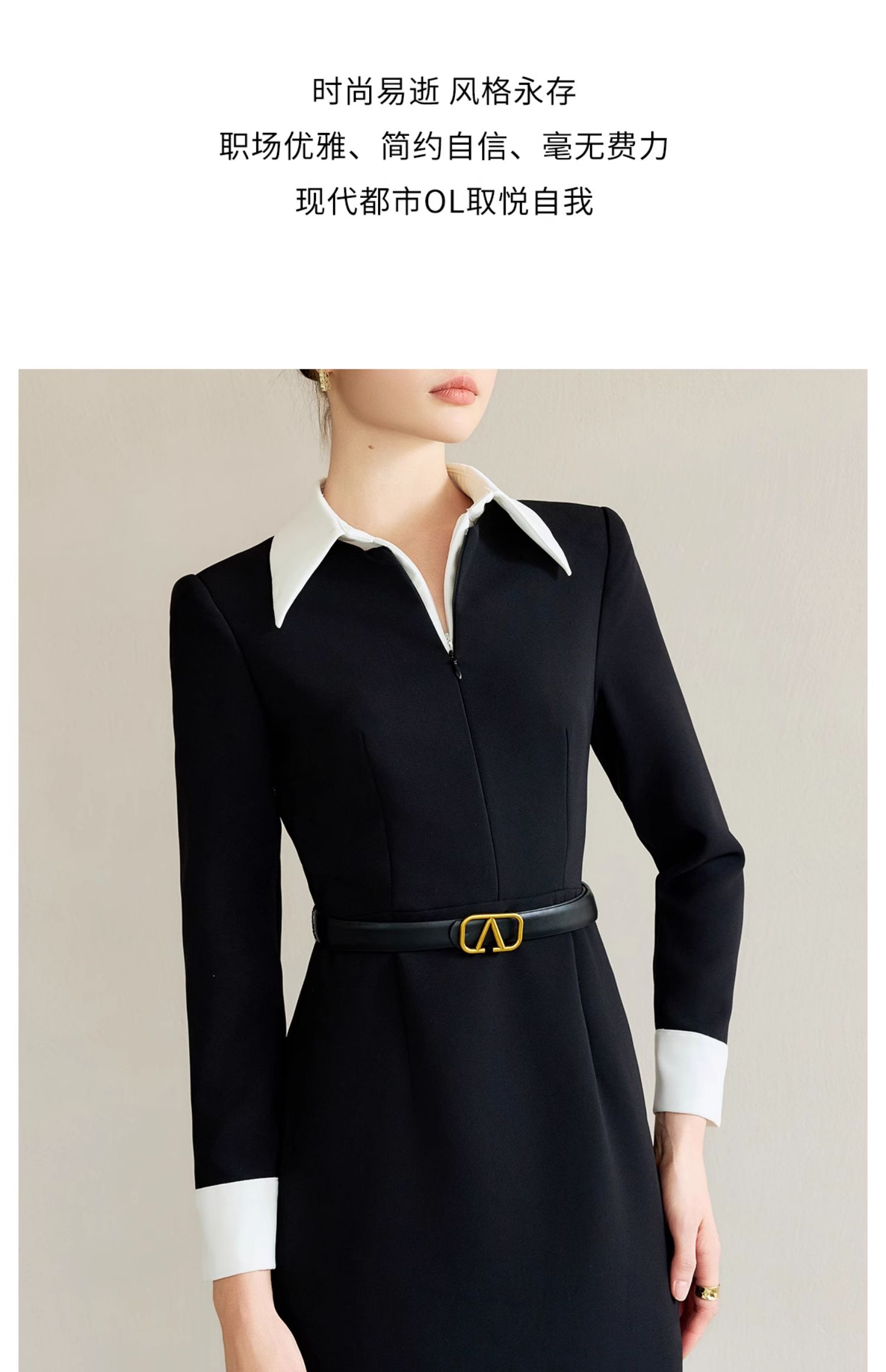 IWY/职业通勤女装高级感轻熟风连衣裙女黑白撞色翻领西装收腰包臀裙Q1295