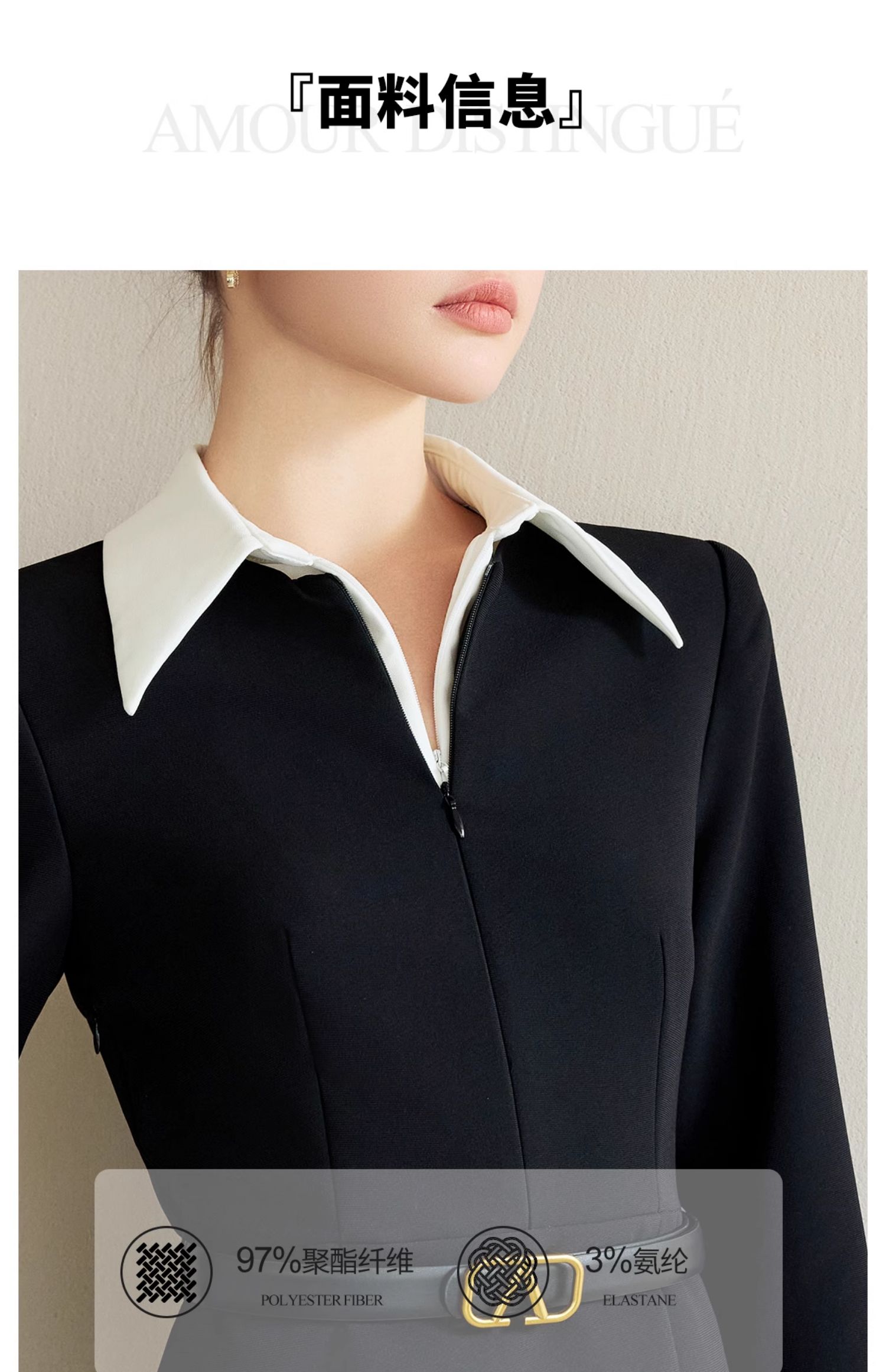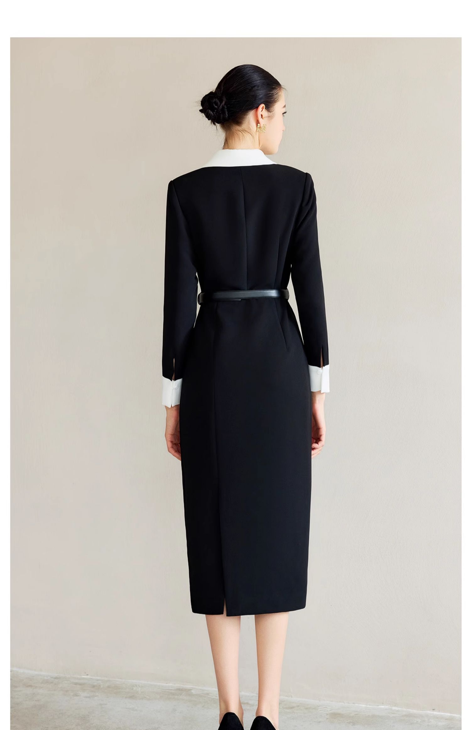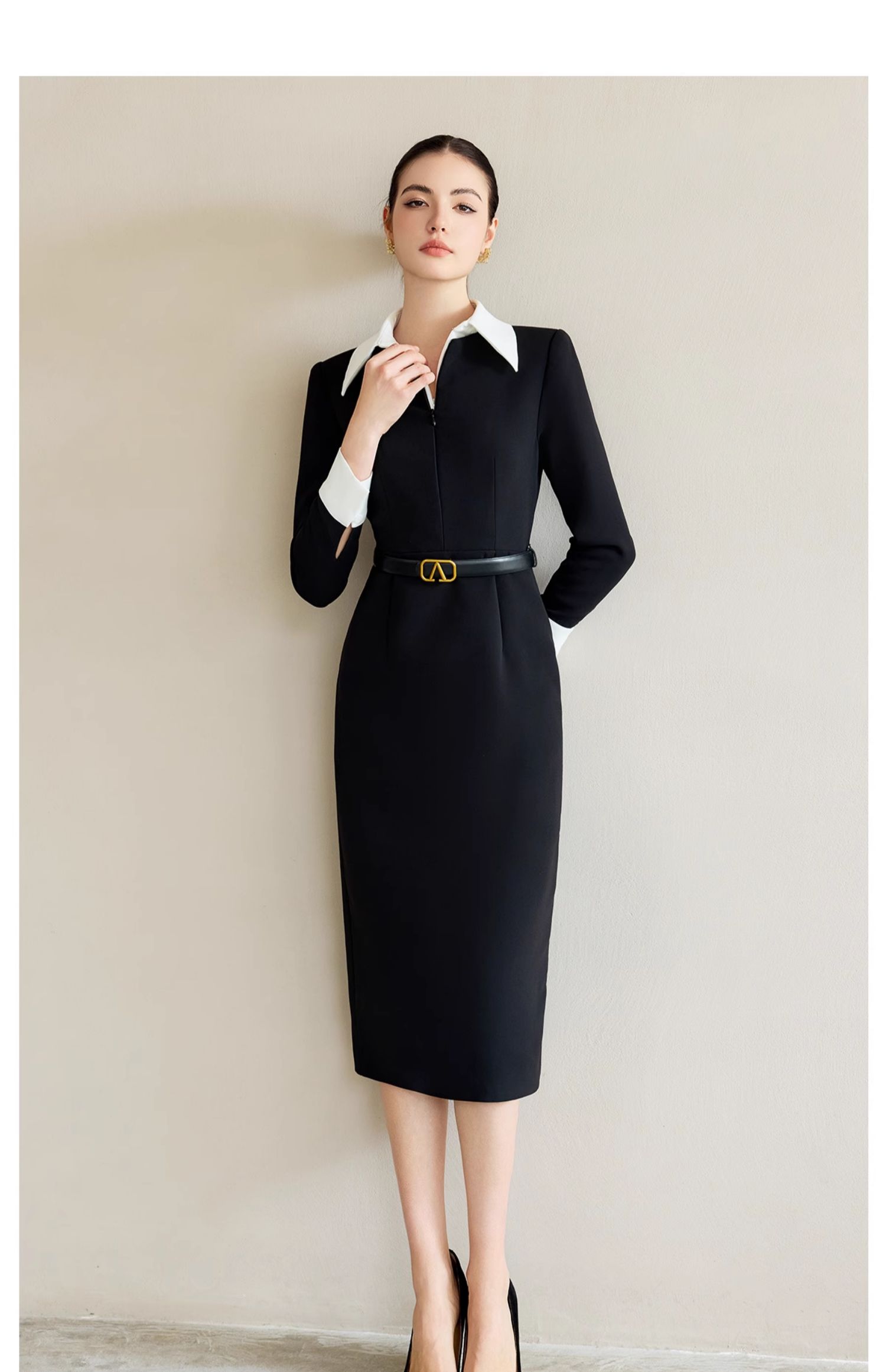 IWY/职业通勤女装高级感轻熟风连衣裙女黑白撞色翻领西装收腰包臀裙Q1295
