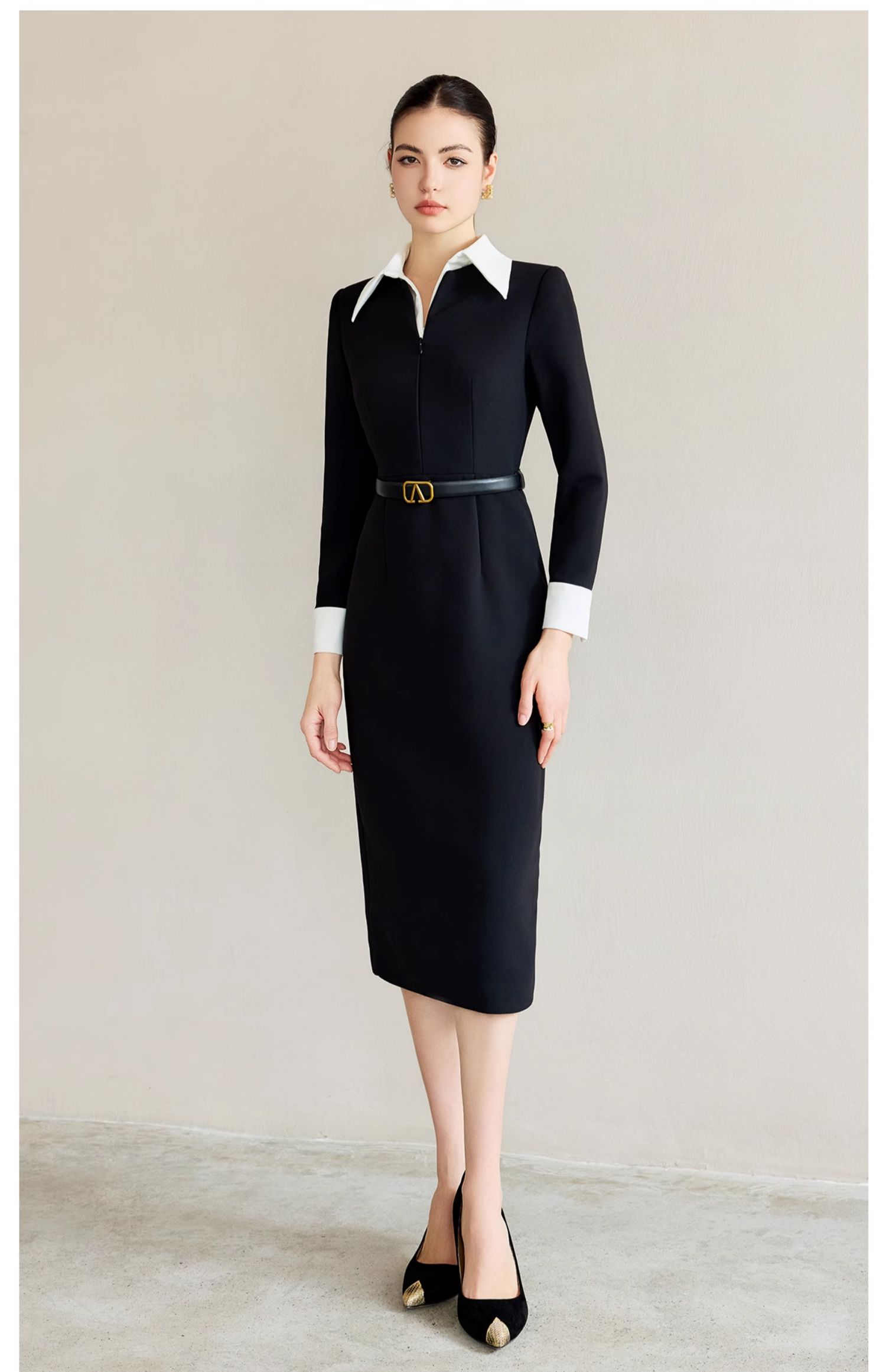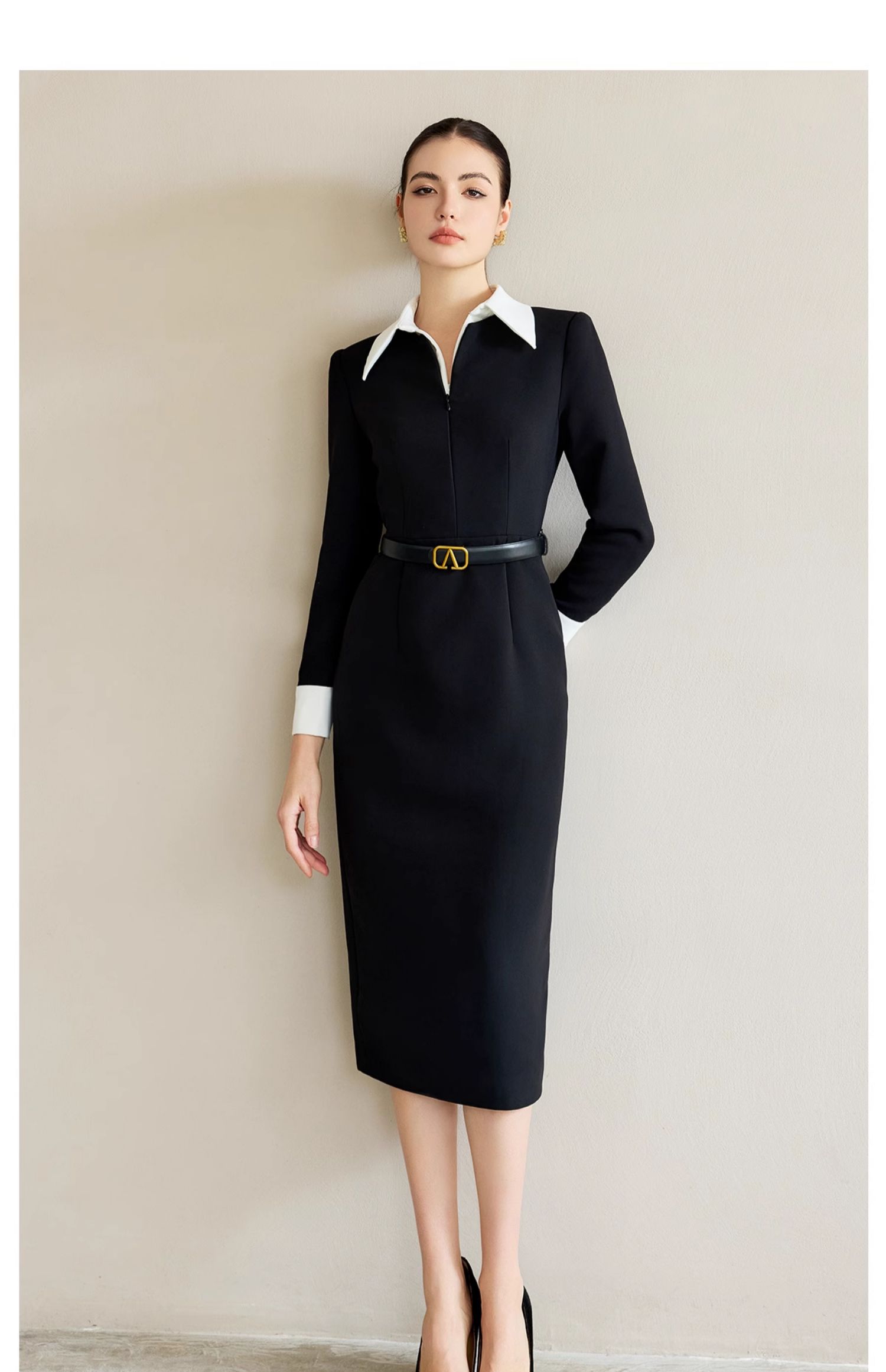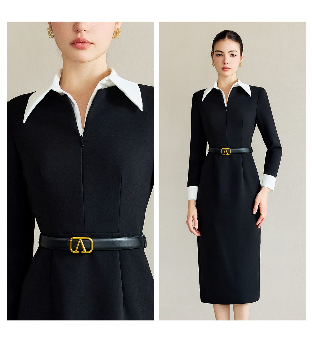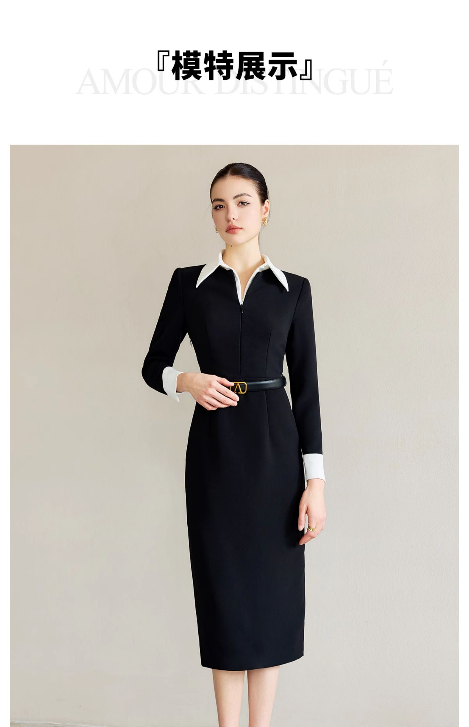 IWY/职业通勤女装高级感轻熟风连衣裙女黑白撞色翻领西装收腰包臀裙Q1295