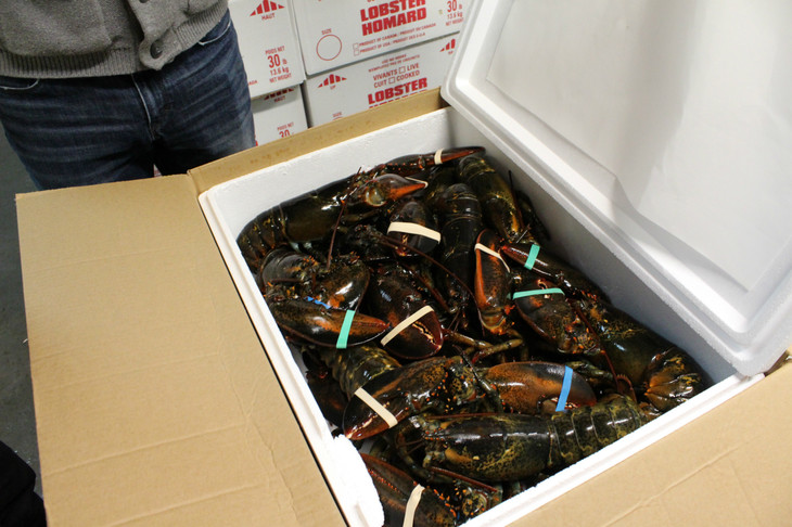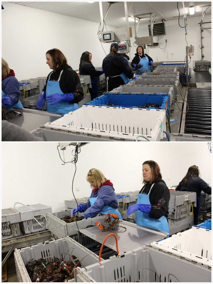加拿大家园工作人员现场检测龙虾并编号。